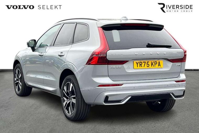 11.2" centre console touch screen, 12.3" Progressive Driver Display, 360 degree surround view parking camera with side proximity sensors, Adaptive cruise control, Adjustable steering wheel force, Android auto (Wired), Apple carplay (wired), Bluetooth handsfree system, Drive mode settings, Driver alert control with lane keeping aid, Emergency services call system, Front and rear park assist, Google Automotive Services, Intelligent speed assistance, Oncoming Lane Mitigation, PAS, Power operated tailgate with handsfree opening and closing, Service interval indicator, Speed limiter, Speed sensitive steering, Trip computer, Volvo cars services with app, Volvo on call with App, Wireless/Inductive Mobile Phone Charging, 2 phase on board charger 6.4kW (home charging limited to 3.7kW), 6m 3 phase 16amp Type 2 / mode 3 charge cable, 8 speed automatic transmission with start/stop + manual change functions, Electric rear axle drive, Recharging port located in nearside front wing, DAB Digital radio, Low speed exterior sound speaker, Premium Sound by Harman Kardon, dirac unison, dolby pro logic II surround sound, 13 speakers/600W output and fresh air subwoofer, Steering wheel remote infotainment controls, Adaptive brake lights with high level LED brake lights, Auto dimming interior + exterior mirrors, Automatic headlight levelling system, Automatic LED Headlights + Active high beam incorporating daytime running lights, Electric adjustable/heated/auto power folding door mirrors, Electric front+rear windows, Front aluminium tread plates, Heated front windscreen, High gloss black door mirrors and window surround, High gloss black front and rear bumper decoratives, High gloss black mesh front grille with high gloss black surround, Home safe and approach lighting, Integrated roof rails in high gloss black, Puddle lights, Rain sensor with automatic windscreen wiper activation, Rear side wing doors, Rear wiper, Roof antenna, Roof spoiler, Tinted windscreen, Visible VIN plate, 12V socket in front tunnel console and luggage compartment, 2 zone electronic climate control with Clean zone air quality system and pollen filter, 3 seat bench in 2nd row, 3 Spoke tailored steering wheel with chrome trim, A-pillar parking ticket holder, Air purifier particulate matter (PM) 2.5 filter, B Pillar ventilation, Bright metal luggage scuff plate, Centre console cupholders and storage, Charcoal floor mats, Front and rear courtesy lights, Front and rear door pocket illumination, Front cupholder illumination, Front footwell illumination, Front reading lights, Front seat cushion extensions, Glovebox compartment with illumination, Head restraints for all seats, Heated front seats, Heated steering wheel, Height/reach adjustable steering column, Illuminated luggage compartment, Illuminated vanity mirrors + ticket holder, Inner door release handle illumination, ISOFIX attachment on outer rear seats, Load cover, Load protection net, Multi directional lumbar support, Power driver seat with memory + exterior mirrors memory, Power height adjustable passenger seat, Power passenger seat with memory, Quilted nordico leather upholstery, Rear armrest with cupholder, Rear footwell and front and rear side step illumination, Rear reading lights, Rear seat concealed storage, Single front passenger seat, Tailgate illumination and ambient door lighting, Underfloor stowage compartment, Versatile split folding rear seat - 60/40, Driver assist pack without Adaptive cruise control - XC60, 5 three point seatbelts, City safety with steering support with Pedestrian + cyclist + front collision warning with full auto brake and rear auto brake, Drivers knee airbag, Dual stage driver/passenger airbags, Electronic parking brake with auto hold, First aid kit, Front seats SIPS airbags, Hill descent control - Off-road drive mode, Hill start assist, IC (Inflatable Curtains) - Full Length, Passenger airbag cut-off device, Power child locks on rear doors, Road sign information display, Run off Road Mitigation, Run off Road Protection, Seatbelt reminder and pretensioners, SIPS (Side Impact Protection System), Slippery road and hazard light alert, Stability and Traction Control with Spin control, Engine Drag Control and Corner Traction Control, Tyre pressure monitoring system, Vehicle deceleration control with Anti-lock Brake System, Electronic Brake Distribution and Emergency Brake Assist, Warning triangle, WHIPS whiplash protection system - front, Anti-theft alarm including immobiliser/volume sensor + level sensor, Key integrated remote control central locking + fuel flap with deadlocking system and auto open/close power windows, Keyless Drive (includes Keyless Entry and Keyless Start), Locking wheel nuts, Private locking for tailgate, Summer tyres, Tyre sealant kit + 12v compressor,