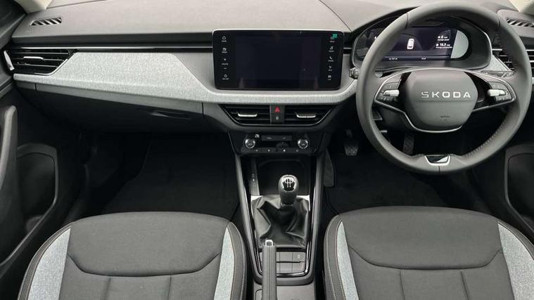 Advanced driver attention and drowsiness monitor, Bluetooth system, E-call, Front assist system, PAS, Rear parking sensors, Rear view camera, Service indicator, Speed limiter, Traffic sign recognition, Virtual cockpit with 10.25" display, Wireless smartlink, 4 USB C ports, 8 Speakers, 9.2" Skoda navigation display, DAB Digital radio, Auto dimming rear view mirror, Automatic headlight control with coming home and leaving home feature, Black roof rails, Body colour bumpers, Body colour door mirrors and handles, Chrome grille surround, Front and rear electric windows, Full LED headlights, Heated rear window, LED brake lights, LED daytime running lights, LED front turning lights, LED high beam, LED low beam, LED third brake light, Rear LED fog light, Rear side wing doors, Rear wiper, Ticket holder inside windscreen, 12V socket in luggage compartment, 3 seat bench in 2nd row, Black hotstamping, Cargo elements, Chrome inner door handles, Driver and passenger sun visors with vanity mirror, Dual zone climate control, Front and rear roof lights, Front centre armrest, Front head restraints, Glove compartment with illumination, Height adjustable driver seat, Height adjustable front passenger seat, Ice scraper, Inner circulation control with pollen filter, ISOFIX on front passenger seat, Isofix preparation for back seats, Krepp recycled decor inserts, Leather gearknob and handbrake lever, Loft cloth upholstery, Manual lumbar support for front seats, Net package and top tether hooks in boot space, Net under rear shelf, Overhead glasses storage compartment, Pocket on the back of both front seats include mobile phone pockets, Rake/reach adjustable steering wheel, Reading lights, Satin black door inserts, Single front passenger seat, Textile floor mats, Third rear headrest, Top tether for front passenger seat, Umbrella in driver's door, 3x3 point rear seatbelts, Airbags - driver and front passenger, Disc brakes, ESP, Extended and predictive pedestrian/cyclist protection, Front passenger airbag deactivation switch, Front side airbags with curtain airbags, Hill hold control, Manual leather parking brake, Manual rear child locks, One tone horn, Seatbelt reminder for driver an co-driver, Traction control, Tyre pressure monitor, Anti-theft alarm system with interior monitoring, backup horn, towing protection and remote central locking with SAFE system, Anti-theft wheel bolts, Electronic engine immobilizer,