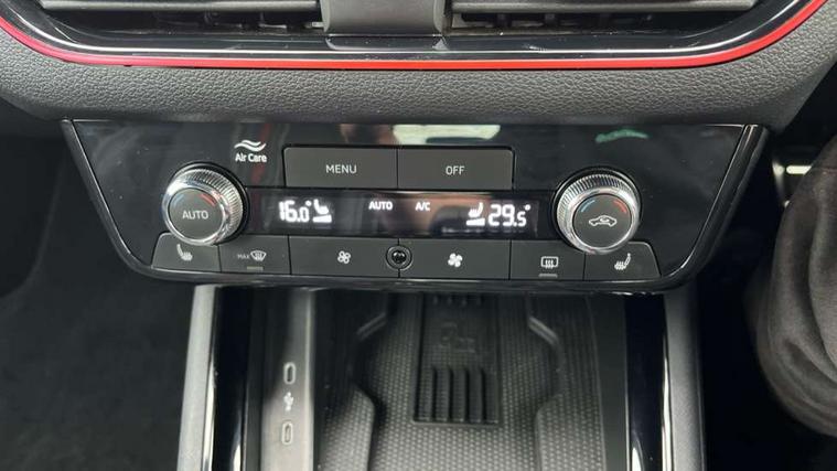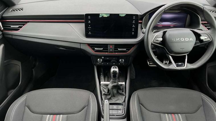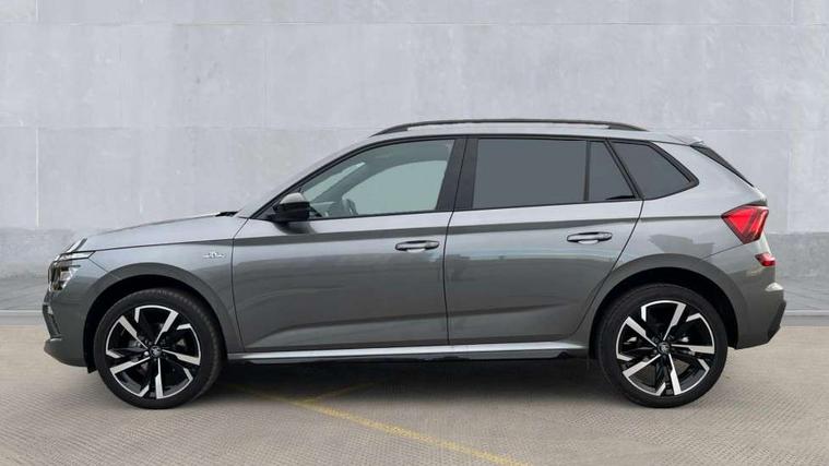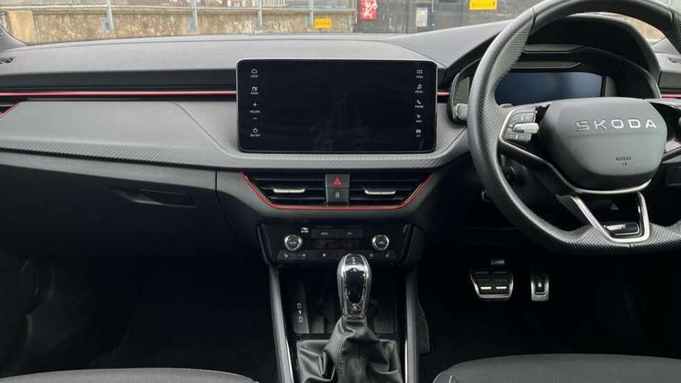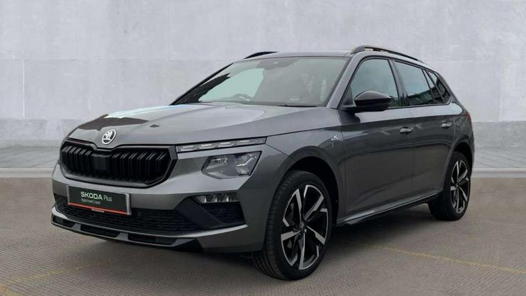 Advanced driver attention and drowsiness monitor, Bluetooth system, E-call, Front assist system, PAS, Rear parking sensors, Rear view camera, Service indicator, Speed limiter, Traffic sign recognition, Virtual cockpit with 10.25" display, Voice control system, Wireless smartlink, 4 USB C ports, 8 Speakers, 9.2" Skoda navigation display, DAB Digital radio, Auto dimming rear view mirror, Automatic headlight control with coming home and leaving home feature, Black door mirrors, Black radiator grille, Black rear diffuser, Black roof spoiler, Body colour bumpers, Body colour door handles, Boot lettering in black, Extended tailgate glass, Fixed panoramic sunroof with black roof rails, Front and rear electric windows, Heated rear window, LED daytime running lights, LED high beam, LED low beam, LED third brake light, Light sensors, Monte carlo plaque, Privacy glass, Rear side wing doors, Rear wiper, Ticket holder inside windscreen, 12V socket in luggage compartment, 3 seat bench in 2nd row, Aluminium pedals, Ambient lighting in white/red, Art leather carbon decor inserts, Art leather carbon door inserts, Black roof lining, Cargo elements, Chrome inner door handles, Driver and passenger sun visors with vanity mirror, Dual zone climate control, Front and rear roof lights, Front centre armrest, Front head restraints, Glove compartment with illumination, Height adjustable driver seat, Height adjustable front passenger seat, Ice scraper, Inner circulation control with pollen filter, ISOFIX on front passenger seat, Isofix preparation for back seats, Leather gearknob and handbrake lever, Manual lumbar support for front seats, Monte Carlo cloth upholstery, Net package and top tether hooks in boot space, Net under rear shelf, Pocket on the back of both front seats include mobile phone pockets, Rake/reach adjustable steering wheel, Reading lights, Rear centre armrests, Red hotstamping, Single front passenger seat, Sports seats, Textile floor mats, Third rear headrest, Top tether for front passenger seat, Umbrella in driver's door, Light and view plus package - Kamiq, 3x3 point rear seatbelts, Airbags - driver and front passenger, Disc brakes, ESP, Extended and predictive pedestrian/cyclist protection, Front passenger airbag deactivation switch, Front side airbags with curtain airbags, Hill hold control, Manual leather parking brake, Manual rear child locks, One tone horn, Seatbelt reminder for driver an co-driver, Traction control, Tyre pressure monitor, Anti-theft alarm system with interior monitoring, backup horn, towing protection and remote central locking with SAFE system, Anti-theft wheel bolts, Electronic engine immobilizer, 18" Ursa black diamond cut alloy wheels,