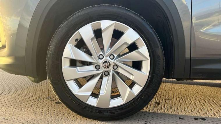 13" satellite navigation touchscreen display, Blind spot detection with door exit warning, Bluetooth system, ChatGPT functionality, Drive mode selector, Driver alert with fatigue sensor, Driver drowsiness alert system, Dry display cleaner, e call+, Front cross traffic assist, Lane assist, PAS, Rear traffic assist, Tailgate unlocking from outside, Traffic sign recognition, USB C Port x 2 in front centre console, Virtual Cockpit - 10.25" digital display, Voice control system, Wireless charging for two smartphones (15W) with cooling function, Wireless SmartLink for Apple CarPlay and Android Auto, Stop/start function, 2x USB-C in the rear, DAB Digital radio, Aero front windscreen wipers with intermittent function, Auto dimming rear view mirror, AWL (all weather lighting) and all weather light with cornering function, Black wheel arch surrounds, Body colour bumpers, Body colour door mirrors and handles, Cornering light and poor weather light, Electric folding /adjustable/separted heated/folding door mirrors, auto dimming with boarding sports and memory function, Electric front and rear windows, Exterior black decorative trims, Heat insulating glass in windshield, Heated rear window, Ice scraper in fuel tank cap, Invisible tailpipe, LED daytime running lights, LED rear fog light, LED third brake light in rear spoiler, Light assistant with automatic headlight control and coming home feature, Logo projection in door mirrors, Privacy glass, Rear side wing doors, Rear spoiler, Rear window wiper, Red decorative strip between rear LED lights, Safety reflectors on front and rear doors, Window control switches with black trim, Windscreen wipers with rain sensor, Without engine designation, 1.5l bottle holder points in all door, 12V socket in boot, 1x centre rear reading light, 2 seat bench in 3rd row, 3 configurable smart dials with 32mm coloured display, 3 seat bench in 2nd row, 4 foldable roof handles with rear coat hooks, Ambient interior lighting - Dashboard, front-door stowage compartments, front and rear door panels and footwell lighting, Automatic gear selector on steering wheel, Chrome interior door handles, Driver/front passenger reading lights, Fabric headlining, Fixed bench 40:60:40 split folding backrests, Front and rear floor mats, Front centre armrest with jumbo box storage compartment, cup holder and 12V socket, Front courtesy lights, Height adjustable front headrests, Isofix child seat fittings in outer middle row rear seats and front passenger with top tether, Manually adjustable steering column, Pollen filter, Rear centre armrest with cupholders, Rear seat boot backrest release, Retractable luggage compartment cover, Single front passenger seat, Sliding trunk cover, Small Bags on the inner sides of the front backrests, Storage pocket including mobile phone pockets on the backs of the front seats, Sunvisors with illuminated vanity mirrors, Three rear height adjustable headrests, Ticket holder on A Pillar, Tri zone climate control, Umbrella in door panel x1 made from sustainable materials, Upper and lower glovebox with card holder and coin compartment, USB C port by rear view mirror for charging only (15W), Exterior styling pack - Kodiaq, Auto door release and activation of warning lights in the event of an accident, Driver and front passenger airbag with knee airbag and front passenger airbag deactivation, Electric child locks, Electronic parking brake, ESC (incl. ABS+EMD+MSR+ASR+EDL+HBA+DSR+RBS+ESBS+MCB+TSA+XDS), Front assist with braking reaction to vehicles, pedestrians and cyclists, Front disc brakes, Fuel cut off safety device, Height adjustable front 3 point seatbelts + pretensioners, Hill hold control, Junction assist with automatic emergency braking, Rear disc brakes, Safety vest holder in door, Seat belt reminder for all seats, Three point rear seat belts, Two tone horn, Tyre pressure monitor, Anti-theft wheel bolts, Immobiliser, Remote central locking with 2 keys, Breakdown kit,