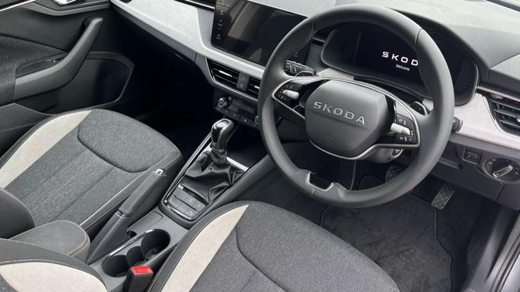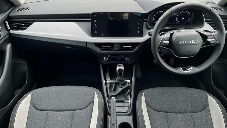 Advanced driver attention and drowsiness monitor, Bluetooth, e-Call (emergency call), Front assist system, PAS, Rear parking sensors, Rear view camera, Speed limiter, Tailgate, Traffic sign recognition, Virtual Cockpit - 10.25" digital display, Voice control system, Wireless smartlink, 4 USB C ports, 8 Speakers, 9.2" Skoda navigation display, DAB radio, Auto dimming rear view mirror, Automatic headlight control with manual coming and leaving home feature, Automatic intermittent wipers, Body colour bumpers, Body colour door mirrors and handles, Chrome moulding around grille, Chrome window frames, Front and rear electric windows, Heated rear window, LED 3rd brake light, LED daytime running lights, LED high beam, LED low beam, Light sensors, Privacy glass, Rear LED fog light, Rear side wing doors, Rear wiper, Tinted windows, Unique dark chrome design logo on alloy wheels, 12V socket in luggage compartment, 3 seat bench in 2nd row, Ambient lighting in white/red, Black / Copper armrest stitching, Cargo elements, Chrome inner door handles, Copper hotstamping, Door inserts in accent black, Driver and passenger sun visors with vanity mirror, Dual zone climate control, Front and rear roof lights, Front centre armrest, Front head restraints, Glasses storage in roof liner, Height adjustable driver seat, Height adjustable passenger seat, Ice scraper, Illuminated glove compartment, Inner circulation control with pollen filter, ISOFIX for front passenger seat, Isofix preparation for back seats, Leather gearknob and handbrake lever, Lodge cloth upholstery, Luggage net under rear parcel shelf, Manual lumbar support for front seats, Net package and top tether hooks in boot space, Pocket on the back of both front seats, incl. mobile phone pockets, Rear centre armrest, Single front passenger seat, Skoda lettering on steering wheel, Textile floor mats, Third rear headrest, Ticket holder, Top tether for front passenger seat, Umbrella in driver's door, Convenience pack without rear camera - Scala, 3x3 point rear seatbelts, ABS, Child locks, Curtain airbags and front side airbags, Disc brakes, Driver and front passenger airbags, ESP, Hill hold control, Manual leather parking brake, One tone horn, Passenger airbag switch off function, Seatbelt reminder for driver and front passenger, Tyre pressure monitoring system, Anti theft alarm system with interior monitoring, backup horn and towing protection, Anti-theft wheel bolts, Remote central locking with 2 remote folding keys, SAFE function for remote central locking, Decorative inserts,