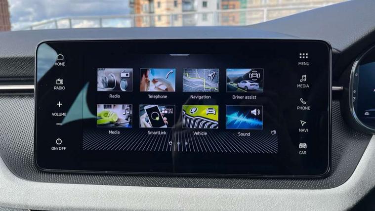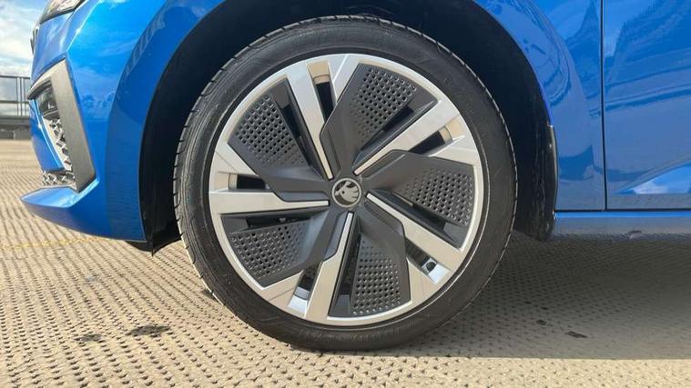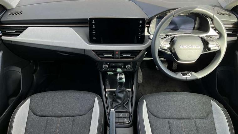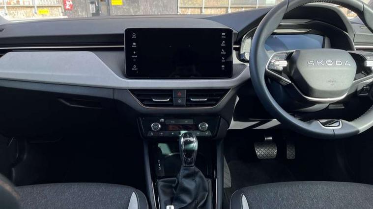 Advanced driver attention and drowsiness monitor, Bluetooth, e-Call (emergency call), Front assist system, PAS, Rear parking sensors, Rear view camera, Speed limiter, Tailgate, Traffic sign recognition, Virtual Cockpit - 10.25" digital display, Voice control system, Wireless smartlink, 4 USB C ports, 8 Speakers, 9.2" Skoda navigation display, DAB radio, Auto dimming rear view mirror, Automatic headlamp activation with Coming home and Leaving home feature, Automatic high/low beam, Automatic intermittent wipers, Body colour bumpers, Body colour door mirrors and handles, Chrome moulding around grille, Chrome window frames, Front and rear electric windows, Heated rear window, LED 3rd brake light, LED brake lights, LED daytime running lights, LED front turning lights, LED high beam, LED low beam, Light sensors, Privacy glass, Rear LED fog light, Rear side wing doors, Rear wiper, Tinted windows, Unique dark chrome design logo on alloy wheels, 12V socket in luggage compartment, 3 seat bench in 2nd row, Ambient lighting in white/red, Black / Copper armrest stitching, Cargo elements, Chrome inner door handles, Copper hotstamping, Door inserts in accent black, Driver and passenger sun visors with vanity mirror, Dual zone climate control, Front and rear roof lights, Front centre armrest, Front head restraints, Glasses storage in roof liner, Height adjustable driver seat, Height adjustable passenger seat, Ice scraper, Illuminated glove compartment, Inner circulation control with pollen filter, ISOFIX for front passenger seat, Isofix preparation for back seats, Leather gearknob and handbrake lever, Lodge cloth upholstery, Luggage net under rear parcel shelf, Manual lumbar support for front seats, Net package and top tether hooks in boot space, Pearl grey ceiling, Pocket on the back of both front seats, incl. mobile phone pockets, Rear centre armrest, Single front passenger seat, Skoda lettering on steering wheel, Textile floor mats, Third rear headrest, Ticket holder, Top tether for front passenger seat, Umbrella in driver's door, Convenience pack without rear camera - Scala, 3x3 point rear seatbelts, ABS, Child locks, Curtain airbags and front side airbags, Disc brakes, Driver and front passenger airbags, ESP, Hill hold control, Manual leather parking brake, One tone horn, Passenger airbag switch off function, Seatbelt reminder for driver and front passenger, Tyre pressure monitoring system, Anti theft alarm system with interior monitoring, backup horn and towing protection, Anti-theft wheel bolts, Remote central locking with 2 remote folding keys, SAFE function for remote central locking, Decorative inserts,
