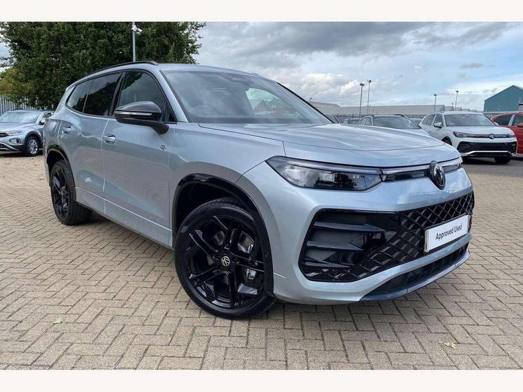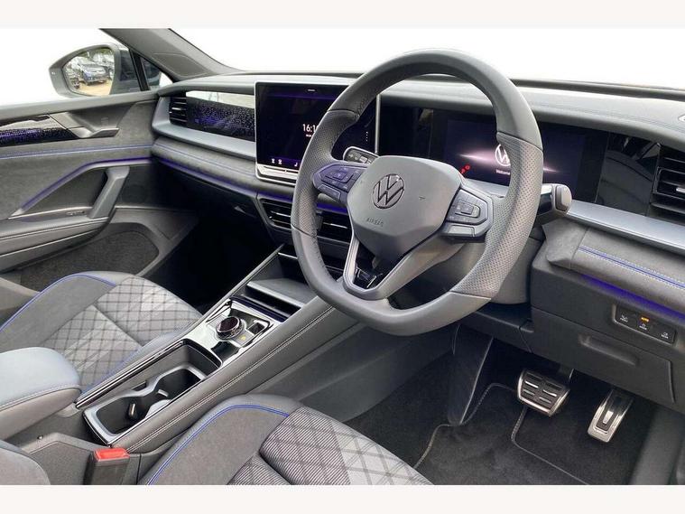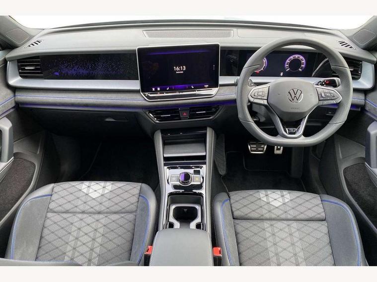 Adaptive cruise control (ACC), Digital Cockpit Pro - 10.25" high resolution dash display screen with customisable menus and information, Driver alert system, Driver attention monitoring system, Dynamic road sign display, E-Sim card for online connectivity, eCall emergency call system, Lane change system, Side assist, Rear traffic alert and Exit warning system, Multifunction front facing camera, Oncoming vehicle braking when turning including swerve support, Start/stop system with regenerative braking, Voice activation spoken voice commands for telephone and navigation system, Warning signal and warning light for front and rear seatbelts not fastened, Wireless App-Connect, Front wheel drive, Digital radio reception (DAB), Diversity antenna for FM reception, Air intake with Chrome trim, Auto dimming interior rear view mirror, Automatic headlight control system, Body colour door handles, Chrome moldings on the side windows, Coming/leaving home lighting function, Dynamic headlight range control with dynamic cornering light, Exterior mirrors convex on the left and aspherical on the right, Heat insulating glass in side and rear windows, Illuminated Volkswagen logo rear with animation, Laminated safety glass winshield, heat insulating, LED 3rd brake light, LED separate signature day time running light, Puddle lights, Rain sensor windscreen wipers, Rear fog light on one side, reversing light on both sides, Rear side wing doors, Rear wiper, Reverse activated passenger's door mirror, Surround lighting with welcome light, Volkswagen logo in front, illuminated lighting animation with wake up/goodbye scenario and illuminated door handles, 10 colour interior ambient lighting, 12V outlet in center console rear and in luggage compartment, 3 rear headrests, 3 rear seat bench in 2nd row, backrest split folding with centre armrest and 2 seats in 3rd row of seats, Black roof lining, Brushed stainless steel pedals, Carpet mats, front and rear, Centre console with illuminated storage compartment with sliding cover and two drinks holders, Chrome elements on the mirror switch and power window switches and door pulls, Door and side trim panel insert in Art velour, Flat luggage compartment floor, Front centre armrest, Front scuff plates in alumium, ISOFIX anchors for child seats on outer rear seats and front passenger seat compatible with i-Size, Mechanical rear seat release, Power adjustable lumbar support in front, Single front passenger seat, Sports comfort seats in front, Sun visors with illuminated vanity mirrors, 3 Point seat belts in front with pretensioners, 3 point seatbelts in outer rear with ECE label, Autonomous emergency braking front assist with pedestrian and cyclist monitoring, Driver and front passenger airbag with front passenger airbag deactivation, Electronic parking brake with auto hold, First aid kit with warning triangle and safety vest, Front and rear curtain airbags, Front and rear side airbags, Front centre airbag, Front disc brakes, Hill start assist, Rear disc brakes, Two tone horn, Decorative material set R-Line, Interior door handle in matte chrome,
