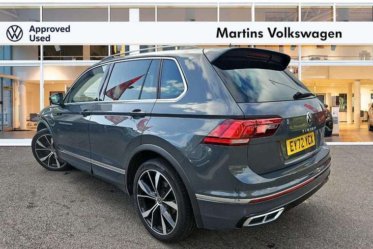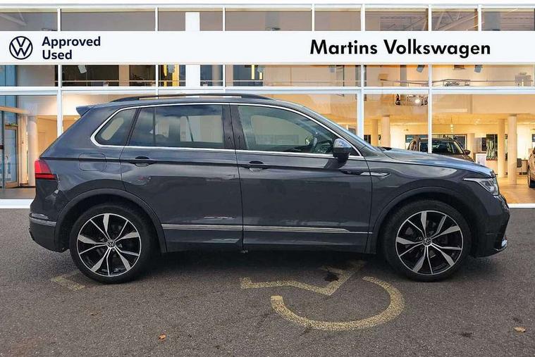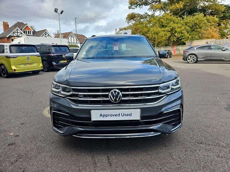 Adaptive cruise control ACC stop and go including speed limiter, App-Connect incl. App-Connect Wireless for Apple CarPlay and Android Auto, Bluetooth phone integration system, Distance control assist, Driver alert system, Driver profile selection, Dynamic road sign display, eCall emergency call system, Electromechanical speed sensitive power steering, Engine start/stop button, Lane keeping system Lane Assist, Lights on warning, Multifunction front facing camera, Outside temperature display, Premium multifunction display with multi colour display, Remote control boot opening, Rev counter, Revision / skills operating concept travel assistant, Service interval indicator, Speed limit display, Start/stop system with regenerative braking, Trip computer, Warning sound and light for doors and tailgate open, All wheel drive - 4Motion, Battery regeneration during braking, XDS electronic differential lock for improved traction and handling, 4 X 20 watt output, 8 Speakers, Diversity antenna for FM reception, Radio, SD card slot, Simultaneous pairing of 2 compatible mobile devices, SMS functionality - read, compose and send SMS messages using touch-screen display, Title and cover art display, USB C ports, Auto dimming interior rear view mirror, Automatic headlight control system, Body colour door handles, Chrome moldings on the side windows, Coming/leaving home lighting function, Dynamic headlight range control, Front and rear electric windows, Heated rear window, High level 3rd brake light, Laminated safety glass windshield, heat and sound insulating, LED headlamps with LED separate daytime running light and dynamic cornering light, LED rear combination lamps, LED rear number plate lights, License plate carrier in front and rear, Poor weather light and cornering light, R Line body kit, R Line side sills, Rain sensor windscreen wipers, Rear exhaust tailpipe, Rear fog lamp, Rear side wing doors, Rear spoiler in R style, Rear windscreen washer and wiper with interval delay, Side and rear windows in heat insulating glass, Trailer Stability Programme, Unique R Line badging, Windscreen wipers/ intermittent wipe + 4 position delay, 12V outlet in center console rear and in luggage compartment, 12V outlet in front and tray, 2 cup holders in front, 2 LED front reading lights, 2 LED rear reading lights, 3 bench rear seats in 2nd row, 3 rear headrests, 4 load lashing points, 40:20:40 split folding rear seats, Air Care Climatronic 3 zone automatic climate control with enhanced air filter and controls in the rear, Backrest release for left front seat, Black headlining, Brushed stainless steel pedals and footrest, Carpet mats in front and rear with decorative stitching in Gray, Climate control unit rear with touch function, Door and side trim panel in foam film, insert in leatherette, Front centre armrest, Front footwell illumination, Front seats head restraints (x-adjustment), Height adjustable front seats, Height/reach adjust steering wheel, Instrument lighting white adjustable panel illumination, Interior light with delay, Isofix Preparation 2 Rear child seats, Leather gear knob, Lockable cooled glovebox, Luggage compartment lighting, Luggage net, Rear bench seat asymetrically split folding, longitudinally movable and folding with load-through hatch and center armrest, Remote unlocking for rear seat backrest, Removable luggage cover, Removable rear headrests, Safety optimised front head restraints, Single front passenger seat, Sliding/reclining rear seats, Standard rear seat release, Storage compartment in driver's door, Storage compartment in passenger's door, Storage compartment in rear doors, Storage compartments in luggage area left and right, Storage tray on dashboard, Sun visors with illuminated vanity mirrors, Top front comfort seats, Variable boot floor, height adjustable and removable, Driver assistance pack plus - Tiguan DSG, 3 point seat belt for centre rear seats, 3 point seat belts with seat belt pretensioners for the outer rear seats, Active bonnet, Curtain airbags for front and rear passengers, Driver/Front Passenger airbags, Drivers knee airbag, Electronic parking brake with auto hold, Electronic Stability Control with driver steering recommendation, ABS, ASR, EDL, EDTC and trailer stabilization, Front assist with autonomous emergency braking (for Adaptive Cruise Control ACC up to 130 mph), Front disc brakes, Front passenger airbag deactivation, Front side airbags, Height adjustable front 3 point seatbelts + pretensioners, Hill hold control, Manual child proof rear door locks, Pedestrian monitoring system, Power assisted brakes, Proactive passenger protection system in combination with front assist, Rear disc brakes, Rigid safety cell with front and rear crumple zones, Two tone horn, Warning sound and light for front seat belts if unfastened, Anti theft alarm system with interior monitoring, backup horn and towing protection, Anti theft wheel bolts, Electronic engine immobiliser, Tool kit,