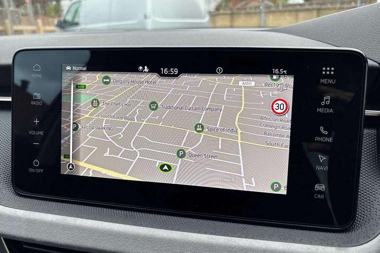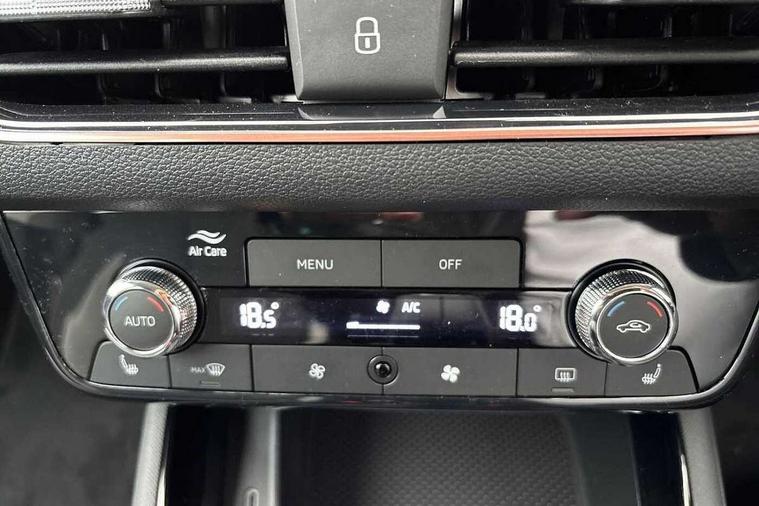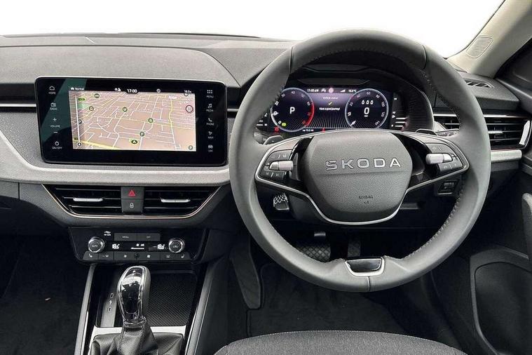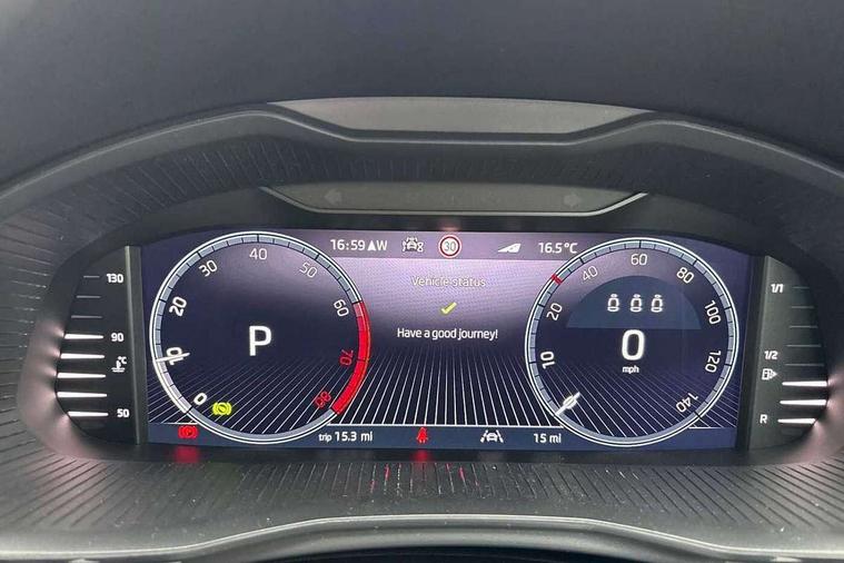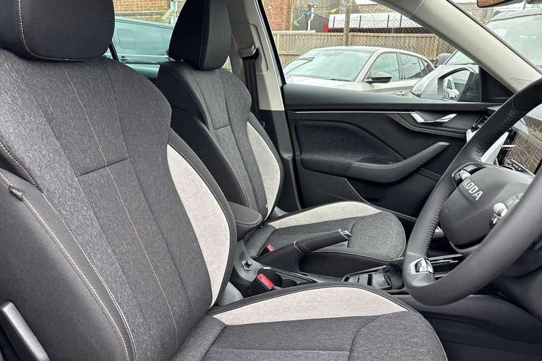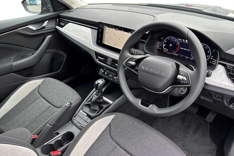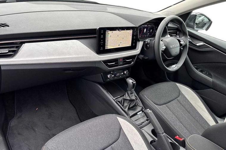Advanced driver attention and drowsiness monitor, Bluetooth system, E-call, Front assist system, PAS, Rear parking sensors, Rear view camera, Service indicator, Speed limiter, Traffic sign recognition, Virtual cockpit with 10.25" display, Voice control system, Wireless smartlink, 4 USB C ports, 8 Speakers, 9.2" Skoda navigation display, DAB Digital radio, Auto dimming rear view mirror, Automatic headlight control with coming home and leaving home feature, Body colour bumpers, Body colour door mirrors and handles, Chrome grille surround, Chrome roof rails with chrome window surround, Front and rear electric windows, Heated rear window, LED daytime running lights, LED high beam, LED low beam, LED third brake light, Light sensors, Privacy glass, Rear side wing doors, Rear wiper, Ticket holder inside windscreen, 12V socket in luggage compartment, 3 seat bench in 2nd row, Accent black door inserts, Ambient lighting in white/red, Cargo elements, Chrome inner door handles, Copper hotstamping, Driver and passenger sun visors with vanity mirror, Dual zone climate control, Front and rear roof lights, Front centre armrest, Front head restraints, Glove compartment with illumination, Height adjustable driver seat, Height adjustable front passenger seat, Ice scraper, Inner circulation control with pollen filter, ISOFIX on front passenger seat, Isofix preparation for back seats, Leather gearknob and handbrake lever, Lodge cloth upholstery, Manual lumbar support for front seats, Net package and top tether hooks in boot space, Net under rear shelf, Overhead glasses storage compartment, Pocket on the back of both front seats include mobile phone pockets, Rake/reach adjustable steering wheel, Reading lights, Rear centre armrests, Single front passenger seat, Suedia grey decor inserts, Textile floor mats, Third rear headrest, Top tether for front passenger seat, Umbrella in driver's door, Convenience pack - Kamiq, 3x3 point rear seatbelts, Airbags - driver and front passenger, Disc brakes, ESP, Extended and predictive pedestrian/cyclist protection, Front passenger airbag deactivation switch, Front side airbags with curtain airbags, Hill hold control, Manual leather parking brake, Manual rear child locks, One tone horn, Seatbelt reminder for driver an co-driver, Traction control, Tyre pressure monitor, Anti-theft alarm system with interior monitoring, backup horn, towing protection and remote central locking with SAFE system, Anti-theft wheel bolts, Electronic engine immobilizer,
