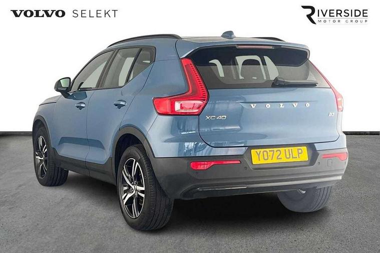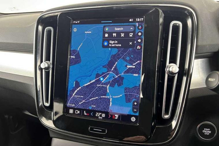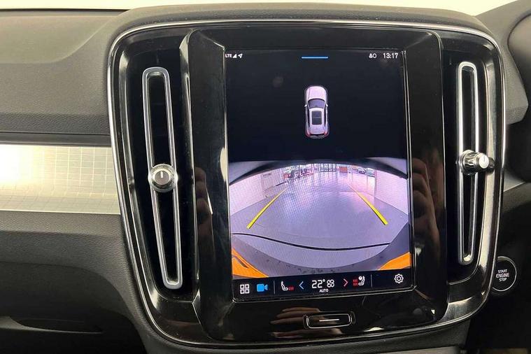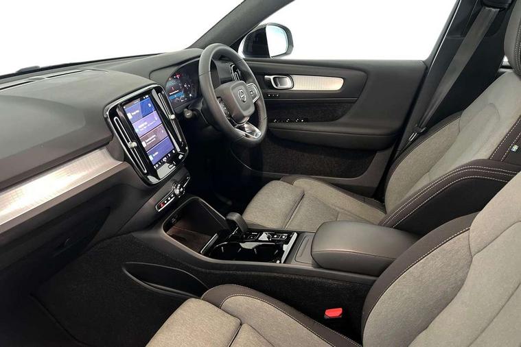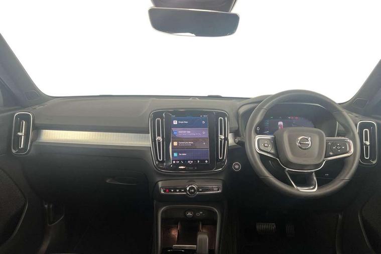 12.3" Progressive Driver Display, 9" centre console portrait touch screen, Adjustable steering wheel force, Bluetooth hands free telephone kit, Cruise control, Driver awareness - blind spot information system with steer assist, cross traffic alert with autobrake, rear collision warning and migitation, E-call, Front park assist, Google automatic services - Nav with google maps, apple carplay/android auto, voice recognition with google assistant, Hands free power tailgate, Lane keep assist with driver alert control, Oncoming Lane Mitigation, Rear park assist, Rear park assist camera, Speed limiter, Speed sensitive steering, Wireless/Inductive Mobile Phone Charging, Dynamic chassis, DAB Digital radio, High performance sound, 8 speakers/250W, front USB and 2 rear type C USB, Steering wheel mounted remote controls, Adaptive brake lights with high level LED brake lights, Auto dimming feature for exterior door mirrors, Auto dimming interior mirror, Automatic headlamp levelling, Automatic LED Headlights + Active high beam incorporating daytime running lights, Front aluminium tread plates, Front and rear electric windows, High gloss black front and rear skid plate, High gloss black mesh front grille with high gloss black surround, High gloss black window trim, Home safe and approach lighting, Integrated roof rails in high gloss black, LED front fog lights, Puddle lights, Rain sensor with automatic windscreen wiper activation, Rear side wing doors, Rear wiper, Roof antenna, Roof spoiler, Visible VIN plate, 12V socket in front tunnel console and luggage compartment, 2-Zone electronic climate control with CleanZone air quality system and pollen filter, 3 seat bench in 2nd row, 3 Spoke tailored steering wheel with chrome trim, 60/40 versatile split folding rear seat, A-pillar parking ticket holder, Ambient front door and instrumental panel lighting, Centre console cupholders and storage, Flexible load floor and grocery bag holder, Floor mats, Front door pocket and front cupholder illumination, Front footwell illumination, Front headrests, Front reading light and theatre lighting, Front seat cushion extensions, Front tunnel pocket, Glovebox bag hook, Heated front seats, Height adjustable passenger seat, Height/reach adjustable steering column, High gloss centre tunnel deco, Illuminated glovebox, Illuminated luggage compartment, Illuminated tailgate, Illuminated vanity mirrors, Integrated waste bin, Isofix attachments on outer rear seats, Load protection net, Multi directional lumbar support, Power driver seat with memory + exterior mirrors memory, Rear armrest / integral cup holders / storage tray, Rear headrests, Rear reading and courtesy lights, Single front passenger seat, Underfloor cargo storage, Climate pack without heated front seats - XC40, 3x3 point rear seatbelts, City safety with steering support with Pedestrian + cyclist + front collision warning with full auto brake and rear auto brake, Drivers knee airbag, Dual stage driver/passenger airbags, Electronic parking brake with auto hold, First aid kit, Front and outer rear seatbelt reminder and pretensioners, Front seats SIPS airbags, Hill descent control, Hill start assist, Inflatable curtain, Passenger airbag cut-off device, Power child locks on rear doors, Road sign information display, Run off Road Mitigation, Run off Road Protection, SIPS (Side Impact Protection System), Slippery road and hazard light alert, Stability and Traction Control with Spin control, Engine Drag Control and Corner Traction Control, Tyre pressure monitoring system, Vehicle deceleration control with Anti-lock Brake System, Electronic Brake Distribution and Emergency Brake Assist, Warning triangle, WHIPS whiplash protection system - front, Anti-theft alarm including immobiliser/volume sensor + level sensor, Key integrated remote control central locking + fuel flap with deadlocking system and auto open/close power windows, Keyless drive includes keyless entry and keyless start, Locking wheel nuts,