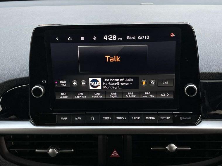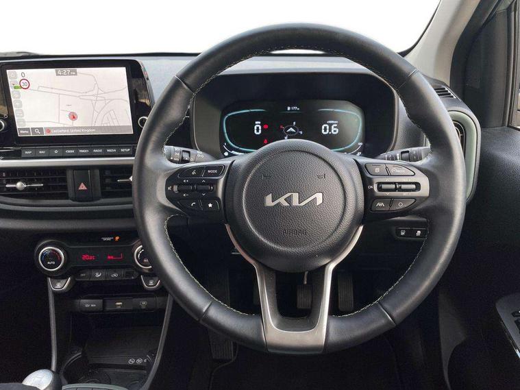 4.2" driver display screen, 8" touchscreen navigation, Apple car play/Android Auto with voice control, Cruise control + speed limiter, Emergency call service, Emergency stop signalling system, External temperature gauge, Forward Collision-Avoidance Assist (FCA) 1.0 - City/Pedestrian/Cyclist, Intelligent speed limit assist, Kia Connect (UVO), Lane Follow Assist 1.0, Lane keep assist, Motor driven power steering, Rear parking sensors, Reversing camera system, Tachometer, Trip computer, Wireless Smartphone charger, 4 speaker audio system, Bluetooth with music streaming, USB ports for connection of a media device, Automatic defog system, Automatic headlight control system, Body colour bumpers, Body colour side sill mouldings, Body coloured door mirrors, Body coloured wheel arches, Electric adjustable/heated/folding door mirrors with LED indicators lights, Electric front and rear windows, Electric front touch drivers front window, Headlamp levelling, Heated rear window, High mount brake light, LED daytime running lights, LED Headlights, LED rear lights, Premium paint, Privacy glass - Rear windows and tailgate, Rain sensing front wipers, Rear fog lights, Rear side wing doors, Rear wiper, Silver window surround, Tinted windshield glass, Visible VIN plate, 12V power point front, 3 seat bench in 2nd row, 60:40 Split folding rear seats, All round height adjustable headrests, Artificial leather steering wheel, Artificial leather upholstery, Automatic air conditioning, Centre console storage box, Driver and front passenger sunvisors with driver's side illuminated vanity mirrors, Front and rear door storage, Front cabin lights, Front passenger USB-C charging port, Glovebox, Grey headlining, Heated front seats, Heated steering wheel, ISOFIX Child seat top tethers and anchor fixings, Luggage area light, Luggage board, Luggage net + hook, Manual adjust steering wheel, Manual adjustable driver and front passenger seat, Rear cabin lights, Rear USB charging port, Single front passenger seat, All round 3-point seatbelts, Anti-lock braking system (ABS), Electronic stability control, Front airbags, Front passenger airbag cut-off switch, Front seatbelt height adjusters, Hill hold control, Hill start assist control (HAC), Rear airbags, Seatbelt reminder warning, Seatbelt warning, Side airbags, Side impact protection, Torque vectoring brake based and straight line stability (SLS), Traction control, Tyre pressure monitoring system, Vehicle stability management, Anti theft alarm, Engine immobiliser, Folding key, Locking wheel nuts, Manual child locks, Rear occupant alert, Remote central door locking, Smart key with engine start/stop button, Smart key with motion sensor, Thatcham category 2 security alarm and immobiliser, 16" alloy wheels, Tyre mobility kit,