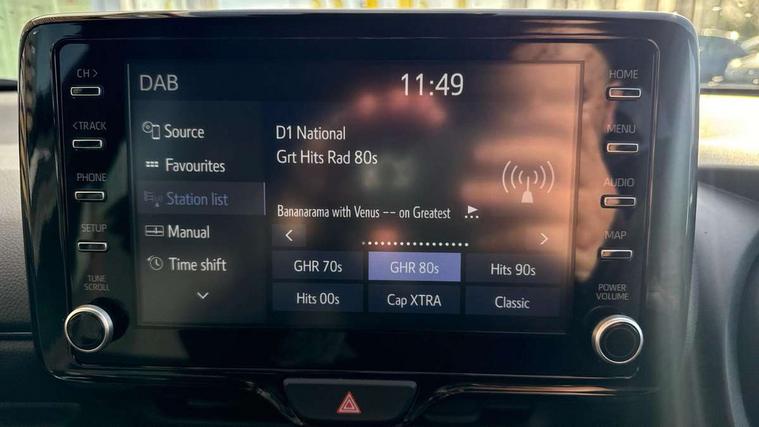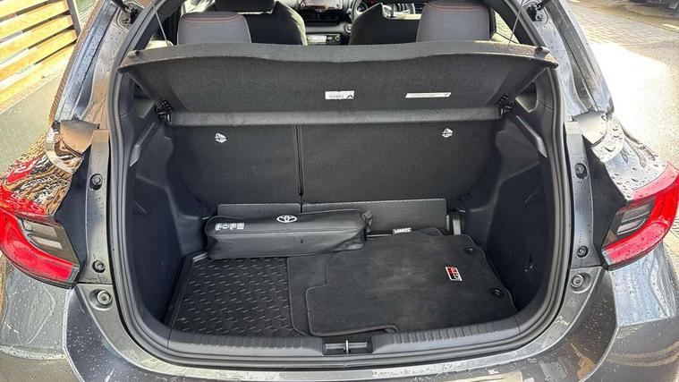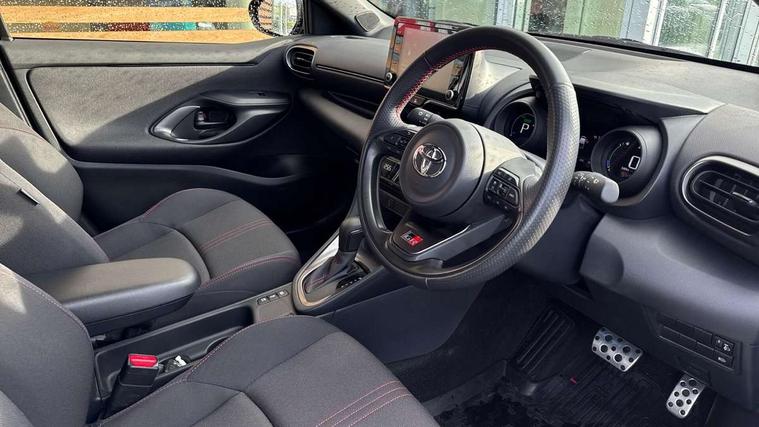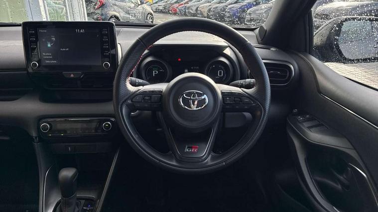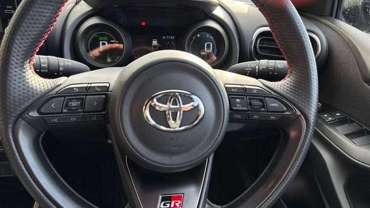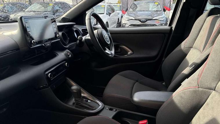 Adaptive cruise control, Adjustable speed limit with speed warning, Bluetooth connectivity, Colour binocular inspired displays with digital speedometer, E-call, Electric power steering, Hybrid energy display, Multi information display switches on steering wheel, Reversing camera, Smartphone integration with Apple CarPlay and Android auto, Tailgate, Voice recognition, Vehicle Stability Control (VSC), 6 speakers, 8" Multimedia display touch screen, Toyota Touch 2 with DAB, USB connection, Acoustic windscreen glass, Auto windscreen wipers, Automatic headlights, Body coloured door mirrors, Dark chrome lower front grille, Electric adjustable heated door mirrors, Follow me home headlights, Front auto power windows with anti jam protection, Full LED rear lights, LED daytime running lights, LED front fog lights, LED front light guide, LED Headlights, LED High mounted stop lamp, LED Indicators, LED rear light guide, Manual headlight levelling, Painted chequered front grille with hot stamp in mesh design, Rain sensor, Rear auto power windows with anti jam protection, Rear privacy glass, Rear side wing doors, Rear spoiler, Rear wiper, Shark fin antenna, Turning signal integrated indicators in door mirrors, Variable front intermittent wipers, 3 adjustable rear headrests, 3 seat bench in 2nd row, 3 spoke leather steering wheel, 60/40 split folding rear seat, Active headrests, Adjustable boot height, Black roof lining, Coat hooks in rear grab handles, Cup holders (2 front & door), Data Communication Module (DCM) connected services, Dual zone automatic air conditioning, Fabric upholstery with red stitching, Front armrest, Front sport seats, Glovebox, Height adjustable driver's seat, Height adjustable passenger seat, Isofix seat fixing, Leather gearshift, Map pockets on the backs of the front seats, Pollen filter, Shopping bag hooks, Single front passenger seat, Tilt/telescopic steering column, 3 point seatbelts on all rear seats, ABS+EBD+Brake assist, Electronic parking brake, Emergency brake light system (EBS), Front passenger airbag on/off switch, Front seatbelt reminder, Hill start assist control (HAC), Rear child proof door locks, Rear seat belt reminder, Supplemental Restraint System (SRS) 8 airbags: Driver & passenger's airbags, dual side curtain airbags, side impact airbags, front centre airbag, Toyota Safety Sense 2, Precollison + Night time Pedestrian & Cyclist Detection, Lane Trace Assist, Auto High Beam, Intelligent ACC & Road Sign Assist, Tyre pressure warning system, 2x Master key, Alarm/immobiliser, Keyless smart entry with push button start, Remote AC via MyT, Remote locking via MyT, Remote powered central double locking doors, GR Sport interior styling with accents and exterior styling, Piano black interior trim, Soft touch instrument panel, 18" machined face alloy wheels with GR Sport red deco lines, Space saver spare wheel,