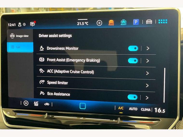 Activated carbon canister, Adaptive cruise control (ACC), Advanced driver attention and drowsiness monitor, Dynamic road sign display, Dynamic steering, E-Sim card for online connectivity, eCall emergency call system, Multi-color Digital cockpit pro, selection of different info profile possible, Multifunction front facing camera for distance control, Navigation system, Oncoming vehicle braking when turning including swerve support, Speed limiter, Speedo, rev counter, electronic odometer, trip, service interval display, exterior temperature and fuel gauge, Traffic jam assist, Voice enhancer and voice control, Warning signal and warning light for front and rear seatbelts not fastened, We connect plus preparation, We connect preparation, Wireless app connect, Hybrid propulsion system, Petrol Particulate Filter, Start-stop system with battery regeneration (recuperation - energy recovery during braking), XDS electronic differential lock for improved traction and handling, 2 USB C ports in front, 2 USB charging sockets on the centre console in the rear charging capacity upto 45W, Digital radio reception (DAB), Diversity antenna for FM reception, Gaming platform via car app, Infotainment system with 12.9" display, Mobile phone interface with inductive charging feature, 3rd brake light, Automatic headlamp activation with Coming home and Leaving home feature, Body colored bumpers in R-Line style, Body colour door handles, Exterior mirrors convex on the left and aspherical on the right, Front and rear electric windows, Heat insulating windshield made of laminated glass, LED separate daytime running light, Rear exhaust tailpipe, Rear fog light on one side and reversing lights on both sides, Rear side wing doors, Rear windscreen washer and wiper with interval delay, Remote electrically foldable door mirrors, puddle lights and reverse activated passenger's door mirror, Welcome light with surround lighting, 12V socket in front centre console, 12V socket in luggage compartment, 3 rear head restraints, 3 seat bench in 2nd row, Ambient lighting with 30 colour including LED light unit in front footwell with selectable light colour, Black roof lining, Brushed stainless steel pedals, Chrome plated radiator grille inserts, air vent surrounds and light switch surrounds, Door insert, side trim panel and arm support in leatherette, Front + rear black carpet mats, Front centre armrest, Front seat lumbar support adjuster, Integrated front head restraints, ISOFIX anchors for child seats on outer rear bench seats and on front passanger seat compatible for i-Size, Luggage compartment lighting, Manual height adjustable front passenger seat, Manually height adjustable driver seat, Plastic gear knob, Premium sports seats in front, Rear cupholder and loadthough, Sardegna cloth upholstery with front and outer rear seats Art Velour inner sides of bolsters, Single front passenger seat, Split folding backrest with centre armrest and unsplit rear seat bench, Sun visors with illuminated vanity mirrors, Titanium black instrument panel, 3 point height adj front seatbelts + pretensioners, 3 rear three point seatbelts, ABS, Autonomous emergency braking front assist with pedestrian and cyclist monitoring, Child locks on rear doors, Driver and front passenger airbag with front passenger airbag deactivation, Electronic parking brake with auto hold, ESC (Electronic Stability Control), Extended pedestrian protection measures, Hill start assist, Rear disc brakes, Two tone horn, Tyre pressure loss indicator, Volkswagen roadside assistance, Anti theft wheel bolts, Preparation for alcohol interlock, Decorative inserts carbon grey for dashboard and front door trim panels, Tool kit for tyre mobility set, Tyre mobility kit Includes 12V compressor and tyre sealant,