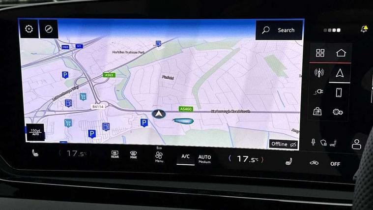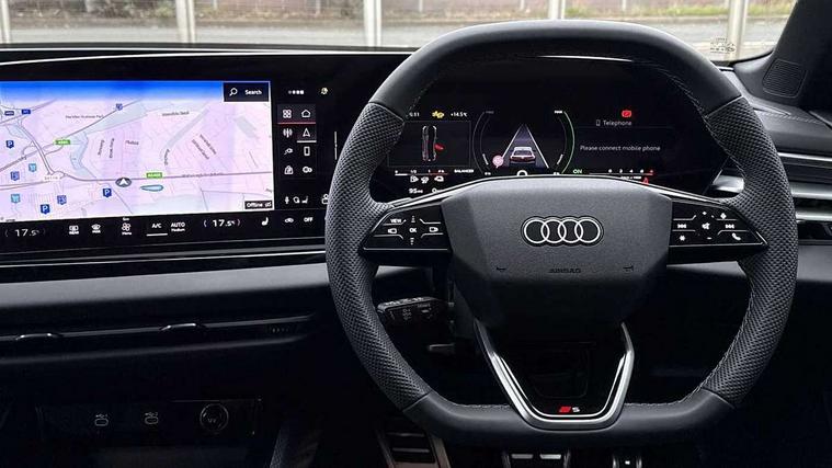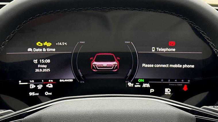 Adaptive cruise control, Advanced driver attention and fatigue montior, Audi application store, Audi assistant, Audi connect emergency call and service, Audi drive select, Audi virtual cockpit plus with 11.9" OLED colour display, Automatic start/stop system with coasting functionality, Camera based traffic sign recognition, Intersection assist, Lane departure warning, MMI navigation plus with high resolution 14.5" OLED touchscreen colour display, Park assist plus, Parking system plus with 360 display, Progressive steering with servotronic, Rear view camera, Smartphone interface, Swerve assist and turn assist, Traffic sign based speed limiter, Household plug type G, Hybrid propulsion system, Industrial connector CEE 32A, 230V, long and straight for the e-tron charging system, Mode 3 type 2 AC charging cable 22kW, Sports suspension lowered by 20mm, 2 USB-C ports in both the front and rear, Audi sound system impressive sound with 8 loudspeakers including centre speaker and subwoofer, 6-channel amplifier with a total output of 180 watts, DAB digital radio reception, Smartphone compartment with wireless charging, Aluminium window trims, Auto dimming rear view mirror, Body colour door mirrors, Door mirrors - electrically adjustable, heated, folding and auto dimming on both sides, Front and rear electric windows, Front door sill trims with aluminium inlays, illuminated with 'S' logo, High beam assist, LED headlights Plus incl. digital daytime running lights, turning light, all-weather light, motorway light, manouevring light and intersection light, LED rear lights pro incl. dynamic rear indicators and illuminated light strip with animated coming and leaving home function, LED third brake light, Privacy glass, Rear and side windows with heat insulating glass, Rear boot, Rear side wing doors, Removal of S line badge on the front wings, S line bumpers, radiator grille and diffuser in phantom black and diffuser insert in matt anthracite, White rhombus logo projection light in exterior mirrors, Windscreen with acoustic glazing, 3 rear headrests, 3 seat rear bench, 3 spoke leather steering wheel with multi-function buttons with touch control, flattened on top and bottom, with S badging and contrast stitching, 3-zone automatic climate control, 40:20:40 split folding rear seat bench with centre armrest and cup holders, Auxiliary air conditioning, Comfort front centre armrest, Front and rear floor mats, Front seats with manual adjustment for position and 4-way electric lumbar support, Front sport seats with integrated headrest and S embossed logo, Headlining in black cloth, Heated front seats, i-Size child seat mounting on the front passenger side and outer rear seats, i-Size and top tether on the outer rear seats, LED roof module front and rear including reading lights, Luggage compartment lid, electrically opening and closing, Manual steering column height and depth adjustment, Single front passenger seat, Stainless steel pedals and footrest, Steering wheel grips in perforated leather and shift paddles, Storage compartment lighting under the centre armrest, Ambient lighting package plus - A5, 3x3 point rear seat belts, Acoustic vehicle alerting system, Driver airbag, Electric child safety locks, First aid kit with warning triangle and vests, Front emergency brake assist, Front passenger airbag, Front passenger airbag deactivation, Front side airbags with head airbag system and front interaction airbag, Hill hold assist, Seat belt monitoring with rear seat occupant reminder, Tyre pressure loss indicator, Anti theft alarm, Anti-theft wheel bolts, Keyless Go, Accent surfaces and control buttons in gloss black, Black dashboard with contrast stitching, Inlays in matt brushed aluminium with linear embossing, anthracite, Softwrap in leatherette with contrast stitching, Upper and lower interior elements in leatherette, Tyre repair kit,