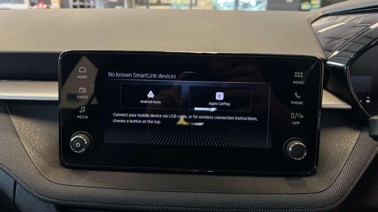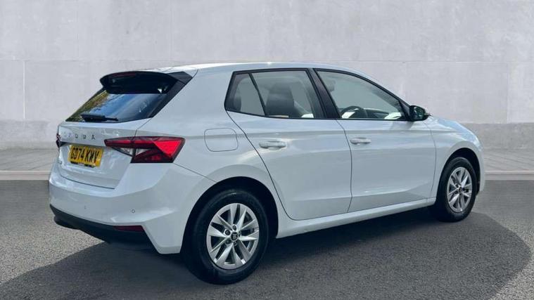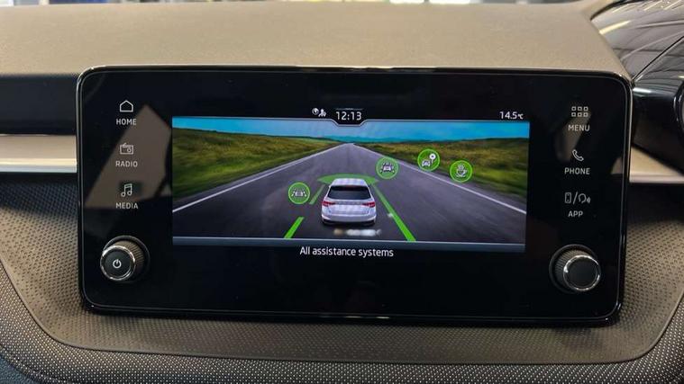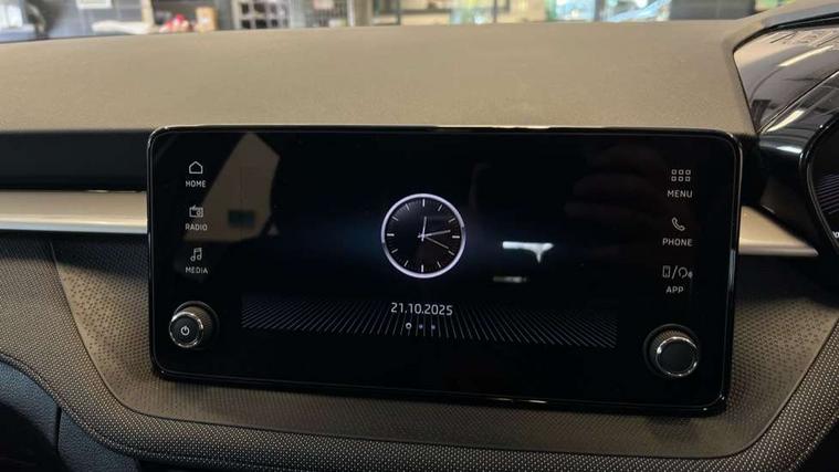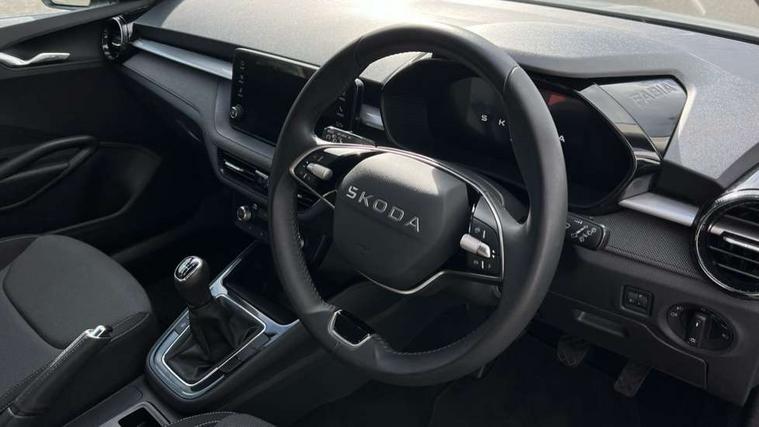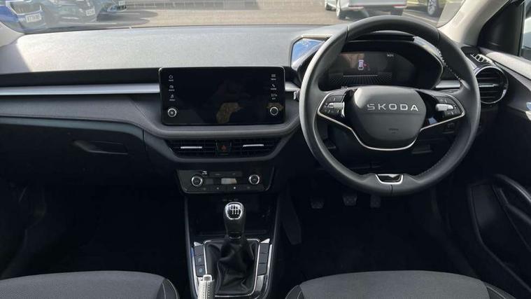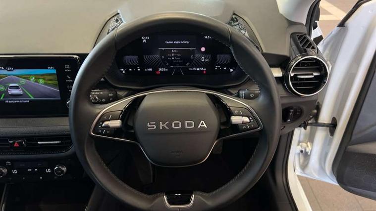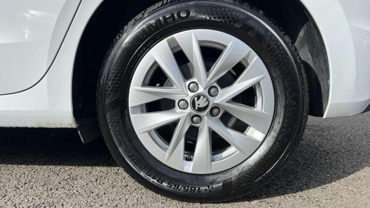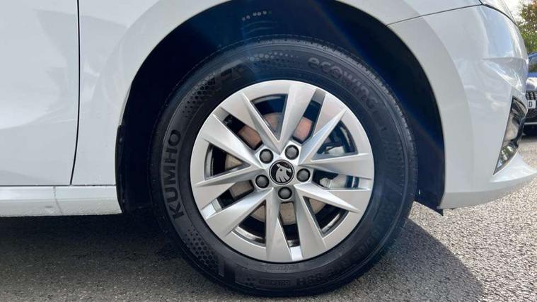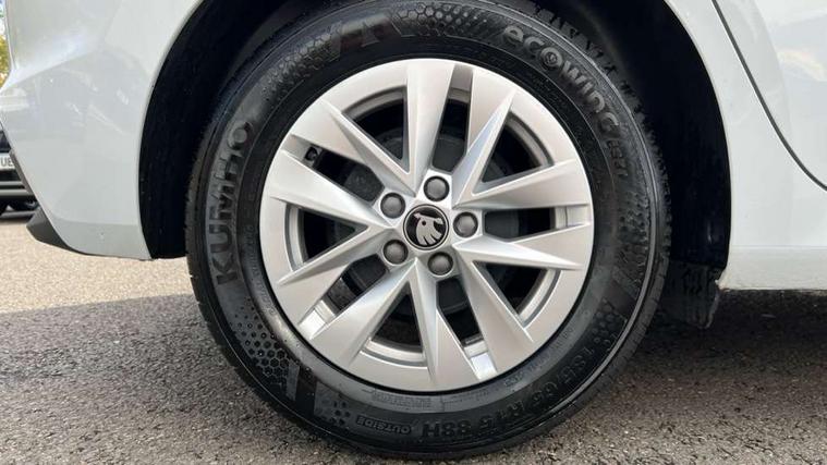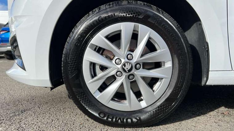 8" Digital instrument display, Advanced driver attention and drowsiness monitor, Bluetooth connection, Electromechanical power steering, Exterior temperature gauge, Service interval indicator, Traffic sign recognition, Wireless SmartLink for Apple CarPlay and Android Auto, 6 Speakers (4 in front and 2 in rear), 8.25" Skoda infotainment touchscreen display, Auxiliary socket for external MP3 player, DAB digital radio reception, Auto dimming rear view mirror, Body colour door mirrors, Body coloured bumpers, Door mirror integrated indicators, Front and rear electric windows, Front window wiper intermittent control, Headlight range control - Automatic, Ice scraper in fuel cap, LED 3rd brake light, LED daytime running lights with coming and leaving home feature, LED rear lights, Rear LED fog light, Rear side wing doors, Rear window wiper with washing nozzles, Roof mounted spoiler, SKODA tailgate lettering in chrome, Unique dark chrome design logo on alloy wheels, 2 reading lights in front and 2 reading lights in rear, 3 rear headrests, Backrest split and folding, Central console with removable cup holder and storage box, Chrome handbrake release button, Dual zone air conditioning with climatronic electronic control, Fabric upholstery, Front centre armrest, Gearshift knob/handle in leather, Grain satin black interior door handles, Hand brake lever handle in leather, Height adjustable front headrests, Height adjustable front seats, Height adjustable steering wheel, ISOFIX and TopTether anchorage points to the outer rear seats, ISOFIX and TopTether on the front passenger seat, Luggage compartment lighting, Manually adjustable lumbar support in front seats, Pollen filter, Rear seat bench unsplit, Single front passenger seat, Skoda lettering on steering wheel, Storm grey headlining, Sun visors with mirror and airbag label on passenger side, Textile floor mats, Ticket holder, Umbrella in drivers door, 3-point height adjustable front seats belts with pretensioner and force limiter, Automatic warning lights in case of crash, Driver and passengers airbag with switch off function, e-Call+, ESC including ABS, MSR, ASR, EDS, HBA and XDS, Front and rear seat belt warning, FRONT ASSIST (AEB City and AEB Inter Urban), Front side airbags, Head airbags, One tone horn, Pedestrian protection, Three rear 3-points safety seat belts with pretensioner and force limiter including stop function for outer rear seat belts, Tyre pressure monitoring system, Anti-theft alarm system including immobiliser, interior monitoring, backup horn, and towing protection, Central locking with radio remote control, interior controls, SAFE function and 2 foldable keys, Black painted air vents, Grain satin black central console cover, Metallic grey upper decorative trim, Satin black door and side trim panel in front, Textile Kota grey lower decorative inserts, Anti-theft wheel bolts protection, Super-low rolling resistance tyres,