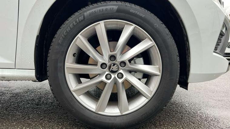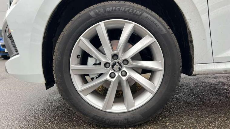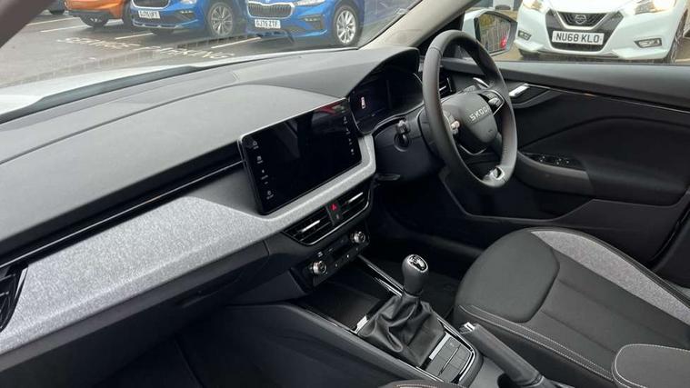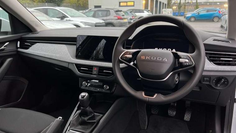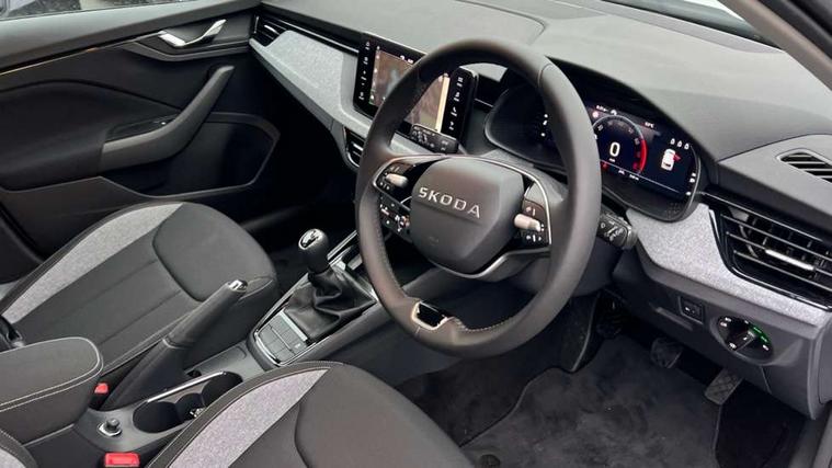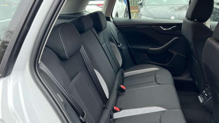 Advanced driver attention and drowsiness monitor, Bluetooth system, E-call, Front assist system, PAS, Rear parking sensors, Rear view camera, Service indicator, Speed limiter, Traffic sign recognition, Virtual cockpit with 10.25" display, Wireless smartlink, 4 USB C ports, 8 Speakers, 9.2" Skoda navigation display, DAB Digital radio, Auto dimming rear view mirror, Automatic headlight control with coming home and leaving home feature, Black roof rails, Body colour bumpers, Body colour door mirrors and handles, Chrome grille surround, Front and rear electric windows, Full LED headlights, Heated rear window, LED brake lights, LED daytime running lights, LED front turning lights, LED high beam, LED low beam, LED third brake light, Rear LED fog light, Rear side wing doors, Rear wiper, Ticket holder inside windscreen, 12V socket in luggage compartment, 3 seat bench in 2nd row, Black hotstamping, Cargo elements, Chrome inner door handles, Driver and passenger sun visors with vanity mirror, Dual zone climate control, Front and rear roof lights, Front centre armrest, Front head restraints, Glove compartment with illumination, Height adjustable driver seat, Height adjustable front passenger seat, Ice scraper, Inner circulation control with pollen filter, ISOFIX on front passenger seat, Isofix preparation for back seats, Krepp recycled decor inserts, Leather gearknob and handbrake lever, Loft cloth upholstery, Manual lumbar support for front seats, Net package and top tether hooks in boot space, Net under rear shelf, Overhead glasses storage compartment, Pocket on the back of both front seats include mobile phone pockets, Rake/reach adjustable steering wheel, Reading lights, Satin black door inserts, Single front passenger seat, Textile floor mats, Third rear headrest, Top tether for front passenger seat, Umbrella in driver's door, 3x3 point rear seatbelts, Airbags - driver and front passenger, Disc brakes, ESP, Extended and predictive pedestrian/cyclist protection, Front passenger airbag deactivation switch, Front side airbags with curtain airbags, Hill hold control, Manual leather parking brake, Manual rear child locks, One tone horn, Seatbelt reminder for driver an co-driver, Traction control, Tyre pressure monitor, Anti-theft alarm system with interior monitoring, backup horn, towing protection and remote central locking with SAFE system, Anti-theft wheel bolts, Electronic engine immobilizer,