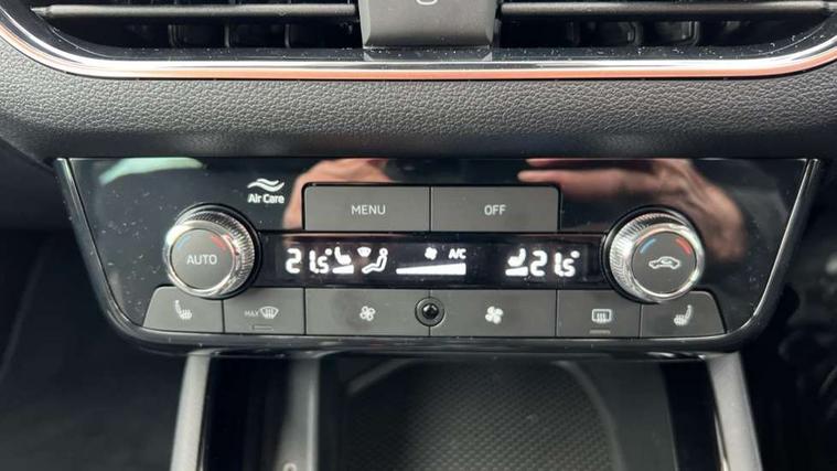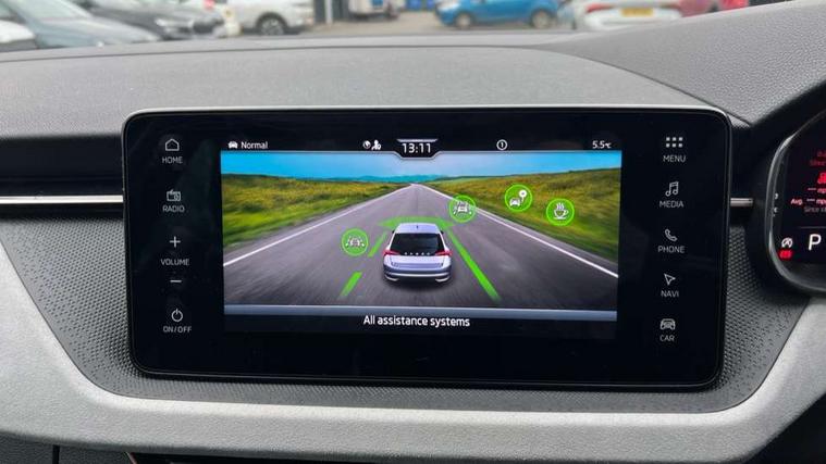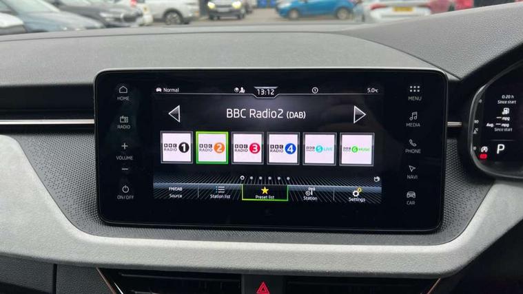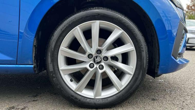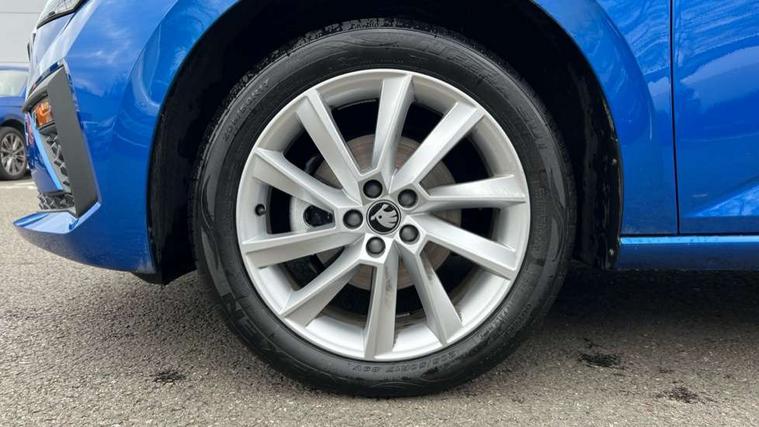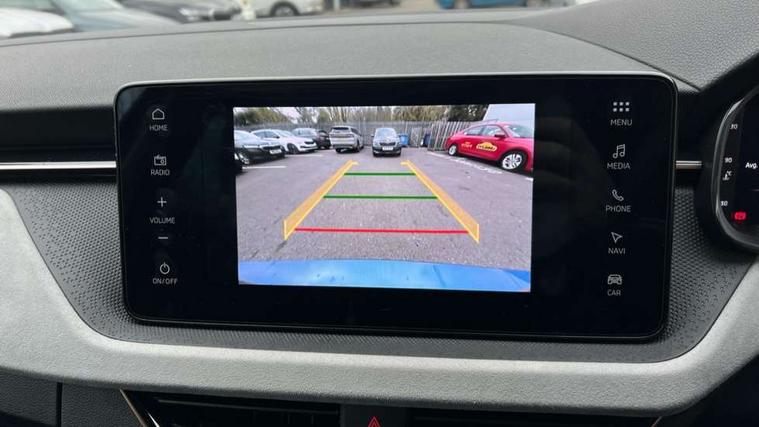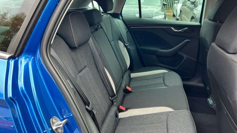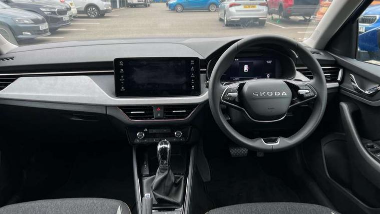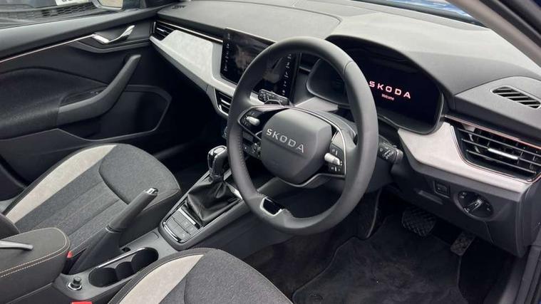 Advanced driver attention and drowsiness monitor, Bluetooth, e-Call (emergency call), Front assist system, PAS, Rear parking sensors, Rear view camera, Speed limiter, Tailgate, Traffic sign recognition, Virtual Cockpit - 10.25" digital display, Voice control system, Wireless smartlink, 4 USB C ports, 8 Speakers, 9.2" Skoda navigation display, DAB radio, Auto dimming rear view mirror, Automatic headlight control with manual coming and leaving home feature, Automatic intermittent wipers, Body colour bumpers, Body colour door mirrors and handles, Chrome moulding around grille, Chrome window frames, Front and rear electric windows, Heated rear window, LED 3rd brake light, LED daytime running lights, LED high beam, LED low beam, Light sensors, Privacy glass, Rear LED fog light, Rear side wing doors, Rear wiper, Tinted windows, Unique dark chrome design logo on alloy wheels, 12V socket in luggage compartment, 3 seat bench in 2nd row, Ambient lighting in white/red, Black / Copper armrest stitching, Cargo elements, Chrome inner door handles, Copper hotstamping, Door inserts in accent black, Driver and passenger sun visors with vanity mirror, Dual zone climate control, Front and rear roof lights, Front centre armrest, Front head restraints, Glasses storage in roof liner, Height adjustable driver seat, Height adjustable passenger seat, Ice scraper, Illuminated glove compartment, Inner circulation control with pollen filter, ISOFIX for front passenger seat, Isofix preparation for back seats, Leather gearknob and handbrake lever, Lodge cloth upholstery, Luggage net under rear parcel shelf, Manual lumbar support for front seats, Net package and top tether hooks in boot space, Pocket on the back of both front seats, incl. mobile phone pockets, Rear centre armrest, Single front passenger seat, Skoda lettering on steering wheel, Textile floor mats, Third rear headrest, Ticket holder, Top tether for front passenger seat, Umbrella in driver's door, Convenience pack without rear camera - Scala, 3x3 point rear seatbelts, ABS, Child locks, Curtain airbags and front side airbags, Disc brakes, Driver and front passenger airbags, ESP, Hill hold control, Manual leather parking brake, One tone horn, Passenger airbag switch off function, Seatbelt reminder for driver and front passenger, Tyre pressure monitoring system, Anti theft alarm system with interior monitoring, backup horn and towing protection, Anti-theft wheel bolts, Remote central locking with 2 remote folding keys, SAFE function for remote central locking, Decorative inserts,
