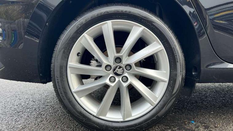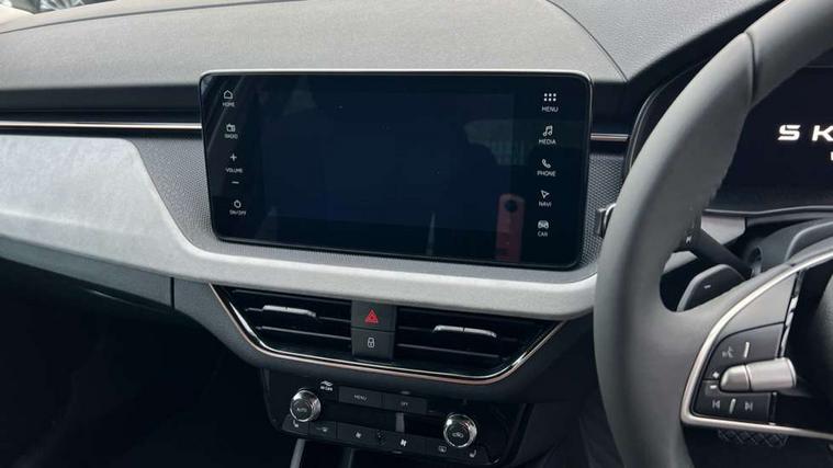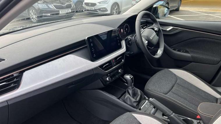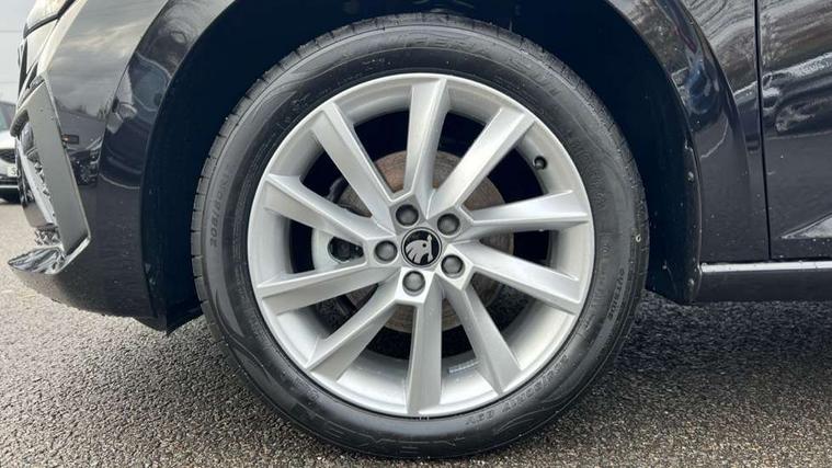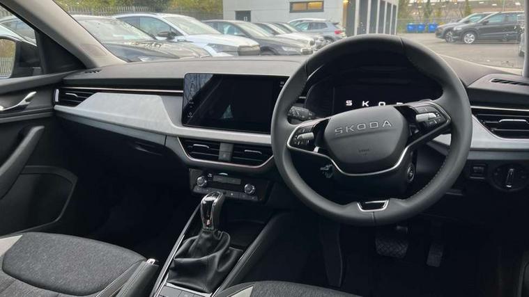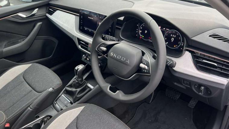 Advanced driver attention and drowsiness monitor, Bluetooth, e-Call (emergency call), Front assist system, PAS, Rear parking sensors, Rear view camera, Speed limiter, Tailgate, Traffic sign recognition, Virtual Cockpit - 10.25" digital display, Voice control system, Wireless smartlink, 4 USB C ports, 8 Speakers, 9.2" Skoda navigation display, DAB radio, Auto dimming rear view mirror, Automatic headlight control with manual coming and leaving home feature, Automatic intermittent wipers, Body colour bumpers, Body colour door mirrors and handles, Chrome moulding around grille, Chrome window frames, Front and rear electric windows, Heated rear window, LED 3rd brake light, LED daytime running lights, LED high beam, LED low beam, Light sensors, Privacy glass, Rear LED fog light, Rear side wing doors, Rear wiper, Tinted windows, Unique dark chrome design logo on alloy wheels, 12V socket in luggage compartment, 3 seat bench in 2nd row, Ambient lighting in white/red, Black / Copper armrest stitching, Cargo elements, Chrome inner door handles, Copper hotstamping, Door inserts in accent black, Driver and passenger sun visors with vanity mirror, Dual zone climate control, Front and rear roof lights, Front centre armrest, Front head restraints, Glasses storage in roof liner, Height adjustable driver seat, Height adjustable passenger seat, Ice scraper, Illuminated glove compartment, Inner circulation control with pollen filter, ISOFIX for front passenger seat, Isofix preparation for back seats, Leather gearknob and handbrake lever, Lodge cloth upholstery, Luggage net under rear parcel shelf, Manual lumbar support for front seats, Net package and top tether hooks in boot space, Pocket on the back of both front seats, incl. mobile phone pockets, Rear centre armrest, Single front passenger seat, Skoda lettering on steering wheel, Textile floor mats, Third rear headrest, Ticket holder, Top tether for front passenger seat, Umbrella in driver's door, Convenience pack without rear camera - Scala, 3x3 point rear seatbelts, ABS, Child locks, Curtain airbags and front side airbags, Disc brakes, Driver and front passenger airbags, ESP, Hill hold control, Manual leather parking brake, One tone horn, Passenger airbag switch off function, Seatbelt reminder for driver and front passenger, Tyre pressure monitoring system, Anti theft alarm system with interior monitoring, backup horn and towing protection, Anti-theft wheel bolts, Remote central locking with 2 remote folding keys, SAFE function for remote central locking, Decorative inserts,