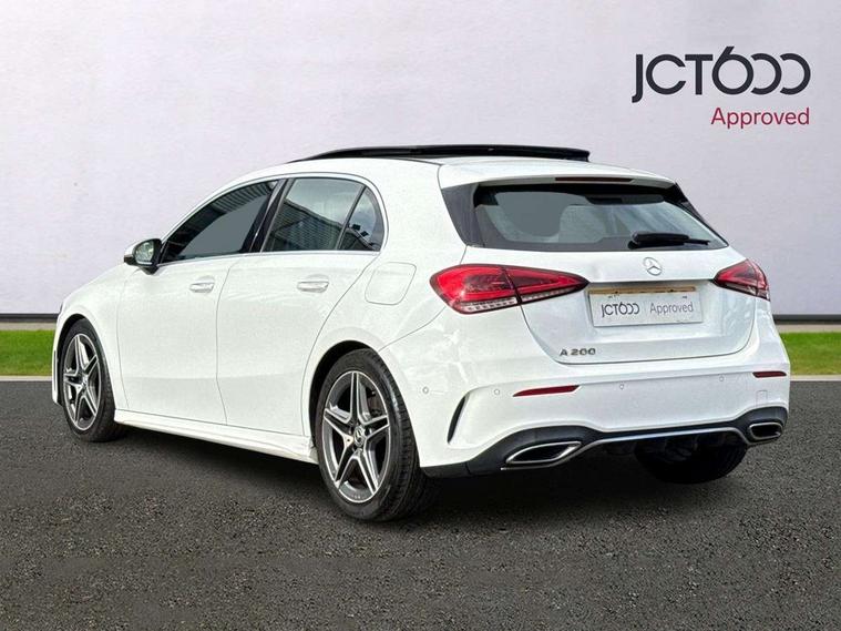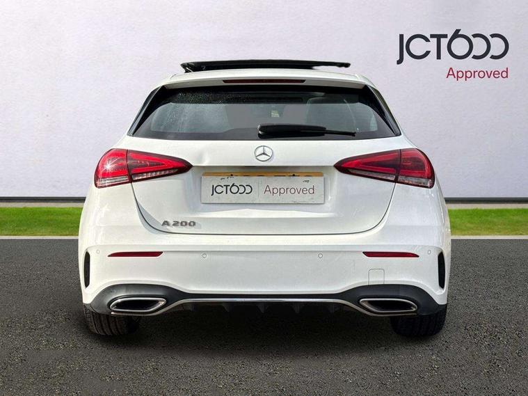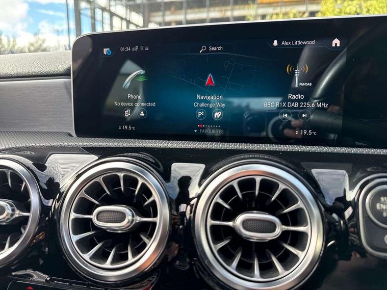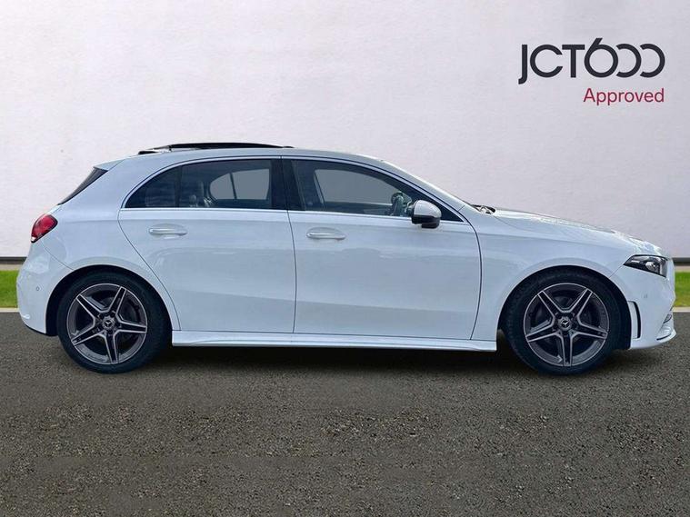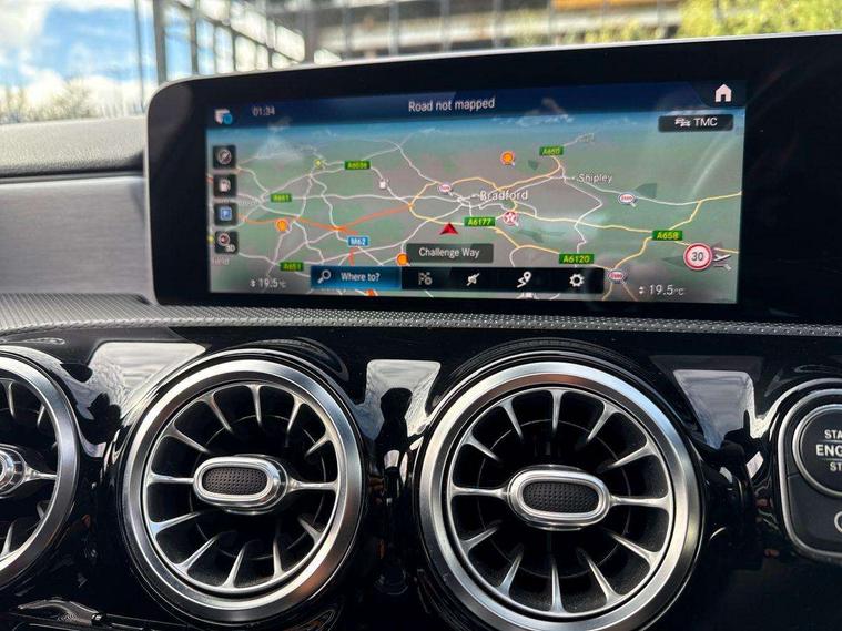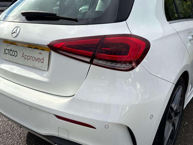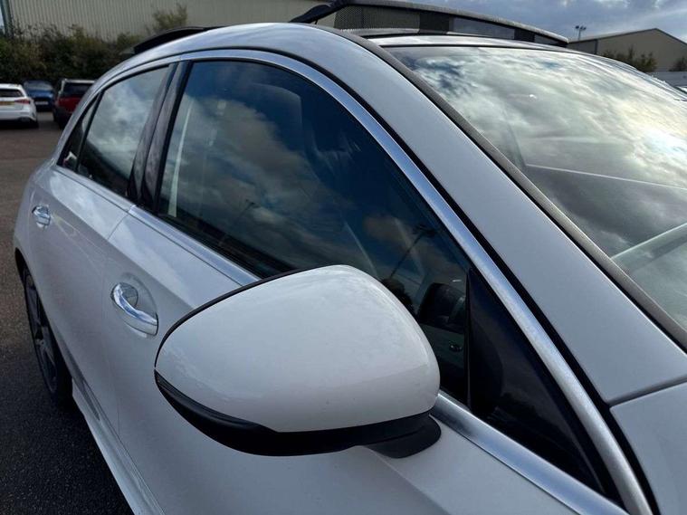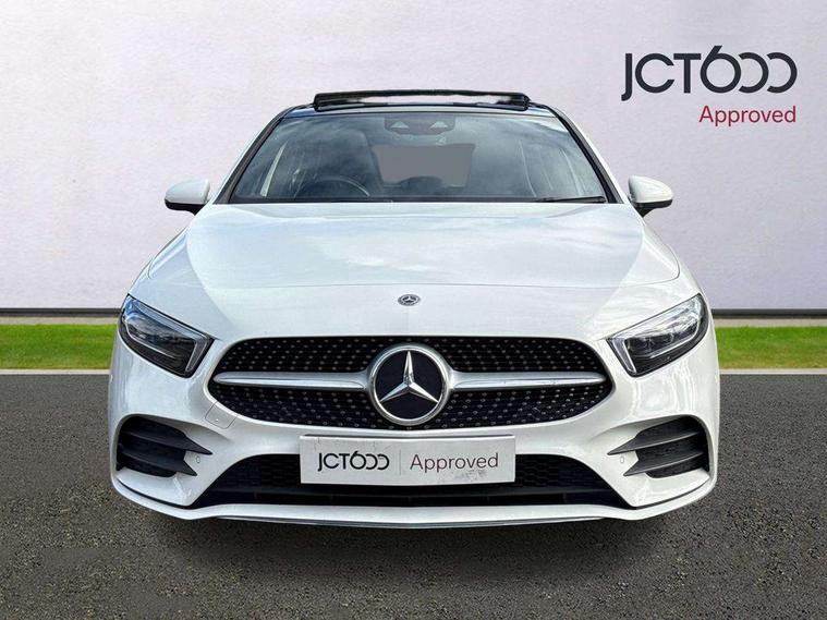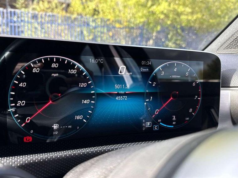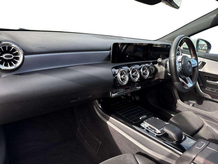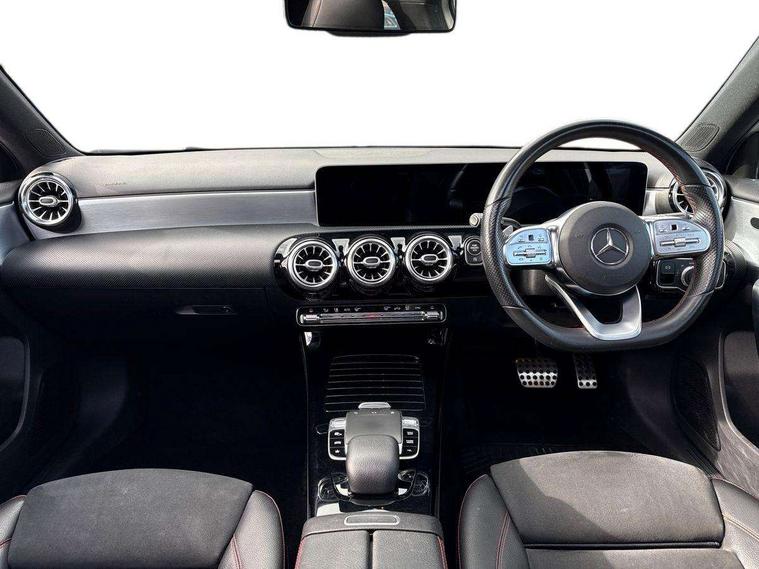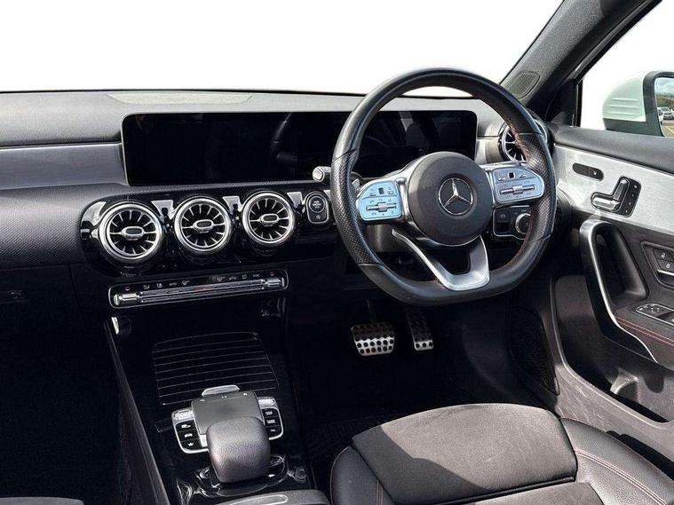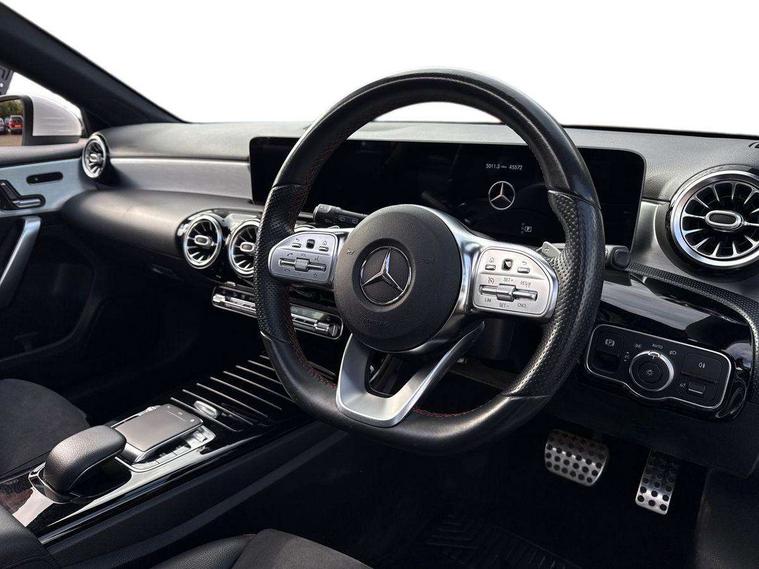 10.25" Digital instrument cluster display screen, 10.25" media display, Active lane keep assist, Active park assist with parktronic system, Attention assist, Bulb failure indicator, Cruise control + speed limiter, Direct steering, DYNAMIC SELECT with a choice of driving modes (ECO, Comfort, Sport, Sport+ and Individual), External temperature gauge, Low fluid warning light, Mercedes connect me with remote online services, Radio aerial integrated into roof spoiler, Reversing camera, Service indicator (ASSYST PLUS), Speed sensitive power steering, Stop/start system, Trip computer, Voice control system, Warning lamp for direction indicators, Lowered comfort suspension, 2 USB ports in centre console, DAB Digital radio, MBUX Multimedia system including digital instrument cluster and phone mirroring, Mid-range sound system, Adaptive brake lights, Adaptive high beam assist plus, AMG body styling, Auto dimming driver's door mirror, Auto dimming rear view mirror, Body colour bumpers, Body colour door handles, Body colour side skirt, Body coloured door mirrors, Chrome beltline trim, Diamond radiator grille with chrome pins and silver louvre + chrome insert, Electric adjustable heated door mirrors, Electric folding door mirrors, Electric front windows, Electric rear windows, Headlamp assist, Heated rear window with timer, High level third brake light, LED daytime running lights, LED Headlights, LED rear lights, Panoramic sliding sunroof, Rain sensor windscreen wipers, Rear fog lights, Rear wiper, Twin Trapezoidal tailpipes, 1/3 to 2/3 split folding rear seats, 12V socket, 3 spoke flat bottomed nappa leather sport steering wheel, AMG floor mats with red stitching, Artico man-made leather/Dinamica upholstery, Auto Mercedes-Benz child seat recognition sensor, Black headlining, Brushed stainless steel sports pedals with rubber studs, Controller on centre console with chrome surround, Dual zone automatic climate control, Electric front seats with memory function, Exit lights, Footwell lights, Front and rear reading lights, Front centre armrest with storage compartment, Front door sills with Mercedes Benz lettering, Front head restraints, Front seat backs luggage nets, Front sport seats, Gearshift paddles on steering wheel, Heated front seats, Height adjustable front seats, Height/reach adjustable steering column, Illuminated cup holders, Illuminated door sills, Illuminated glovebox, Illuminated storage compartment, Integrated head restraints, Interior door handle illumination, Interior lighting - 64 colour Ambient lighting, Isofix rear child seat preparation, Load securing rings in luggage compartment, Luggage compartment cover, Multifunction steering wheel, Oddments tray lighting, Reading lights, Rear armrest, Rear head restraints, Storage compartment under load area floor, Sunvisors with illuminated vanity mirrors, Touchpad, Twin front cupholders, Seat comfort pack - A Class, 3 rear 3 point seatbelts, ABS with Brake Assist, Active bonnet, Brake calipers with Mercedes-Benz lettering + perforated brake discs, Child proof door locks, Crash responsive emergency lighting, Drivers knee airbag, Dual stage driver/passenger airbags, Electronic parking brake, ESP with ASR, Front and rear seatbelt reminder, Front head airbags, Front passenger seat occupancy sensor, Front side airbags, Hill start assist, Tyre pressure monitoring system, Warning triangle and first aid kit, Window airbags, Alarm system/interior protection/immobiliser, Keyless Go access/ignition system, Remote central locking, Chrome air vent surrounds, 18" AMG 5 twin spoke light alloy wheels in titanium grey with highsheen finish, Tirefit sealant with electric air pump,
