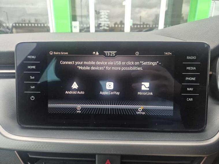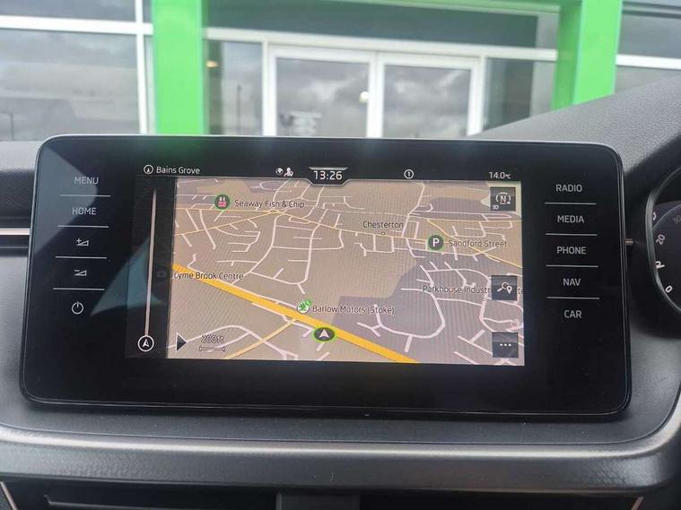 Amundsen satellite navigation with 9.2" glass colour touchscreen display, voice control, virtual cockpit, web radio and traffic sign recognition, Bluetooth system, E-call, Front and rear parking sensors, Front assist system, Gesture control, PAS, Rear view camera, Service indicator, Speed limiter, Virtual cockpit with 10.25" display, Wireless SmartLink for apple car play, android auto and mirrorlink, 8 Speakers, Auxiliary input socket, DAB Digital radio, Auto dimming rear view mirror, Body colour bumpers, Body colour door mirrors and handles, Chrome grille surround, Electric folding door mirrors, Electrically adjustable and heated door mirrors, Front and rear electric windows, Headlight range control, Heated rear window, LED rear lights - low functionality, Light sensors, Privacy glass, Rear fog lights, Rear side wing doors, Rear wiper, 12V Accessory socket in centre console, 3 seat bench in 2nd row, Chrome inner door handles, Dual zone climate control, Front head restraints, Glove compartment with illumination, Ice scraper, Isofix child seat fittings on outer rear seats, ISOFIX on front passenger seat, Manual lumbar support for front seats, Rake/reach adjustable steering wheel, Reading lights, Single front passenger seat, Sun visors with illumination on front passenger, Textile floor mats, Third rear headrest, Top tether for front passenger seat, Umbrella in driver's door, 3x3 point rear seatbelts, Airbags - driver and front passenger, ESP, Front passenger airbag deactivation switch, Front side airbags with curtain airbags, Hill hold control, Manual parking brake, Manual rear child locks, One tone horn, Rear disc brakes, Seatbelt reminder for driver an co-driver, Traction control, Tyre pressure monitor, Anti-theft alarm system with interior monitoring, backup horn, towing protection and remote central locking with SAFE system, Anti-theft wheel bolts, Electronic engine immobilizer, Latice curved decorative insert on the dashboard with hot stamping in copper and white ambient lighting white,