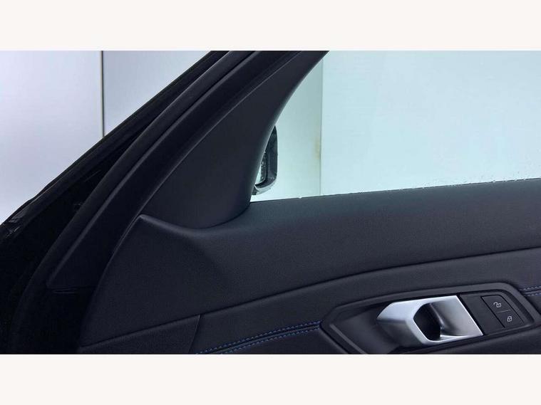 Active guard plus, Attentiveness assist, Automatic Start/stop button, Bluetooth Wi-Fi interface, BMW iDrive, BMW Teleservices, ConnectedDrive Services - last state call, Live cockpit plus with Navigation + 12.3" instrument display + 14.9" display, Intelligent voice assist, 2 USB, 4G LTE connect, Oil sensor for level and grade, Personal e-SIM, Shifting point display, Double joint spring strut front axle, Fuel tank breather system, Public mode 3 professional fast charging cable with 5m length, Steptronic Sport automatic transmission with steering wheel mounted gearshift paddles launch control and xtreme drive lever control, DAB tuner, 3rd brake light, Auto dimming rear view mirror, Automatic headlight beam throw control with load dependent regulating reaction, dynamic compensation of braking dive and acceleration squat, Bi-LED Low and high beam headlights, BMW emblem, engine compartment lid and tailgate, Body colour roof fin, Door sill strips, Electric windows - front and rear, with open/close fingertip control, anti-trap facility and comfort closing, Fading support, Folding wing mirror with auto dimming, Follow me home headlight function, Front and rear bumper system with replaceable deformation elements, Front apron plastic in body colour, Fuel filler flap - right rear in body colour, Heat protection glazing on front windows and windscreen, Heated washer jets, High gloss chrome kidney frame with high gloss black kidney struts, LED daytime running lights, LED rear lights, LED turn indicator, Licence plate panel integrated into front bumper and tailgate, M high gloss shadow line exterior trim, Matt black B-pillar finsher, Matt black window recess cover, Model designation on right side of tailgate, One piece front bumper cover including towing eye cover in body colour, Rain sensor with automatic headlight activation, Rear boot, Rear side wing doors, Reversing lights, Side frame decorative moulding black matt, Trailer stabilisation logic, Visible exhaust tailpipe finisher, Welcome lights in interior and door handle area, 12V power socket in front storage compartment, 2 front cupholder in centre console with clamping elements and matt black inlay, 3 seat bench in 2nd row, 3 spoke M Sport multifunction flat bottom leather steering wheel, 3 zone automatic air conditioning, 40:20:40 split folding rear seat with loading system, Anthracite headlining, Armrest integrated in front and rear door trim + front centre console armrest, Battery in luggage compartment, BMW ID, Cruise control operation in steering wheel, Driving experience mode switch, Folding rear centre armrest with 2 cupholders, Front and rear headrests, Front and rear velour floor mats, Front reading light, Heated front seats, Height adjustable mechanically and infinitely variable steering column, Illuminated armrest storage compartment, Illuminated glove compartment, Illuminated luggage compartment, Lashing eyelets in luggage compartment, Single front passenger seat, Sunvisors with illuminated vanity mirrors and ticket pocket, Toolkit located in luggage compartment, Connected pack professional - 3 Series Saloon/Touring, Interior and exterior mirror pack - 3 Series Touring/Saloon, M sport exterior styling pack - 3 Series Saloon/Touring, Parking assistant pack - 3 Series, 3x3 point rear seatbelts, BMW emergency call, Child locks on rear doors, Crash sensor activating of airbags, Unlocking doors, hazard warning lights, interior light, safety battery terminal, Drive-off assistant, Driver and front passenger with seat occupancy detection for driver's and passenger side, Driver and passenger side airbags, body protection at side and airbags deploy from seat backrests, Dry braking, Dynamic brake control, Dynamic stability control + (DSC+) - Anti-lock Braking System (ABS) with brake assist and cornering brake control + Automatic Stability Control (ASC), Dynamic Traction Control - DTC, Electric parking brake including automatic hold function and automatic release of the parking brake when driving off, Electronic differential lock control (EDLC), Front airbag deactivation, Front airbags for driver and front passenger, Head airbags in 1st and 2nd row, head protection at side, curtain airbags open from headliner above 1st and 2nd row, Plastic fuel tank, Side impact protection, Tyre pressure sensors, Ventilated front and rear disc brakes, Warning triangle and first aid kit, Alarm system, Centre lock switch, Closing system with central locking, Electronic vehicle immobiliser, Locking wheel bolts, Tyre repair kit,