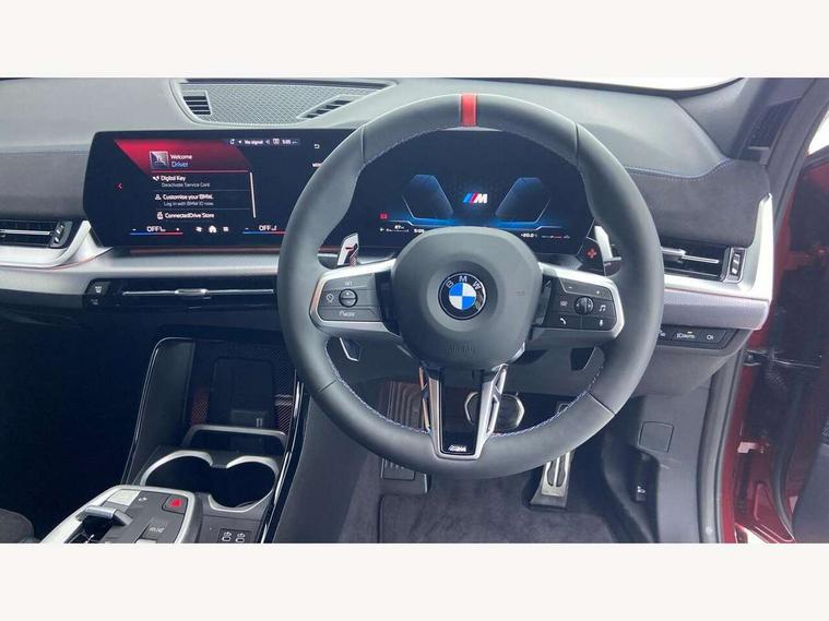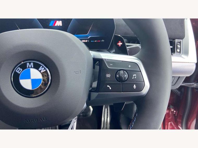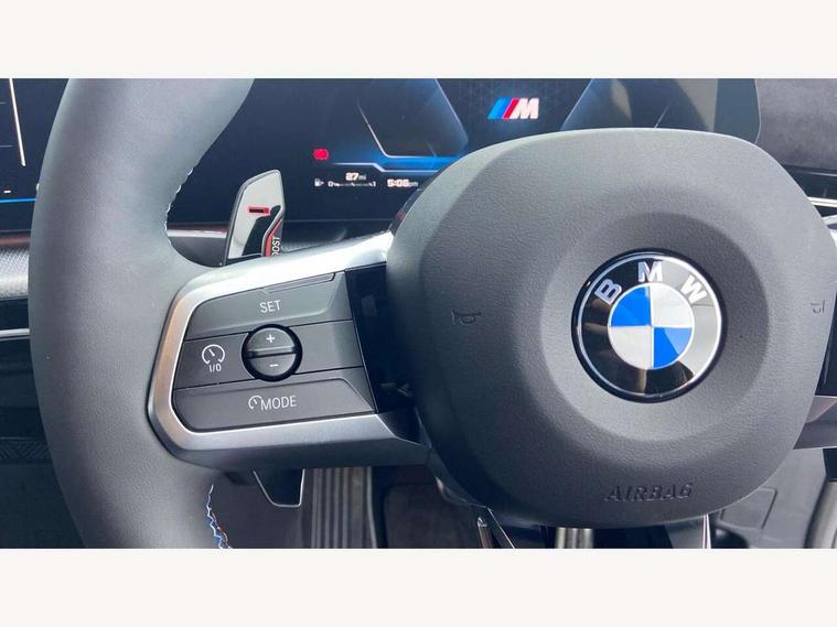 4G LTE connectivity, Attentiveness assist, Automatic start/stop function, Bluetooth / Wi-Fi interface with hands free system, BMW ConnectedDrive store and BMW Remote softwre upgrade, BMW Intelligent Personal Assistant, BMW Live Cockpit Plus - Widescreen display with 10.25" instrument cluster and 10.7" CID display, BMW Maps, BMW Operating System 9 with variable, confirgurable widgets, BMW Teleservices, Brake pad wear indicator, Condition based service, Connected drive services, Drive off assistant, Electrically opening/closing tailgate with opening/closing with remote control and contactless opening and closing, Gear display in instrument cluster including recommended gear, iDrive controller, Language version English, My modes (Personal / Efficient / Sport), Parking assistant with reversing assistant, active PDC, lateral parking aid and rear view camera, Personal Profile, Servotronic PAS, Smartphone integration for Apple CarPlay/Android Auto, Speed limiter, Touch operation on control display, Dynamic stability control, Larger Fuel Tank, M Adaptive suspension, Performance Control, Petrol Particulate Filter, Steptronic transmission with double clutch and gear shift paddles, BMW Personal eSim, DAB Digital radio, Harman Kardon HiFi loudspeaker system, Tuner with diversity reception and RDS, AM radio and FM radio, 4 exhaust tailpipes with tailpipe trims in pearl chrome, B-pillar and front/rear door trim panels and exterior mirrors in M styling in black high gloss, BMW kidney Iconic Glow, BMW M radiator grille with horizontal struts in high gloss black including M badge, Contoured M rear spoiler in vehicle colour with side aeroblades in high gloss black, Dynamic brake lights, Electric adjustable heated door mirrors, Electric windows - front and rear, with open/close fingertip control, anti-trap facility and comfort closing, Folding door handles integrated flush with surface, Front and rear bumper panel in M styling, Front door exit lights, Heated rear window, Home light, LED 3rd brake light integrated in rear window frame, LED daytime running lights, LED number plate light, M signature on front right/ left side panel, Matt black roof strips, Rain sensor including auto headlights activation, Rear side wing doors, Rear wiper, Roof mouldings in vehicle colour, Side sill trim panel in M styling, Sun protection glass, Trailer stabilisation logic, Welcome lighting, Window recess finisher strips and side window frames in black high gloss, Windscreen washer nozzle for rear view camera, Windscreen wipers front with heated washer nozzles, 12V - Power sockets with front centre console and luggage compartment, 12V socket in right side trim panel, 2 bag hooks in luggage compartment, 2 cup holders in front centre console, 2 front reading lights, 2 x USB Type C ports for charging and data transmission (front centre console) and 1 USB Type C ports for charging (rear centre console), 3 rear headrests, 3 seat bench in 2nd row, 3 upper retaining strap clips integrated into rear panels of seat backrests, 40:20:40 split folding rear seats, Ambient interior lighting, Anthracite front and rear floor mats, Bottle trays in all doors, Child seat ISOFIX attachment for two outer rear seats and front passenger seat with anchorage points, Driver and front passenger heated seats, Dual zone automatic air conditioning, Flat air vents on instrument panel in high gloss black, adjustable seats with elements in pearl chrome, Footrest and pedals in stainless steel look, Front and rear door pockets, Front and rear footwell lights, Front armrest with integrated control panel, Front centre console storage compartment, Front/rear adjustable head restraints, Glove compartment, Interior door handle recess light on all doors, Light on right in luggage compartment, M headliner Anthracite-A pillar trim panels, headliner in anthracite & B, C, D pillar upper trim panels, sun visors, grab handles, microphone cover in black, M leather steering wheel, Map pockets on the seats (version depending on equipment), Middle centre console storage compartment, One piece parcel shelf opens together with tailgate and removable, Rear armrest in door trim panel, Rear coat hooks, Selector lever with toggle operation, Single front passenger seat, Storage compartment lighting in centre console and storage tray in centre stack, Storage compartment net in left side trim panel, Storage compartment with folding cover under centre console armrest cushion, Storage tray in right side trim panel, Sun visors with illuminated vanity mirrors, Tilt adjustment incl. cargo function of 2nd row of seats, ABS, Automatic hold function, BMW emergency call, Braking readiness, Child lock for rear electric windows, Cornering brake control (CBC), Crash Sensor - activates hazard/interior lighting + unlocks doors, Driver/Front Passenger airbags, Driver/front passenger side airbags, Dry braking, Dynamic brake control, Electromechanical parking brake, Energy recovery system, First aid kit, Front and rear brake discs, Front centre airbag between driver and front passenger seats, Front passenger airbag deactivation, Head airbags for all 4 outer seats, Integrated brake system, Locking of doors after driving off, M Sport brakes with dark blue metallic calipers, PC iBrake PostCrash approach control warning with light braking function, Rear door child safety locks, Three point seat belts in all seats, Tyre pressure monitor, Warning triangle, Alarm system with tilt sensor, monitoring doors, bonnet interior and tailgate, Closing system with central locking including 2 vehicle keys with integrated emergency key, Locking wheel bolts, Front centre console trim in high gloss black, Luxury instrument panel, Tyre repair kit plus,