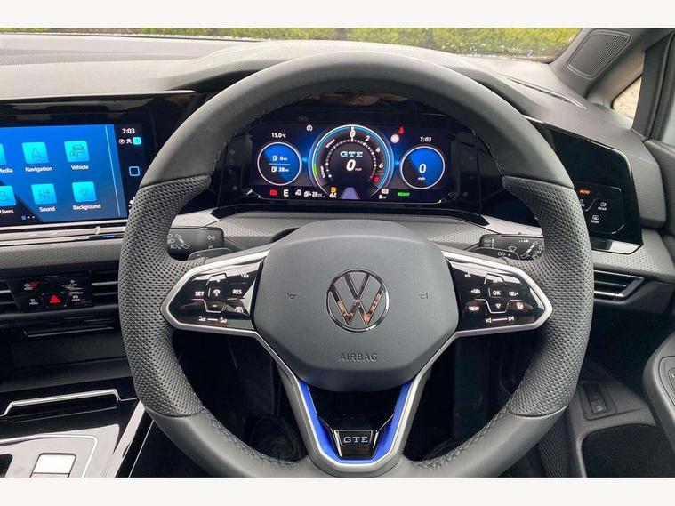 Adaptive cruise control (ACC) with speed limiter and front assist (reacting to vehicles pedestrians and cyclists), Car2X communication, Digital cockpit pro - 10.25" high resolution TFT dash display screen with customizable menus and information, Driver alert system, Dynamic road sign display, eCall - Emergency call service for SOS calls to emergency response, Electronic engine sound, Lane assist, Lane change assistant, Mobile phone interface with wireless inductive charging function, Multifunction camera for distance control, PAS, Speedo, rev counter, electronic odometer, trip, service interval display, exterior temperature and fuel gauge, Start/Stop function, Travel assist with emergency side assist with electrically foldable door mirrors, USB-C ports in the front and rear centre console with increased charging performance, Warning buzzer and light for front seatbelts unfastened, Wireless app connect, 6 metre charging cables of Type 2 mode 2/G (10A) charging cable, Petrol Particulate Filter, Type 2 mode 3 (16A) AC Cable for wallbox/chargepoints, XDS electronic differential lock for improved traction and handling, Premium USB cable in choice of either Apple or Android smartphone compatibility, Ambient lighting, exterior illuminated styling elements at the sides, Auto dimming rear view mirror, Automatic headlamp activation with Coming home and Leaving home feature, Automatic headlights, Body colour bumpers, Body colour door handles, Body colour door mirrors with integrated indicators, Body colour rear roof spoiler, Front and rear electric windows, GTE style bumpers, Heat insulating glass windscreen, Heated rear windscreen, High level 3rd brake light, Highway light, Illuminated front grille, IQ.Light - LED Matrix headlights, dynamic headlight control with advanced high beam control matrix dipped main beam + LED DRL + 22 LED lights, LED front fog lights with 5 honeycomb design, LED License plate illumination, LED rear combination lamp inlcuding dynamic turn signal, Rain sensor, Rear fog light on one side and reversing lights on both sides, Rear side wing doors, Rear tinted glass 65% light absorbing from B pillar backwards, Rear windscreen washer and wiper with interval delay, Remote electrically heated, adjustable and foldable door mirrors, including door mirror puddle lights and reverse activated kerb-view adjustment on pa, Welcome light, 12V socket in front centre console, 12V socket in luggage compartment, 3 rear head restraints, 3 seat bench in 2nd row, 3 zone climate with controls in the rear, Aluminium gear knob, Ambient lighting - Customisable 30 colour ambient lighting, Brushed stainless steel pedals, Chrome plated surround to electric mirror button, window switch and air vent surrounds, Drivers and front passengers sun visors with vanity mirrors, Front + rear carpet mats, Front centre armrest with storage compartment, Front cupholders x 2, Front passenger seat, Front reading lights x 2 incorporating LED technology, Front seat lumbar support adjuster, Front sports seats, Glovebox, Height adjustable front seats, Height and reach adjustable steering wheel, Isofix child seat preparation for 2 rear child seats and front passenger seat, Leather wrapped multifunction sports heated steering wheel with paddle shift, Leatherette door armrests and centre armrest, Luggage compartment lighting, Removable luggage compartment cover, Soul black instrument panel, Soul black roof lining, Split folding backrest with centre armrest and unsplit rear seat bench, Woven fabric storage compartments in front and rear doors, 3 point height adj front seatbelts + pretensioners, 3 rear three point seatbelts, ABS, Child locks on rear doors, Driver and front passenger airbag with front passenger airbag deactivation, Drivers and front passengers safety optimised head restraints, Electronic parking brake with auto hold, ESC (Electronic Stability Control), Extended pedestrian protection measures, Front and rear passengers curtain airbag system including front side airbags, Front centre airbag, Front disc brakes, Front side airbags with curtain airbags, Rear disc brakes, Two tone horn, Tyre pressure monitoring system, Alarm with interior protection and deactivation via infotainment system, Electronic engine immobiliser, Keyless entry with start/stop button on centre console, Black metal chrome decorative inserts in dash and front door trim panels, High gloss black centre console, Tyre mobility kit Includes 12V compressor and tyre sealant,
