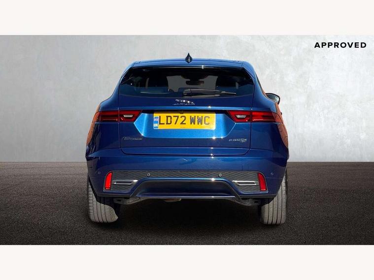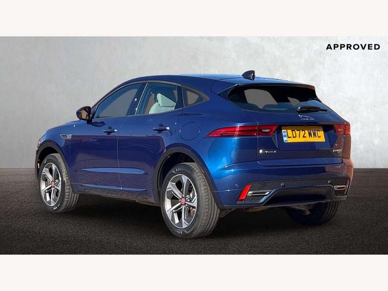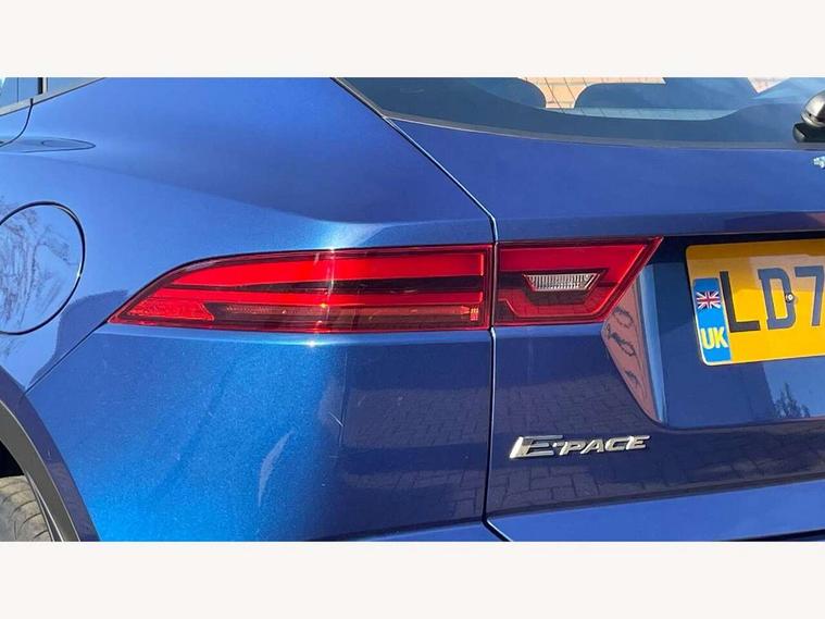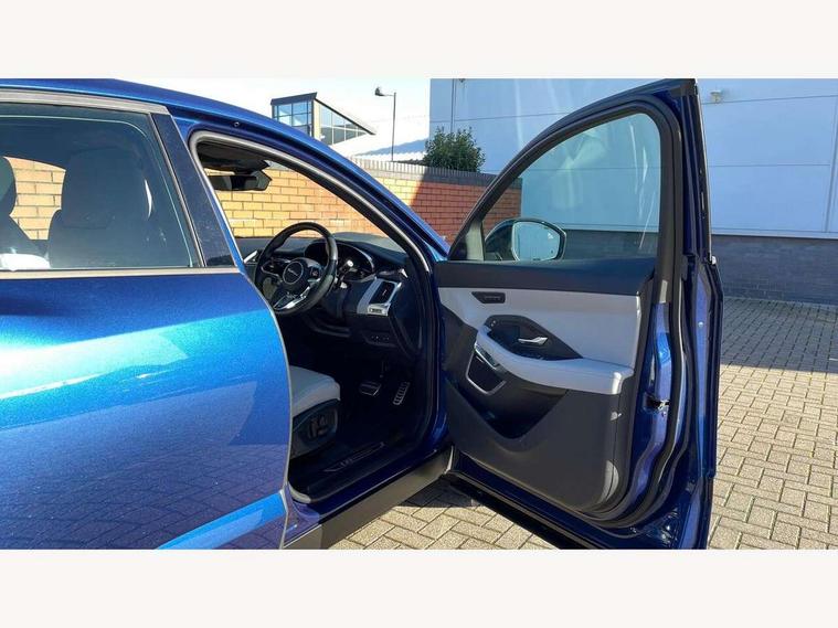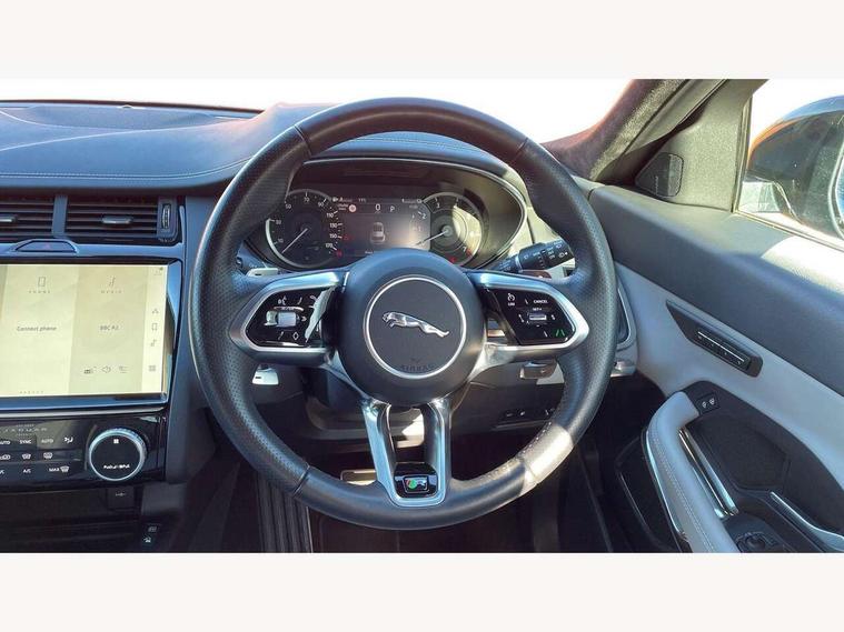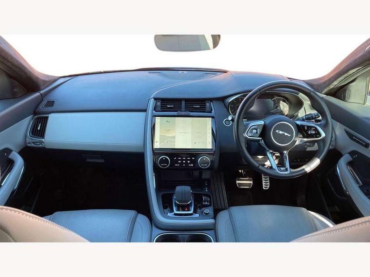 11.4" touchscreen with central ICP, 12.3" full digital instrument panel, Adaptive cruise control, Android Auto, Apple car play, Blind spot assist, Driver condition monitor, Eco driving style assistant, Electric power assisted steering, Emergency services call system, Front and rear parking aid, InControl remote, Jaguar drive control with adaptive surface response, Jaguar Toggle sport shift selector, Lane keep assist, Outside temperature gauge, Pivi pro connected infotainment system with smart settings and navigation pro, Push button start, Rear collision monitor, Rear traffic monitor, Speed proportional steering, Traffic sign recognition with adaptive speed limiter, Trip computer, Voice control system, 7 kW onboard charger, Configurable dynamics, Electric rear axle drive, Home charging cable Mode 2, Large fuel tank, Passive suspension, Public charging cable Mode 3, AM/FM DVD MP3 radio, Bluetooth connectivity including audio streaming, DAB digital audio broadcast, Dynamic volume control, 3 flash lane change indicators, Approach Illumination, Auto high beam assist, Automatic headlights, Body colour door handles, Body colour door mirrors, Body colour front and rear lower bumper main moulding and lower side cladding, Body colour upper spoiler, Body coloured side sills, Centre high-mounted stop light, Dark satin grille tips, Electric front/rear windows with one touch/auto up/down, Electric heated/power fold memory door mirrors with approach lights and auto dimming driver side, Embossed leaper for grained and windsor leather, Heated washer jets, Heated windscreen, Jaguar script and leaper, LED tail lights, LED third brake light, Narvik black antenna pod and side pillar finisher, R Dynamic badge, R Dynamic body colour bumpers, Rain sensor windscreen wipers, Rear fog lights, Rear side wing doors, Rear wash wiper, Satin black grained front outer grille, low grill mesh and low bumper valence, side fender vent mesh and finisher, rear tow eye cover and grille mesh, Twin exhaust tailpipe, Variable front intermittent wipers, 3 rear head restraints, 3 seat bench in 2nd row, 40:20:40 rear seat fold, Bright metal pedals, Carpet mats, Centre console with armrest, Enhanced ambient lighting, Hooks loadspace, ISOFIX on outer rear seats, Loadspace cover, Loadspace light, Loadspace storage net, Luggage tie-downs in loadspace, Manual height/reach adjust steering wheel, Multifunction steering wheel, Overhead lighting console, Passive front head restraints, Power sockets, R-Dynamic branded leather steering wheel, Rear air vents, Rear bench seats, Satin chrome gearshift paddles, Single front passenger seat, Sunvisors with illuminated vanity mirrors, Twin front cupholders, Two zone climate control, 3x3 point rear seatbelts, ABS, All surface progress control (ASPC), Child locks on rear doors, Customer configurable autolock, DSC - Dynamic Stability Control, Electronic brake force distribution, Electronic parking brake, Emergency brake assist, Emergency braking, Front airbags with passenger seat occupant detector, Front and rear curtain airbags, Front and rear seatbelt reminder, Front passenger airbag deactivation, Front seatbelt pretensioners, Front side airbags, Height adjustable front seatbelts, Hill start assist, Low friction launch, Power child locks, Torque vectoring brake, Tyre pressure monitoring system, Intrusion sensor and alarm, Locking wheel nuts, Remote central locking,
