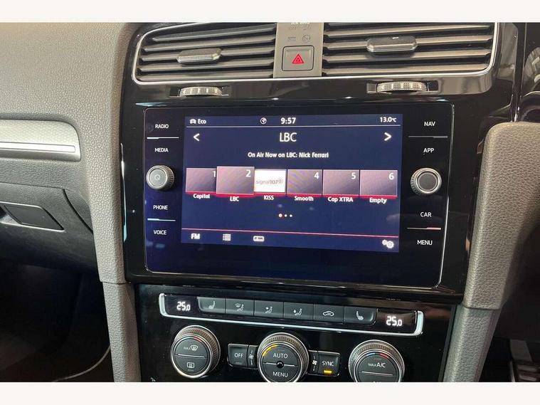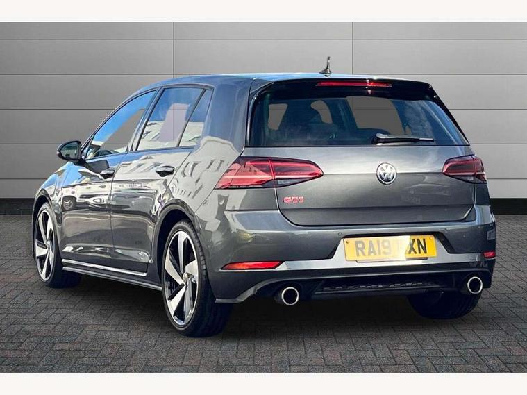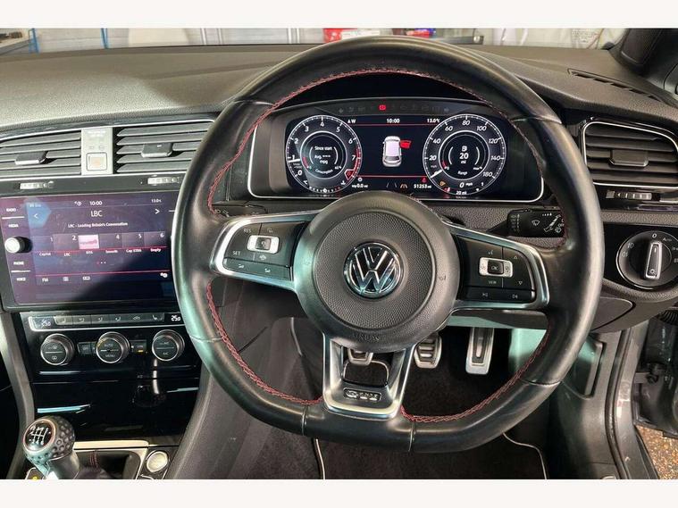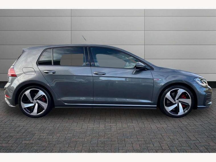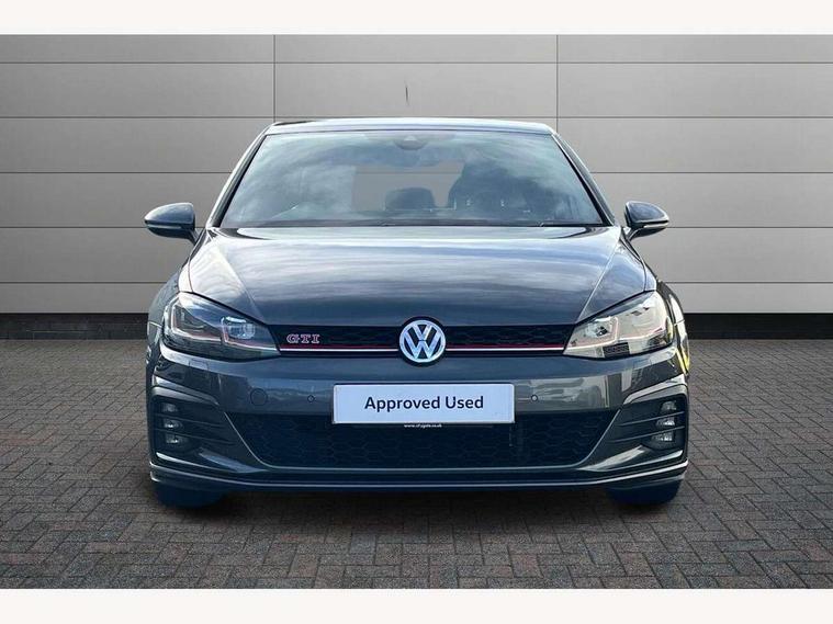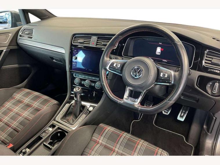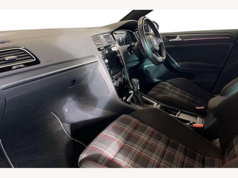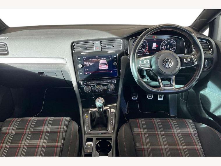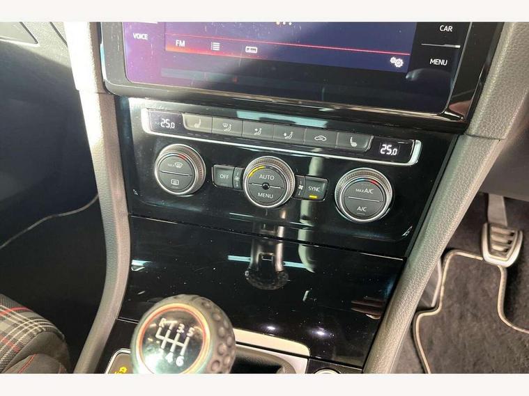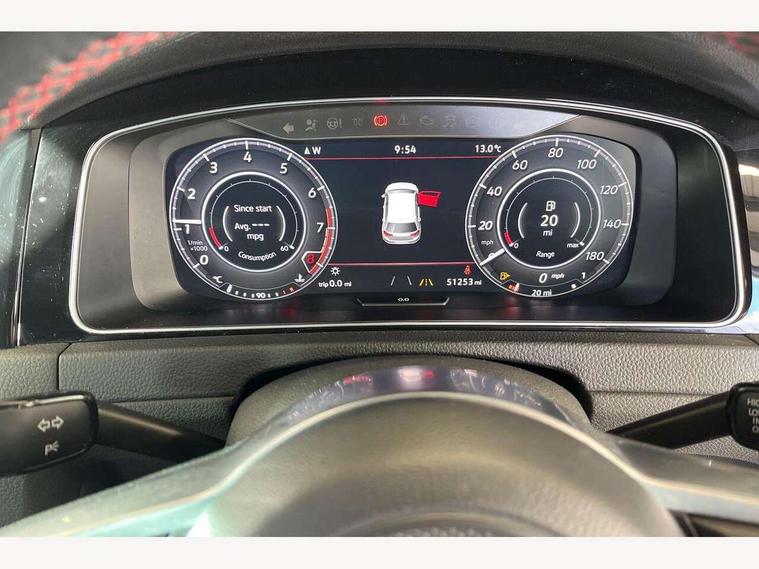 'Lights On' Reminder warning buzzer, ACC - Adaptive cruise control with front assist, forward collision warning, distance monitoring, city emergency brake and speed limiter, Bluetooth telephone and audio connection for compatible devices, Brake pad wear indicator warning light, Driver alert system, Driver profile selection, Driving Mode Selection with four preset modes - Eco, normal, sport or individual modes, Instrument cluster in white, Lane assist with dynamic light assist and traffic sign recognition, Multifunction computer with visual gear change recommendation for fuel consumption, Power assisted speed sensitive electro-mechanical steering, Push tank flap, Rear view camera, Speedo, rev counter, electronic odometer, trip, service interval display, exterior temperature and fuel gauge, Stop/start system, Warning buzzer and light for front seatbelts unfastened, Battery regeneration during braking, Limited slip differential, Lowered sports suspension, XDS electronic differential lock, Composition media system, DAB Digital radio receiver, MP3/WMA compatability, Multi device interface (MDI) with USB connection, Premium USB cable in choice of either Apple or Android smartphone compatibility, SD card slot, SMS Functionality, USB and SD card connectivity, Volkswagen media control, 3D-LED tinted rear light clusters with indicator sweep function, Black rear diffuser, Body colour door handles, Body colour door mirrors with integrated indicators, Body colour rear roof spoiler, Body colour sports bumpers, Dusk sensor + automatic driving lights, Electric front windows, Electric rear windows, Electrically adjustable and heated door mirrors, Fully galvanised body, GTI logo in red on front and back, GTI logo lettering on front wings on right and left, Heated rear windscreen, High level 3rd brake light incorporating LED Technology, Honeycomb radiator grille - black, LED daytime running lights, LED front fog lights with static cornering light function, Rear fog lamp, Rear window aerial, Rear window wash/wipe with intermittent wipe, Reflectors in all doors, Shiny black aerofoil downside, Sill extensions, Twin exhaust tailpipe, Windscreen wipers/ intermittent wipe + 4 position delay, 12V socket in luggage compartment, 3 rear headrests, 4 load lashing points in luggage compartment, 60/40 split folding rear seat backrest, Bag hook in luggage compartment x 2, Black headlining, Climate control - 2 zone electronic air conditioning with automatic air recirculation and allergy filter, Cooled glovebox, Dust/pollen filter, Front + rear carpet mats, Front centre armrest with storage compartment and two rear air vents, Front seat back storage pockets, Grab handles front x 2, rear x 2 with integrated coat hooks, Height and reach adjustable steering wheel, Illuminated door sills, Illuminated vanity mirrors, Instrument lighting white adjustable panel illumination, Interior light delay, Isofix preparation for 2 rear child seats, Leather gear knob and handbrake grip, Load through provision with rear centre armrest and cupholders x2, Luggage compartment lighting, Multifunction leather steering wheel with GTI logo and selector lever boot grip with red stitching, Overhead storage box, Stainless steel pedals, Storage box in luggage compartment, Storage compartment in roof console with cover, Storage compartments in front doors, Storage compartments in rear doors, Stowable luggage compartment cover, Sun visors, Variable boot floor, height adjustable and removable, Ambient lighting pack - Golf, Convenience Pack - Golf, Light and Sight pack - Golf, Mirror pack - Golf, 3 rear three point seatbelts, Airbags - Driver's and front passenger's, curtain airbag, Driver's knee, front side impact and passenger's airbag deactivation switch, Anti-lock Braking System (ABS) with Hydraulic Brake Assist (HBA), Automatic post collision braking system, Child locks on rear doors, Driver/Passenger optimised head restraints, Electronic parking brake with auto hold, Electronic stability control (ESC) including Electronic differential lock (EDL) and ASR (Traction control) with deactivation via infotainment system, Front ventilated disc brakes and rear disc brakes, Pre crash preventive occupant protection, Red brake calipers, Three point height adjustable front seatbelts with tensioners, Tyre pressure loss indicator, Alarm with interior protection and deactivation via infotainment system, Electronic engine immobiliser, Keyless entry with start/stop button on centre console, Remote central locking with 2 remote folding keys, Chrome plated air vent surround, Chrome plated electric mirror adjustment light switch surround, Honeycomb black decorative inserts, Piano black centre console, Steel space saver spare wheel,