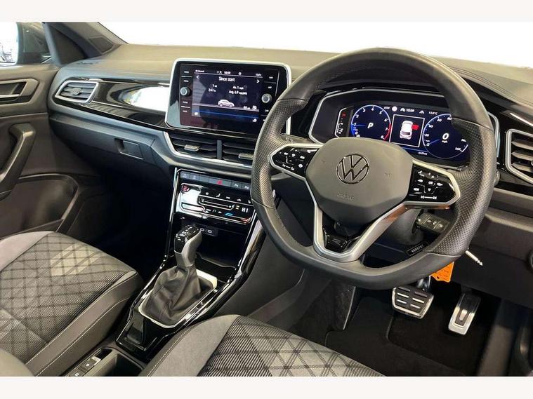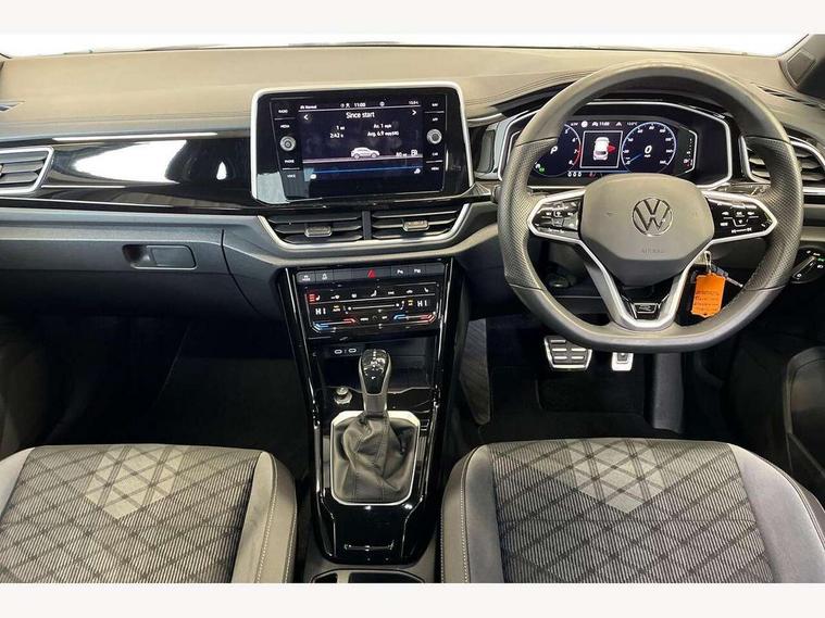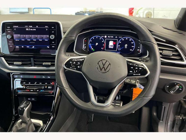 10.25" Digital cockpit pro, Bluetooth mobile phone interface, Driver alert system with fatigue detection, Driver tips and journey analysis, Emergency call service, Lane keeping system Lane Assist, Modified key software - reduce switch off time for key status change to Long no motion, Online services, Park assist including front and rear parking sensors, Service interval indicator, Tailgate/trunk lid release from outside, Think blue trainer driver tips and journey analysis, Warning sound and light for front seatbelts unfastened, Wireless app connect, Battery regeneration during braking, Start/stop function with battery regeneration, Diversity antenna for FM reception, Front and rear 6 speakers, Music playback - MP3, WMA and AAC files, Premium USB cable in choice of either Apple or Android smartphone compatibility, SD card slot, Simultaneous pairing of 2 compatible mobile devices, Title and cover art display, We Connect and We Connect Plus functionality, 3rd brake light, Auto dimming interior rear view mirror, Automatic hazard lights activation under emergency braking, Automatic headlight control with LED separate daytime running lights with coming/leaving home function, Extended roof spoiler, Exterior mirrors aspherical on driver side, convex on front passenger side, External USB type C socket and charging sockets, Front windscreen wiper with intermittent wipe and 4 position delay, Heated rear window, LED Plus headlamps, LED rear combination lamps, LED rear number plate lights, LED tail lamp rear comination lamps, Power windows with comfort operation and circuit breaker, R-Line design body coloured bumpers, Rain sensor, Rear exhaust tailpipe, Rear fog light on one side and reversing lights on both sides, Rear side wing doors, Rear wash/wipe with intermittent wipe setting, Remote electrically foldable door mirrors, puddle lights and reverse activated passenger's door mirror, 12V power socket in centre console, 3 rear head restraints, 3 seat bench in 2nd row, 4 load lashing points in luggage compartment, Air care climatronic air conditoning system with active combination filter and 2-zone temperature control, Black roof lining, Chrome plated radiator grille inserts, air vent surrounds and light switch surrounds, Door and side trim panel with leatherette insert, Drawer under drivers seat, Front + rear carpet mats, Front centre armrest, Front cupholders x 2, Front footwell illumination, Front reading light, Front scuff plates with R logo, Instrument lighting, white adjustable panel illumination, Interior ambient lighting and surround lighting, Interior light delay, Isofix child seat preparation, Leather gearshift handle, Load-through provision with cup holder when folded down ('Unsplit rear seat bench, split folding backrest, with centre armrest), Luggage compartment lighting, Single front passenger seat, Stainless steel pedals, Storage compartment in left and right luggage area, Storage compartment in rear doors, Storage compartments in driver and front passenger doors, Sunvisors with illuminated vanity mirrors, Variable boot floor, height adjustable and removable, Driver assistance pack without proactive passenger protection - T-Roc, 3 point height adj front seatbelts + pretensioners, 3 point seatbelts in outer rear with ECE label, ABS, Child locks on rear doors, Driver and front passenger airbag with front passenger airbag deactivation, Driver and front passenger safety-optimised head restraints, Drivers seatbelt reminder, Electronic parking brake, Electronic Stability Control (ESC) inc EDL (Electronic Differential Lock) and ASR (Traction Control), Front and rear passengers curtain airbag system including front side airbags, Front assist with city emergency braking and pedestrian monitoring, Front seat side impact airbags, Hill start assist, Predictive pedestrian protection, Rear disc brakes, Single tone horn, Tyre pressure loss indicator, Volkswagen roadside assistance, Alarm with interior protection, Anti-theft alarm system with interior monitoring, backup horn, and towing protection, Remote central locking with SAFELOCK, radio remote control with 2 remote control folding keys, Trims for alloy wheels,