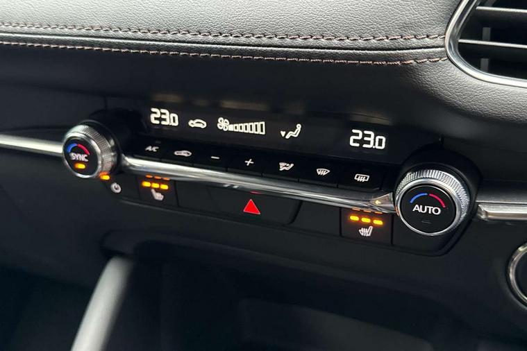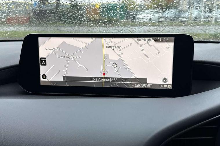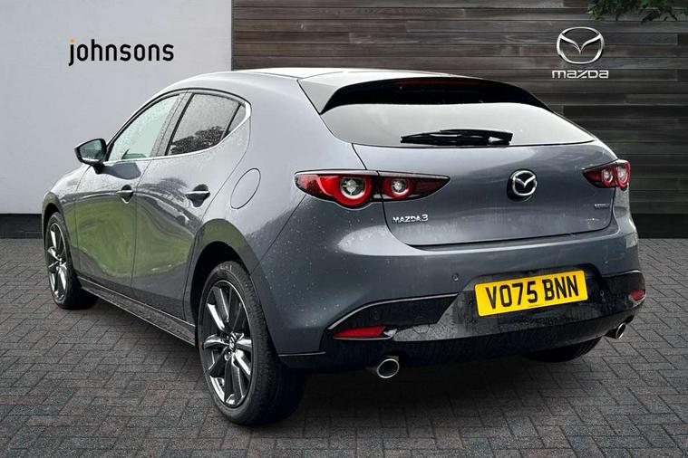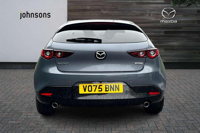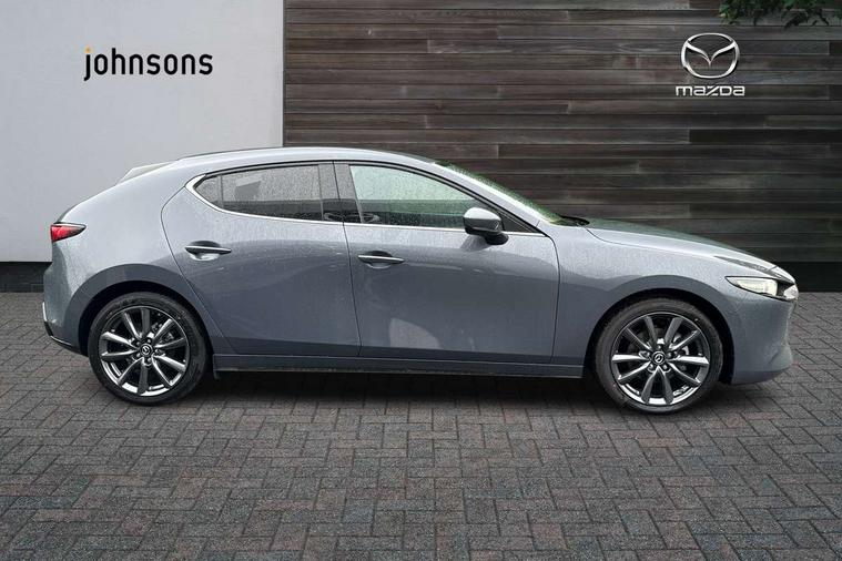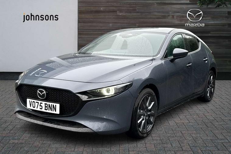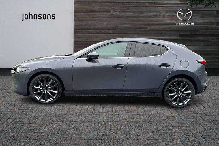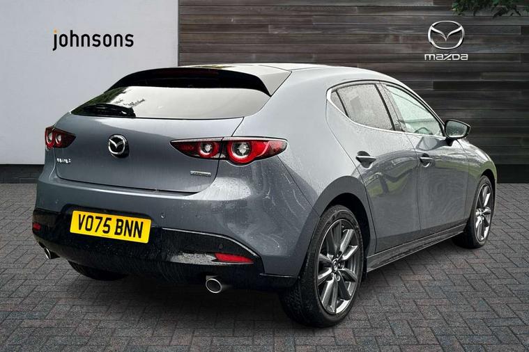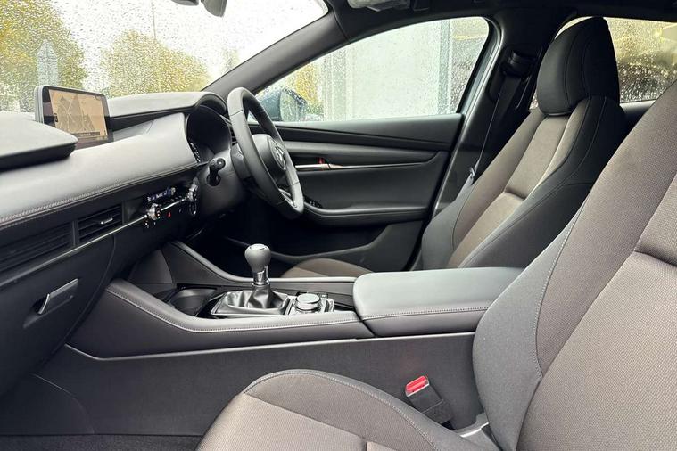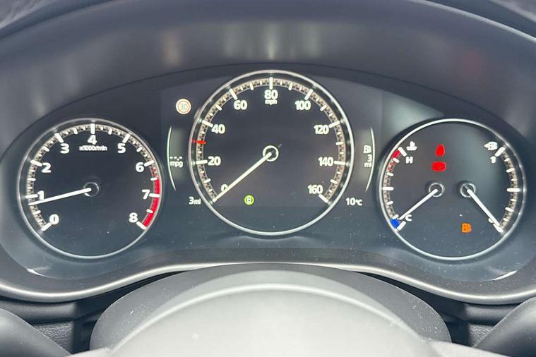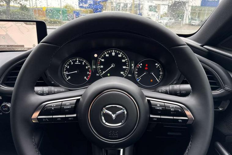 10.25" display with Mazda Connect infotainment, 7" colour TFT display, Adjustable speed limiter, Advanced E-call with GPS, Alexa in-car voice assistant, Audio transfer from bluetooth devices, Blind spot monitoring with rear cross traffic alert, Car finder, Colour active driving display inc Windscreen projected, Traffic Sign Recognition, turn-by- turn navigation and Mazda Radar Cruise Control information, Digital instrument cluster, Driver attention alert system, Emergency stop signalling system, Engine start/stop button, Front and rear parking sensor with audible and visual warning, Head up Display, Integrated bluetooth with steering wheel mounted controls, Intelligent speed assist, Lane keep assist system (LAS) with Lane departure warning system (LDWS), Mazda connected services, Mazda Navigation System with european mapping, Mazda Radar Cruise Control, Mobile App interface, Multimedia Commander, PAS, Qi wireless charging, Reversing camera, Service indicator, Tailgate, Traffic sign recognition (TSR), Trip computer, Wireless Apple CarPlay/Android Auto, Cylinder Deactivation, i-stop, 2 USB-C ports in the front, Mazda Multimedia System with AM / FM / DAB radio with 12 Speaker Bose sound system, bose centerpoint, bassmatch+audiopilot technology, Adaptive LED Headlights, Auto dimming driver's door mirrors, B-pillar garnish in piano black, Body coloured door mirrors, Coming/leaving home lighting function, Dark metallic finish signature wing, Dual chrome tailpipes tip, Dusk sensing headlights, Electric front/rear windows with one touch/auto up/down, Electrically adjustable, heated auto power folding door mirrors, Frameless auto dimming interior rear view mirror, Front body coloured bumper with black lower bezel, Front kodo turn signal, Gloss black finish front grille, Gloss black rear roof spoiler, LED auto headlight levelling, LED indicator lights, LED third brake light, Privacy glass with dark tinting on rear side windows and rear window, Rain sensing front wipers with adjustable sensitivity and speed, Rear colour coded bumper with gloss black lower moulding, Rear fog lights, Rear side wing doors, Signature LED daytime running lights, Signature LED rear combination lights, Speed adjustable rear wash wiper with intermittent wipe, 12v electrical power outlet, 3 seat bench in 2nd row, 60/40 split fold down rear seats, Chrome interior trim accents with steering wheel centre bezel, surround of engine start / stop button and glove box handle, Cloth upholstery, Dark cloth door panel inserts, Dark roof headlining, ceiling and pillars, Driver seat manual slide, recline, height and seat tilt adjust, Driver, front passenger and two rear door pockets, Driver, Front passenger and two rear grab handles with coathooks, Driver/passenger sunvisors + vanity mirrors (drivers side with ticket holder), Dual zone climate control air conditioning, Folding rear centre armrest with two cup holders, Front and rear courtesy lamps, Front armrest, Front centre storage with two cupholders, Front head restraints, Front passenger seatback pocket, Front passengers seat manual slide, recline and height adjustment, Gear shift indicator, Heated front seats with 3 stage setting, Illuminated glovebox, Interior colouration dashboard and doorcards in black with dark stitching, ISOFIX child seat anchorage points attached on outer rear seats, Leather wrapped gear shift knob, Leather wrapped steering wheel, LED interior light, LED light in luggage compartment, Power outlet in luggage compartment, Roof mounted sunglasses holder, Single front passenger seat, Three height adjustable rear head restraints, Tilt/height adjustable steering wheel, 3 point ELR front seatbelts with pretensioners, 3 rear 3 point seatbelts with ELR, Anti-lock braking system (ABS), Drivers knee airbag, DSC - Dynamic Stability Control, Dual stage driver and single stage passenger airbags, EBD - Electronic brakeforce distribution, Electronic parking brake with auto disengage function and auto hold function, Front and rear curtain airbags, Front passenger airbag cut-off switch, Front side airbags, Front smart city brake support, G-Vectoring control plus, Hill launch assist, Intelligent Traction Control system, Manual child lock in rear doors, Mild Hybrid system with regenerative braking, Seatbelt reminder audible warning for driver, passenger and rear seats, Tyre pressure monitoring system (TPMS), Auto door lock when driving, Remote central locking + deadlocks, Smart keyless entry, Thatcham accredited alarm and immobiliser, 18" Grey alloy wheels, Emergency tyre repair kit,