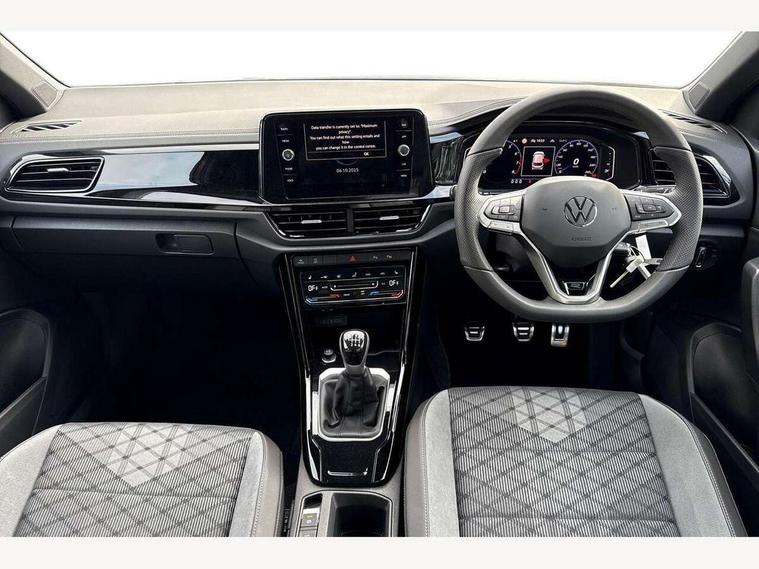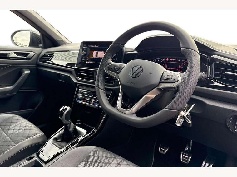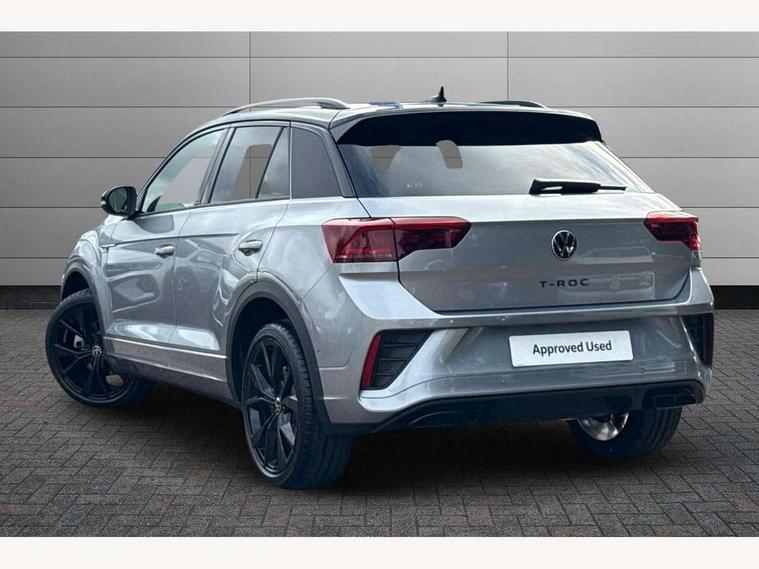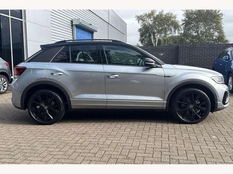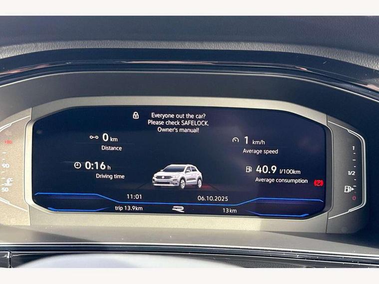 10.25" Digital cockpit pro, Advanced driver attention and drowsiness monitor, Emergency call service, Lane keeping system Lane Assist, Mobile phone interface, Modified key software - reduce switch off time for key status change to Long no motion, Online services, Park assist including front and rear parking sensors, Power assisted speed sensitive steering, Service interval indicator, Tailgate/trunk lid release from outside, Think blue trainer driver tips and journey analysis, Warning sound and light for front seatbelts unfastened, Wireless app connect, Battery regeneration during braking, Rear shock absorption chassis with increased ride height, Start/stop function with battery regeneration, DAB Digital radio, Diversity antenna for FM reception, Front and rear 6 speakers, Music playback - MP3, WMA and AAC files, Premium USB cable in choice of either Apple or Android smartphone compatibility, SD card slot, Simultaneous pairing of 2 compatible mobile devices, Title and cover art display, We Connect and We Connect Plus functionality, Auto dimming interior rear view mirror, Automatic hazard lights activation under emergency braking, Automatic headlight control with LED separate daytime running lights with coming/leaving home function, Dynamic cornering light, Electrically adjustable and heated door mirrors, Extended roof spoiler, Exterior mirrors aspherical on driver side, convex on front passenger side, External USB type C socket and charging sockets, Front windscreen wiper with intermittent wipe and 4 position delay, Heated rear window, Illuminated front grille, IQ LED matrix headlights, LED 3rd brake light, LED rear number plate lights, LED rear tail lights with dynamic turn signal, Light mode for poor weather, rain, fog or snow, Power windows with comfort operation and circuit breaker, R-Line design body coloured bumpers, Rain sensor, Rear exhaust tailpipe, Rear fog light on one side and reversing lights on both sides, Rear side wing doors, Rear wash/wipe with intermittent wipe setting, Remote electrically foldable door mirrors, puddle lights and reverse activated passenger's door mirror, 12V power socket in centre console, 3 rear head restraints, 3 seat bench in 2nd row, 4 load lashing points in luggage compartment, Air care climatronic air conditoning system with active combination filter and 2-zone temperature control, Artvelours cloth upholstery, Black roof lining, Chrome plated radiator grille inserts, air vent surrounds and light switch surrounds, Door and side trim panel with leatherette insert, Drawer under drivers seat, Driver seat height adjust, Driver's seat lumbar support, Front + rear carpet mats, Front centre armrest, Front comfort sports seats, Front cupholders x 2, Front footwell illumination, Front reading light, Front scuff plates with R Line logo, Front seat back storage pockets, Glove compartment door with light, Instrument lighting, white adjustable panel illumination, Interior ambient lighting and surround lighting, Interior light delay, Isofix child seat preparation, Leather gearshift handle, Load-through provision with cup holder when folded down ('Unsplit rear seat bench, split folding backrest, with centre armrest), Luggage compartment lighting, Non-folding front passenger seat backrest, Passenger seat height adjuster, Passenger seat lumbar support, Single front passenger seat, Stainless steel pedals, Storage compartment in left and right luggage area, Storage compartment in rear doors, Storage compartments in driver and front passenger doors, Sunvisors with illuminated vanity mirrors, Variable boot floor, height adjustable and removable, Winter pack without heated windscreen washer jets - T-Roc, 3 point height adj front seatbelts + pretensioners, 3 point seatbelts in outer rear with ECE label, ABS, Child locks on rear doors, City emergency braking and pedestrian monitoring, Driver and front passenger airbag with front passenger airbag deactivation, Driver and front passenger safety-optimised head restraints, Drivers seatbelt reminder, Electronic parking brake, Electronic Stability Control (ESC) inc EDL (Electronic Differential Lock) and ASR (Traction Control), Front and rear passengers curtain airbag system including front side airbags, Front disc brakes, Hill start assist, Predictive pedestrian protection, Rear disc brakes, Two tone horn, Tyre pressure loss indicator, Volkswagen roadside assistance, Tool kit, Trims for alloy wheels, Tyre mobility kit including compressor and sealing foam,