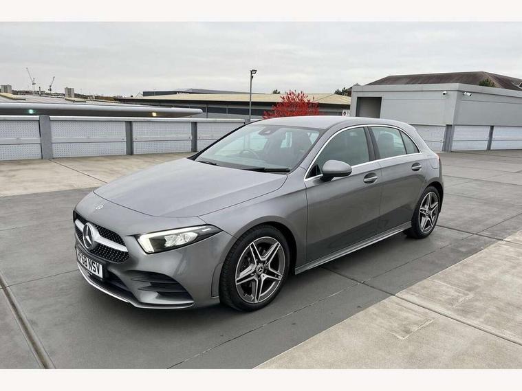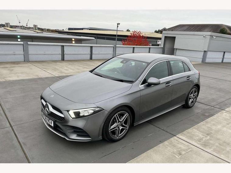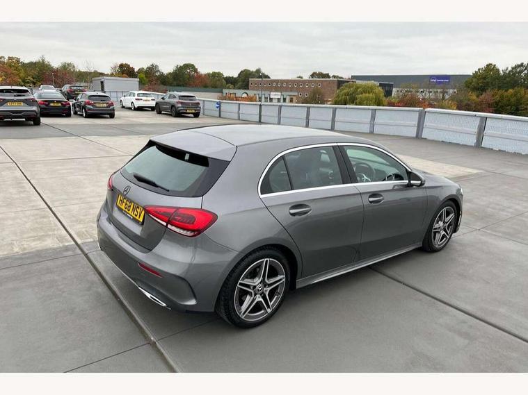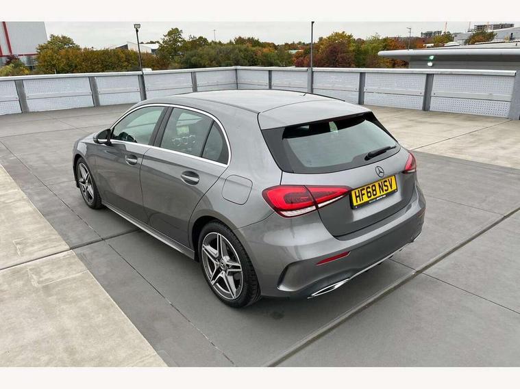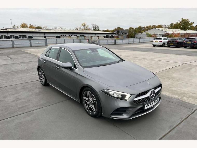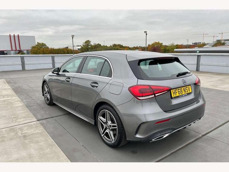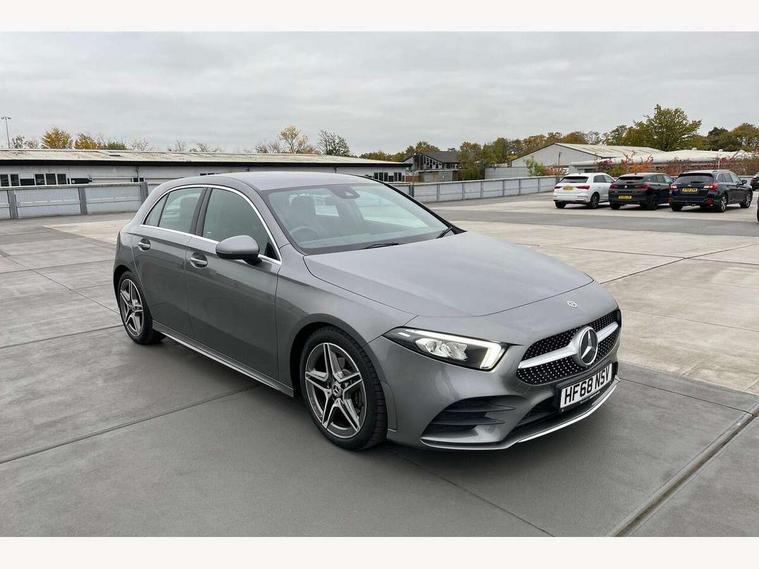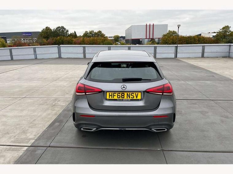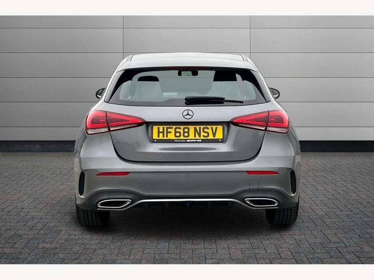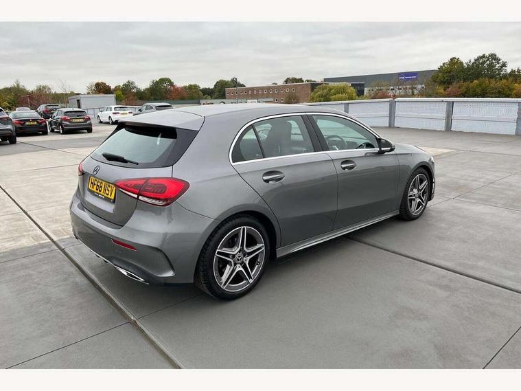 180 degree rear view camera with parking guidelines, 7" colour screen in instrument panel, 7" touchscreen media display, Active lane keep assist, Attention assist, Brake pad wear indicator warning light, Cruise control + speed limiter, Direct steering, Direction indicators with lane change function, DYNAMIC SELECT with a choice of driving modes (ECO, Comfort, Sport, Sport+ and Individual), Fluid level warning indicator for fuel, oil, coolant and washer fluid, Hard-disk navigation, Lamp failure indicator, Mercedes me connect including emergency call system, accident recovery, breakdown and maintenance management, Outside temperature gauge, Radio aerial integrated into roof spoiler, Service indicator (ASSYST), Speed sensitive power steering, Stop/start system, Trip computer, Voice activation, Lowered sports suspension, DAB Digital radio, Dual bluetooth interface, 2 USB ports (type C), MBUX multimedia system with DAB digital radio and touchpad including satellite navigation, Adaptive brake lights, AMG front, rear apron and side skirts, Body colour bumpers, Body colour door handles, Body colour side skirt, Body coloured door mirrors, Chrome beltline trim, Diamond radiator grille with chrome pins and silver louvre + chrome insert, Electric adjustable and heated door mirrors with integrated LED side indicators, Electric front windows, Electric rear windows, Exhaust system - Twin trapezoidal tailpipes in polished stainless steel, Headlamp assist automatic headlamp activation, Heated glass rear windscreen + timer control, LED high performance headlamps with integrated LED daytime running lights, LED tail lamp, LED third brake light, Rain sensor windscreen wipers, Rear fog lights, Rear wiper, 1/3 to 2/3 split folding rear seats, 12V socket, 3 Spoke flat bottom leather multi function steering wheel with perforated leather in grip area, Air vents surround and cruciform nozzle in silver chrome, AMG floor mats with red stitching, Artico man-made leather/Microfibre Dinamica upholstery with red contrast stitching, Auto Mercedes-Benz child seat recognition sensor, Black roof lining, Brushed stainless steel sports pedals with rubber studs, Controller on centre console with chrome surround, Cup holder and stowage compartment lighting, Exit lights, Front centre armrest with storage compartment, Front door sills with Mercedes Benz lettering, Front doors with ambient and signal light, Front footwell lights, Front reading lamps, Front seat backs luggage nets, Front seat cushion length adjustment, Front signal exit lamp, Front vanity lights, Gearshift paddles on steering wheel, Handle recess/closing light, Height/reach adjustable steering column, Illuminated glovebox, ISOFIX Child seat top tethers and anchor fixings, Load securing rings in luggage compartment, Luggage compartment cover, Manual height adjustable front seats, Oddments tray lighting, Rear head restraints, Rear Reading Lamps, Seat occupancy sensor for front passenger seat, Sports seats with integrated headrests, Storage compartment under load area floor, Sunvisors with illuminated vanity mirrors, Touchpad, Touchpad illumination, Twin front cupholders, Two zone thermotronic luxury automatic climate control, Seat comfort pack - A Class, 3 rear 3 point seatbelts, ABS with Brake Assist, Active bonnet, Active brake assist includes forward collision warning system with autonomous braking, Adaptive brake assist with hold function and hill start assist, Brake calipers with Mercedes-Benz lettering + perforated brake discs, Childproof locks manually operated for rear doors and electrically operated for rear power windows, Crash responsive emergency lighting, Driver and passenger head and side airbags, Drivers knee airbag, Dual stage driver/passenger airbags, Electronic parking brake, ESP curve dynamic assist, ESP with ASR, Front and rear seatbelt reminder, Tyre pressure monitoring system, Warning triangle and first aid kit, Window airbags, Alarm system/interior protection/immobiliser, Keyless Go, Remote central locking and crash sensor with emergency opening function, Chrome air vent surrounds, 18" AMG 5 twin spoke light alloy wheels in titanium grey with highsheen finish, Tirefit sealant kit,
