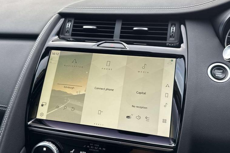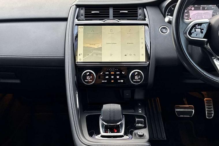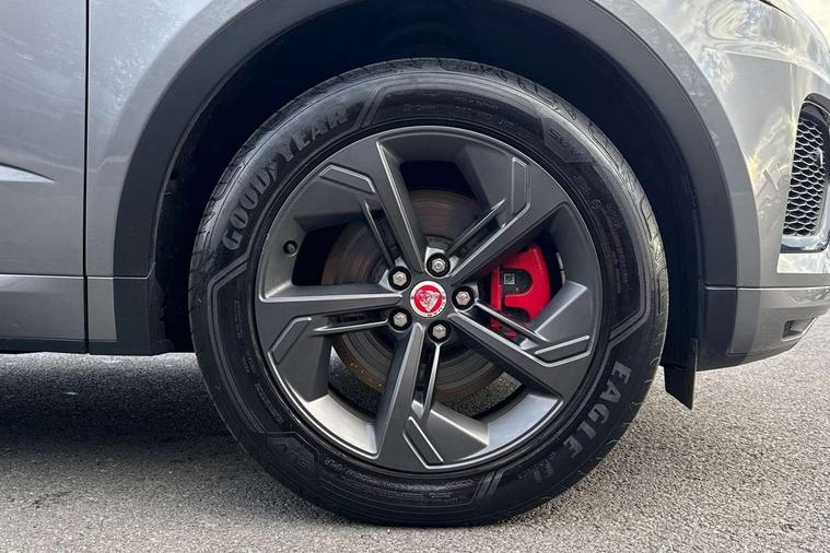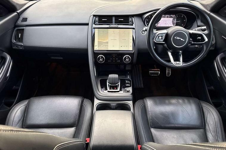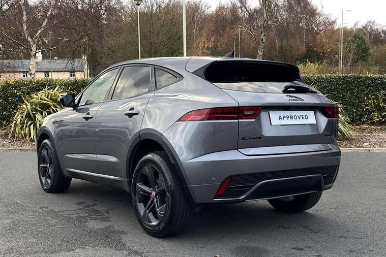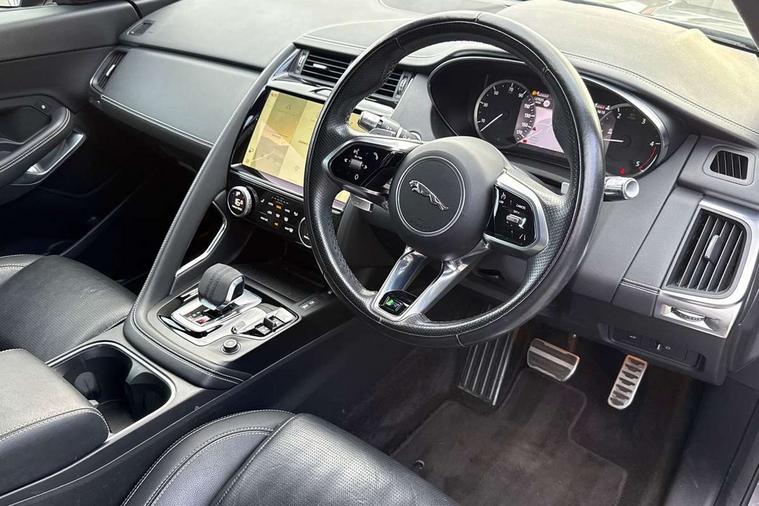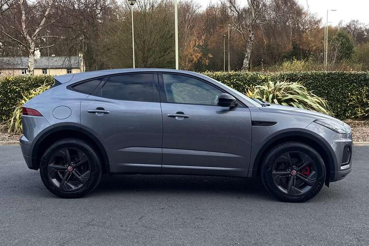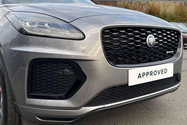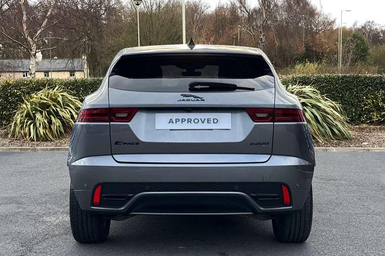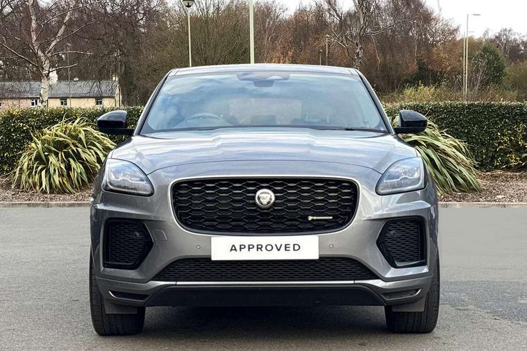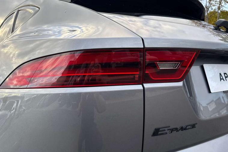 11.4" touchscreen with central ICP, 12.3" full digital instrument panel, Android Auto, Apple car play, Driver condition monitor, Eco driving style assistant, Electric power assisted steering, Front and rear parking aid, InControl remote, Jaguar drive control with adaptive surface response, Jaguar Toggle sport shift selector, Lane keep assist, Outside temperature gauge, Pivi pro connected infotainment system with smart settings and navigation pro, Push button start, Speed proportional steering, Traffic sign recognition with adaptive speed limiter, Trip computer, Voice control system, Configurable dynamics, Diesel particulate filter, Efficient Driveline, Passive suspension, AM/FM DVD MP3 radio, Bluetooth connectivity including audio streaming, DAB digital audio broadcast, Dynamic volume control, 3 flash lane change indicators, Approach Illumination, Auto high beam assist, Automatic headlights, Body coloured side sills, Centre high-mounted stop light, Electric front/rear windows with one touch/auto up/down, Embossed leaper for grained and windsor leather, Fixed panoramic glass sunroof, Heated washer jets, Heated windscreen, Jaguar script and leaper, LED tail lights, Privacy glass, R Dynamic badge, R Dynamic body colour bumpers, Rain sensor windscreen wipers, Rear fog lights, Rear wash wiper, Twin exhaust tailpipe, 3 rear head restraints, 40:20:40 rear seat fold, Bright metal pedals, Carpet mats, Centre console with armrest, Elasticated loadspace side-strap, Enhanced ambient lighting, Hooks loadspace, ISOFIX on outer rear seats, Loadspace cover, Loadspace light, Loadspace storage net, Luggage tie-downs in loadspace, Multifunction steering wheel, Overhead lighting console, Passive front head restraints, Power sockets, R-Dynamic branded leather steering wheel, Rear air vents, Rear bench seats, Satin chrome gearshift paddles, Sunvisors with illuminated vanity mirrors, Twin front cupholders, Two zone climate control, Exterior black pack - E-pace, 3x3 point rear seatbelts, ABS, All surface progress control (ASPC), Customer configurable autolock, DSC - Dynamic Stability Control, Electronic brake force distribution, Electronic parking brake, Emergency brake assist, Emergency braking, Front airbags with passenger seat occupant detector, Front and rear curtain airbags, Front and rear seatbelt reminder, Front side airbags, Hill start assist, Low friction launch, Power child locks, Red painted brake calipers, Torque vectoring brake, Tyre pressure monitoring system, Intrusion sensor and alarm, Locking wheel nuts,