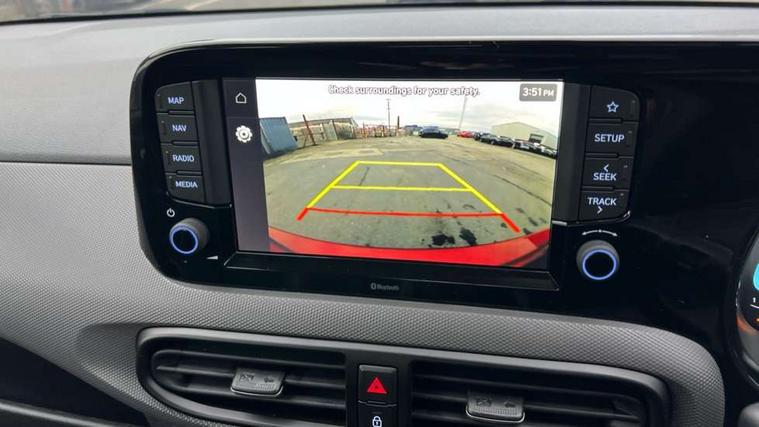 8" Touchscreen satellite navigation including mapcare and LIVE services, Apple car play/Android Auto, Bluelink mobile remote connectivity, Bluetooth connectivity with voice recognition, Cruise control, Driver attention alert system, eCall emergency call system, Forward Collision-Avoidance Assist (FCA) - Pedestrian/Cyclist, Full-width 4.2" LCD instrument cluster, Intelligent speed limit assist, Lane departure warning system with lane keep assist - LKAS, Lane follow assist, PAS, Rear parking sensors, Rear view camera with guidelines, Roadside assistance, Start/Stop function, Tailgate, Trip computer, 2 front/2 rear speakers, Front and rear USB-C ports, Front USB connection, Leading vehicle alert (LVA), Steering wheel audio, phone and cruise controls, 1 speed non intermittent rear windscreen wiper, Black finish on B pillars, Body colour door handles, Body coloured bumpers, Body coloured door mirrors, Electric front windows, Electric rear windows, Electrically adjustable and heated door mirrors, Flat metal emblem, Front grille in matte black, Front intermittent wipers, Halogen headlights, Headlights inner with Black Blade design, Heated rear window, High beam assist, Indicator light on door mirrors, LED daytime running lights, Rear roof spoiler with integrated LED brake light, Rear side wing doors, 12v power outlet - front, 3 seat bench in 2nd row, 60/40 split folding flat to floor rear seats, Auto light control, Bottle holders in front/rear doors + front centre console, Cabin and luggage compartment interior lighting, Cloth upholstery, Driver + passenger vanity mirrors, Driver's seat height adjustment, Driver/passenger sunvisors with ticket holders, Floor mats, Front door pockets, Front Head Restraints - Vertical and Horizontal Adjustment, Glove compartment, Height adjustable steering column, Isofix child seat preparation, Leather wrapped steering wheel and gear knob, Manual air conditioning, Rear door pockets, Single front passenger seat, Vertical adjustment rear head restraints, 3x3 point rear seatbelts, Airbags - front, front side and curtain airbags, Anti-lock brake system (ABS), Autonomous emergency braking (AEB) with forward collision warning system, Brake assist function, Childproof rear door locks, Electronic stability control, Front and rear seatbelt reminder, Front seatbelt pretensioners, Hill start assist control (HAC), Passenger airbag deactivate switch, Traction control, Tyre pressure monitoring system, Immobiliser, Perimeter alarm, Rear occupant alert, Remote central locking, Second remote key, Speed sensitive auto door locking, 15" Alloy wheels, Temporary mobility kit (TMK),