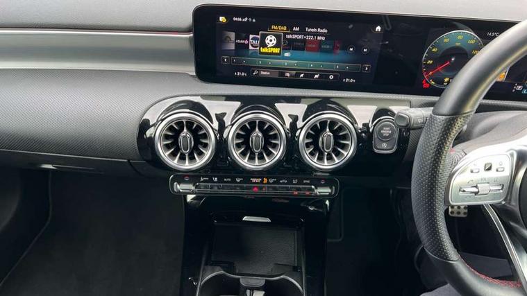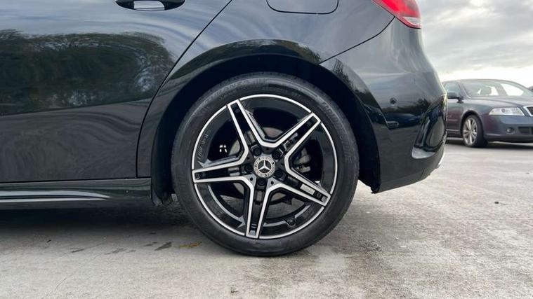 10.25" Digital instrument cluster display screen, 10.25" media display, 180 degree rear view camera with parking guidelines, Active parking assist with visual and audible warning of detected obstacles, Attention assist, Brake pad wear indicator warning light, Car wash mode, Cruise control + speed limiter, Direct steering, Dual bluetooth interfaces, DYNAMIC SELECT with a choice of driving modes (ECO, Comfort, Sport and Individual), ECO start/stop function, Fluid level warning indicator for fuel, oil, coolant and washer fluid, Hard-disk navigation, Hey Mercedes Voice activation, Lamp failure indicator, Lane keeping system, Mercedes me connect including emergency call system, accident recovery, breakdown and maintenance management, Mercedes me remote services, Outside temperature gauge, Owners manual in English, Pre-installation for private car sharing, Preinstallation for Mercedes Benz link, Service indicator (ASSYST), Smartphone integration with Apple CarPlay and Android auto, Speed limit assist, Speed sensitive power steering, Trip computer, Ultrasonic sensors positioned in the front and rear bumpers, Lowered comfort suspension, Rear axle torsion beam, 2 USB ports (type C) in rear stowage compartment and one in front of center console, 6 speakers, DAB Digital radio, MBUX multimedia system with DAB digital radio and touchpad including satellite navigation, Mercedes-Benz sound system - 100W, 4 Electric Front and Rear windows, Adaptive brake lights, AMG bodystyling - Front apron with splitter in chrome, rear apron with chrome trim and chrome visible trim elements in tailpipe, Automatic headlights, Black weather strip, Body colour bumpers, Body colour door handles with chrome inserts, Body colour side skirt, Electric adjustable and heated door mirrors with integrated LED side indicators, Exclusive diamond radiator grille, Exhaust system - Twin visible tailpipes in polished stainless steel, Headlamp assist automatic headlamp activation, Heated glass rear windscreen + timer control, LED High level third brake light, LED high performance headlamps with integrated LED daytime running lights, LED tail lamp, Privacy glass, Radio aerial, Rain sensing windscreen wipers with two sensitivity settings, Rear fog lights, Rear side wing doors, Rear wiper, 3 seat bench in 2nd row, 3 Spoke flat bottom leather multi function steering wheel with perforated leather in grip area, 40:20:40 split folding rear seats, Artico man-made leather/Microfibre Dinamica upholstery with red contrast stitching, Auto Mercedes-Benz child seat recognition sensor, Black air vents with surround in silver chrome, Black roof lining, Brushed stainless steel sports pedals with rubber studs, Controller on centre console with chrome surround, Floor mats with AMG lettering, Front centre armrest with storage compartment, Front seat backs luggage nets, Galvanished gear shift paddles on steering wheel, Heated front seats, Height/reach adjustable steering column, Illuminated Mercedes Benz lettering front door sills with changeable cover, Interior lighting - 64 colour Ambient lighting, Interior mirror with reading lamps in black and frameless, Manual height adjustable front seats, Rear head restraints, Seat occupancy sensor for front passenger seat, Single front passenger seat, Sports seats with integrated headrests, Stowage compartment in centre console with retractable cover, Sunvisors with illuminated vanity mirrors, Touchpad on center console, Twin front cupholders, Two zone thermotronic luxury automatic climate control, Light and sight pack - A Class, Mirror package - A Class, Night pack - A Class Saloon/Hatchback, Seat comfort pack - A Class, 3 rear 3 point seatbelts, ABS with Brake Assist, Active bonnet, Active brake assist includes forward collision warning system with autonomous braking, Adaptive brake assist with hold function and hill start assist, Black seatbelts, Childproof locks manually operated for rear doors and electrically operated for rear power windows, Crash responsive emergency lighting, Driver and passenger head and side airbags, Drivers knee airbag, Dual stage driver/passenger airbags, Electronic parking brake, ESP curve dynamic assist, ESP with ASR, Front and rear seatbelt reminder, Front brake callipers with Mercedes Benz lettering, ISOFIX and top tether child seat fixing points in two outer rear seats, Tyre pressure monitoring system, Warning triangle and first aid kit, Window airbags, Alarm system/interior protection/immobiliser, Keyless Go, Remote central locking and crash sensor with emergency opening function, Urban guard vehicle protection system with immobiliser and interior protection, Matrix look light longitudinal grain aluminium trim element, 18" AMG 5 twin spoke light alloy wheels aerodynamically optimised painted in black with highsheen finish, Summer tyres, Tirefit sealant kit,