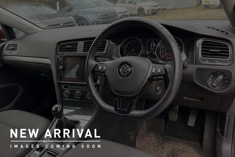 'Lights On' Reminder warning buzzer, ACC - Adaptive cruise control with front assist, forward collision warning, distance monitoring, city emergency brake and speed limiter, Bluetooth telephone and audio connection for compatible devices, Brake pad wear indicator warning light, Driver alert system, Driver profile selection, Driving Mode Selection with four preset modes - Eco, normal, sport or individual modes, Instrument cluster in white, Multifunction computer with visual gear change recommendation for fuel consumption, Power assisted speed sensitive electro-mechanical steering, Push tank flap, Speed limit display, Speedo, rev counter, electronic odometer, trip, service interval display, exterior temperature and fuel gauge, Stop/start system, Warning buzzer and light for front seatbelts unfastened, Battery regeneration during braking, XDS electronic differential lock, Composition media system, DAB Digital radio receiver, MP3/WMA compatability, Multi device interface (MDI) with USB connection, Personalisation 1.1 profile for media, Premium USB cable in choice of either Apple or Android smartphone compatibility, SD card slot, SMS Functionality, USB and SD card connectivity, Black front air intake and radiator grille with chrome insert, Black rear diffuser, Body colour bumpers, Body colour door handles, Body colour door mirrors with integrated indicators, Dusk sensor + automatic driving lights, Electric front windows, Electric rear windows, Electrically adjustable and heated door mirrors, Fully galvanised body, Heated rear windscreen, Hidden exhaust pipe, High level 3rd brake light incorporating LED Technology, LED daytime running lights, LED front fog lights with static cornering light function, Rear fog lamp, Rear tinted glass 65% light absorbing from B pillar backwards, Rear window aerial, Rear window wash/wipe with intermittent wipe, Reflectors in all doors, Tailgate with integrated rear roof spoiler, Windscreen wipers/ intermittent wipe + 4 position delay, 12V socket in luggage compartment, 3 rear headrests, 4 load lashing points in luggage compartment, 60/40 split folding rear seat backrest, Auto fold down lever in rear seat backrest, Bag hook in luggage compartment x 2, Cooled glovebox, Cupholder cover, Dust/pollen filter, Front and rear reading lights incorporating LED technology, Front centre armrest with storage compartment and two rear air vents, Front seat back storage pockets, Grab handles front x 2, rear x 2 with integrated coat hooks, Height and reach adjustable steering wheel, Illuminated vanity mirrors, Instrument lighting white adjustable panel illumination, Interior light delay, Isofix preparation for 2 rear child seats, Load through provision with rear centre armrest and cupholders x2, Luggage compartment lighting, Overhead storage box, Passenger underseat drawer, Pearl grey headlining, Storage box in luggage compartment, Storage compartment in roof console with cover, Storage compartments in centre console, Storage compartments in front doors, Storage compartments in rear doors, Stowable luggage compartment cover, Sun visors, Variable boot floor, height adjustable and removable, Convenience Pack - Golf, Light and Sight pack - Golf, Mirror pack - Golf, 3 rear three point seatbelts, Airbags - Driver's and front passenger's, curtain airbag, Driver's knee, front side impact and passenger's airbag deactivation switch, Anti-lock Braking System (ABS) with Hydraulic Brake Assist (HBA), Automatic post collision braking system, Child locks on rear doors, Driver/Passenger optimised head restraints, Electronic parking brake with auto hold, Electronic stability control (ESC) including Electronic differential lock (EDL) and ASR (Traction control) with deactivation via infotainment system, Pre crash preventive occupant protection, Three point height adjustable front seatbelts with tensioners, Tyre pressure loss indicator, Alarm with interior protection and deactivation via infotainment system, Electronic engine immobiliser, Remote central locking with 2 remote folding keys, Brushed dark silver decorative inserts in dash and door panels, Chrome plated air vent surround, Chrome plated electric mirror adjustment light switch surround, Polar night black centre console, Steel space saver spare wheel,