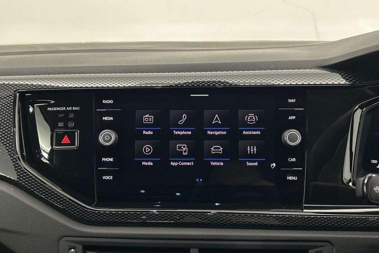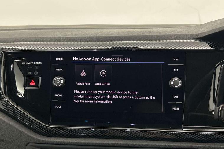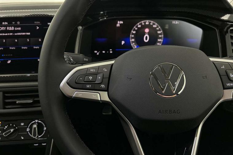8" Digital cockpit basic display, Adaptive cruise control, Advanced driver attention and drowsiness monitor, Dynamic road sign display, e-Call (emergency call), Power Steering, Rear view camera, Travel assist including emergency assist, Washer fluid level indicator, Wireless Charging including Bluetooth, Start-stop system with battery regeneration (recuperation - energy recovery during braking), Digital radio reception (DAB+), WeConnect plus, Ambient lighting with logo projection, Aspherical driver's exterior mirror, Body coloured bumpers, Body coloured exterior mirror housings and door handles, Electric windows, External USB type C socket and charging sockets, Heat insulating glass windscreen, LED rear combination lamp, LED third brake light, Left convex exterior mirror, Power folding adjustable/heated exterior mirrors and front passenger exterior mirror lowering function, Rear fog light on one side, reversing light on both sides, Rear side wing doors, Rear wash/wipe with intermittent wipe setting, Side windows in heat-insulating glass, from B-pillar and rear window dark tinted, 'Slash/ Austin' Cloth upholstery, 12V socket in centre console, 2 front reading lights, 3 rear head restraints, 3 seat bench in 2nd row, Black carpets, Ceramique headliner, Child seat anchor for child seat system i-Size, 2x top tether and child seat anchor in front on front passenger side, Door and side trim panels in titan black, Driver and front passenger seat height adjustment, Front centre armrest, Handbrake lever handle in leather, Height and reach adjustable steering wheel, Leather trimmed gear knob, Leather wrapped multifunction steering wheel with paddle shift, Luggage compartment floor, Luggage compartment light, Lumbar support for driver's and front passengers seat, Seat covers in titanium black, Single front passenger seat, Split folding backrest with centre armrest and unsplit rear seat bench, Storage compartment under front seats, Sun visors with illuminated vanity mirrors, Titanium black instrument panel, Chrome Package - Taigo, Drivers assistance package - Taigo, Light and sight pack - Taigo, 2 x 3-point seatbelts/outer rear seats with ECE label, 3-point seat belts in front with pretensioner and height adjustment, 3-point seatbelt for centre rear seat, Driver and front passenger airbag with front passenger airbag deactivation, Driver and front passenger safety-optimised head restraints, Electronic stability control, Extended and predictive pedestrian/ cyclist protection, Front and rear disc brakes, Front curtain and side airbags with center airbag, Hill start assist, Manual rear child locks, Single tone horn, Tyre pressure loss indicator, Anti-theft alarm system with interior monitoring, backup horn, and towing protection, Keyless locking and starting system keyless access with safelock, Black (slush) Dashboard, Lava stone black gloss/matt decorative inserts in dash and front door panels, Low rolling resistance tyres,