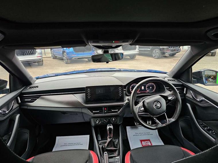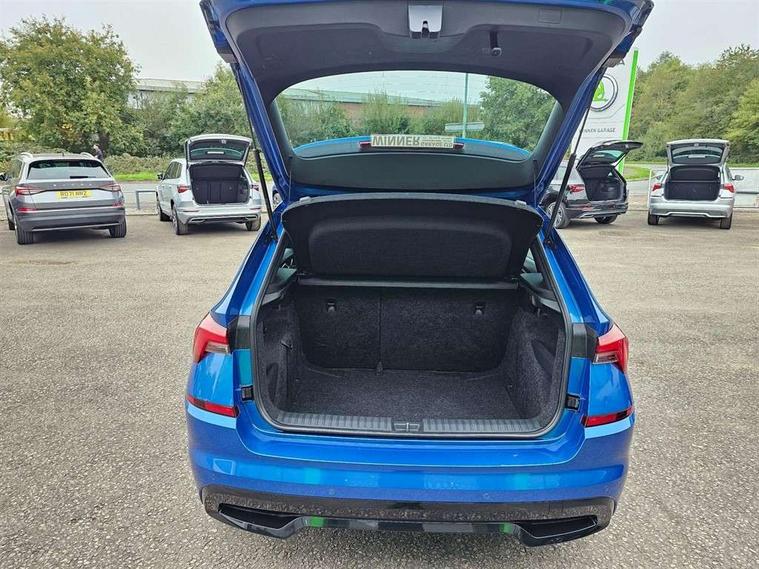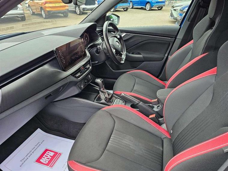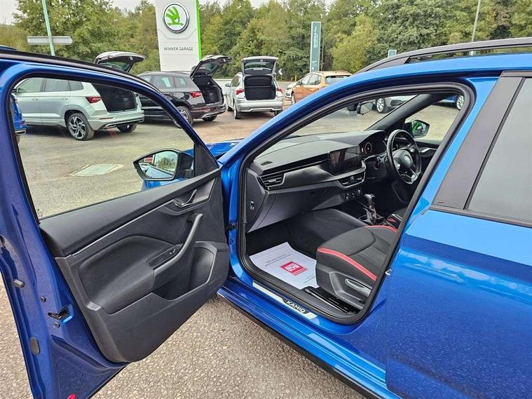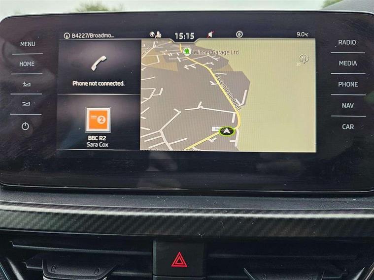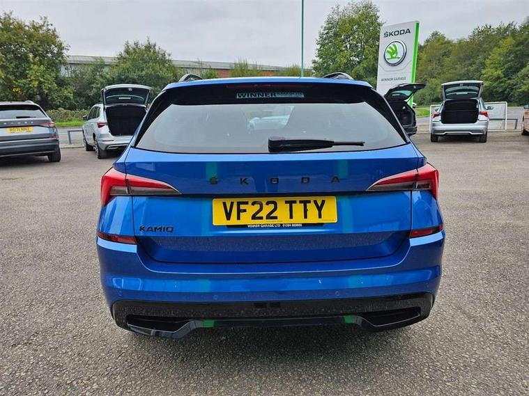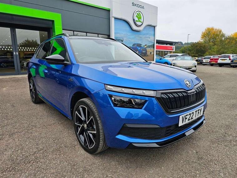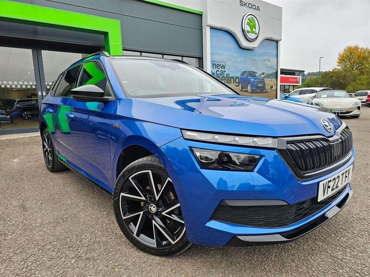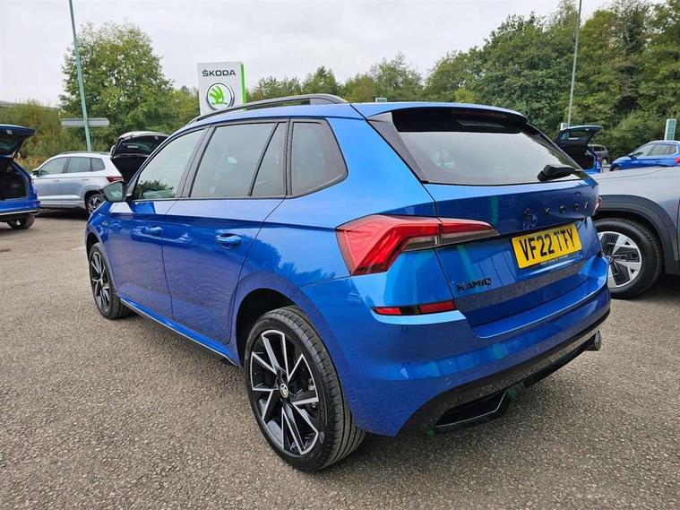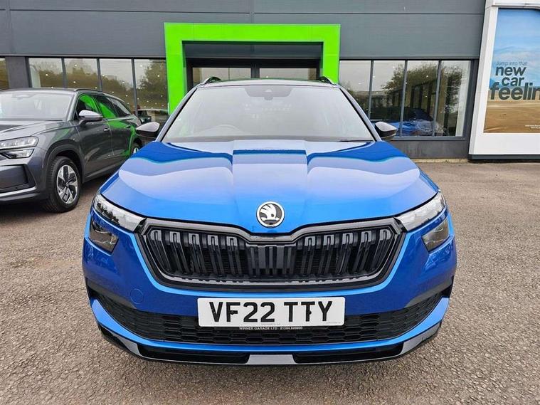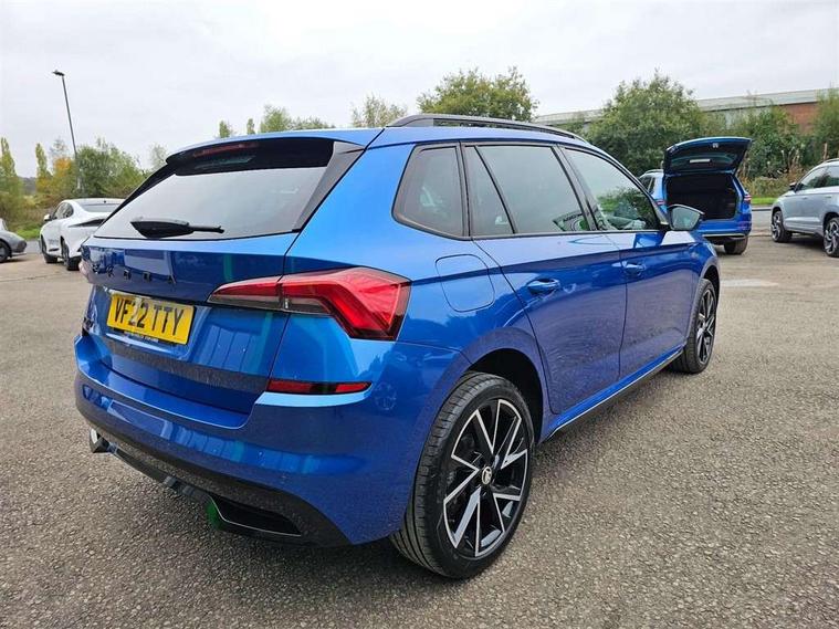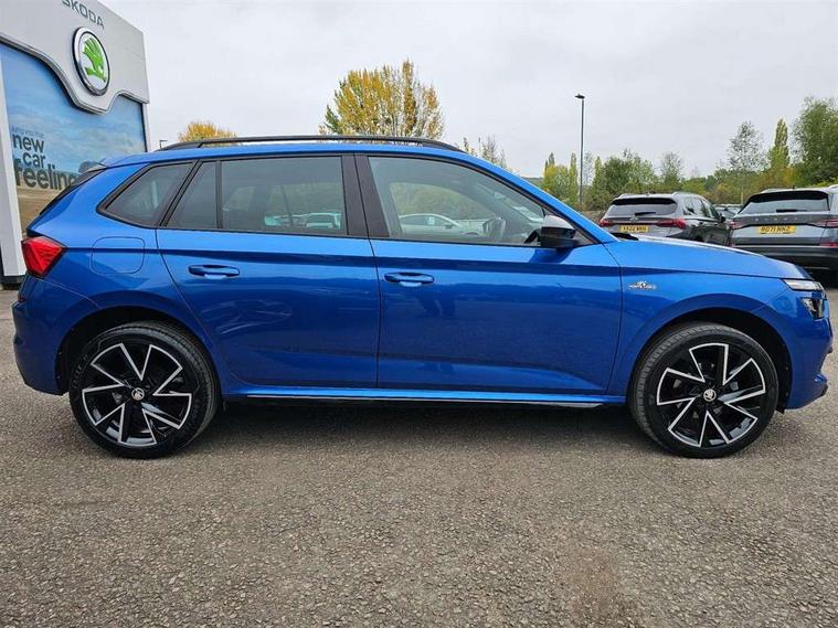 Amundsen satellite navigation with 9.2" touchscreen display, voice control, virtual cockpit and web radio, Bluetooth system, E-call, Front assist system, Gesture control, PAS, Service indicator, Speed limiter, Virtual cockpit with 10.25" display, Wireless SmartLink for apple car play, android auto and mirrorlink, 8 Speakers, Auxiliary input socket, DAB Digital radio, Black door mirrors, Black radiator grille, Black rear diffuser, Body colour bumpers, Body colour door handles, Body colour roof spoiler, Boot lettering in black, Chrome grille surround, Dimming rear view mirror with black surround, Electrically adjustable and heated door mirrors, Fixed panoramic sunroof with black roof rails, Front and rear electric windows, Front sport bumper, Full LED headlights with adaptive front light system and front cornering fog lights, Headlight range control, Heated rear window, KAMIQ Door sills, LED daytime running lights, LED rear lights - low functionality, Light sensors, Monte carlo plaque, Privacy glass, Rear fog lights, Rear side wing doors, Rear wiper, 12V Accessory socket in centre console, 3 seat bench in 2nd row, Aluminium pedals, Black ceiling for black/beige interior, Chrome inner door handles, Cloth upholstery, Front head restraints, Glove compartment with illumination, Ice scraper, Isofix child seat fittings on outer rear seats, ISOFIX on front passenger seat, Leather gear lever, Manual lumbar support for front seats, Rake/reach adjustable steering wheel, Reading lights, Single front passenger seat, Sports seats, Sun visors with illumination on front passenger, Textile floor mats, Third rear headrest, Top tether for front passenger seat, Umbrella in driver's door, 3x3 point rear seatbelts, Airbags - driver and front passenger, ESP, Front passenger airbag deactivation switch, Front side airbags with curtain airbags, Hill hold control, Manual parking brake, Manual rear child locks, One tone horn, Rear disc brakes, Seatbelt reminder for driver an co-driver, Traction control, Tyre pressure monitor, Anti-theft alarm system with interior monitoring, backup horn, towing protection and remote central locking with SAFE system, Anti-theft wheel bolts, Electronic engine immobilizer, Chrome air vent surrounds, 18" Vega alloy wheels in black,