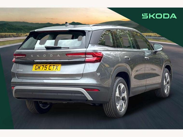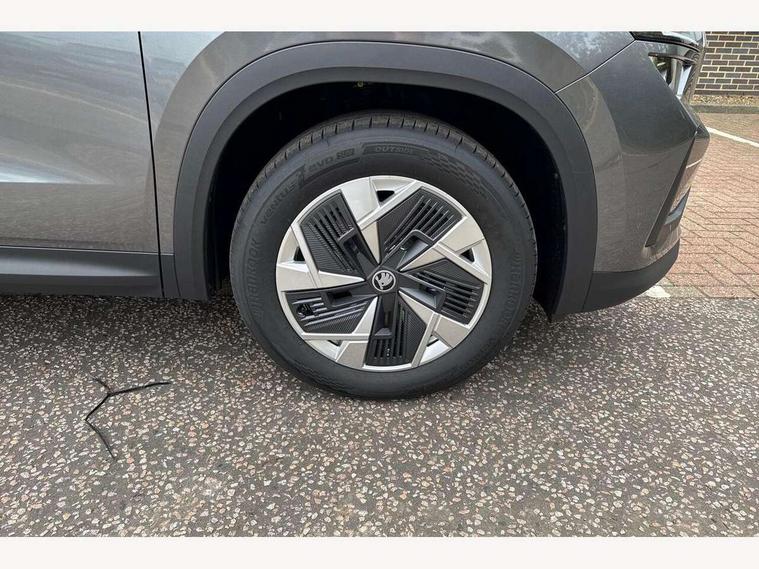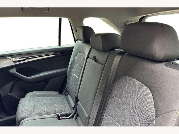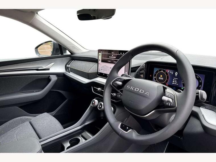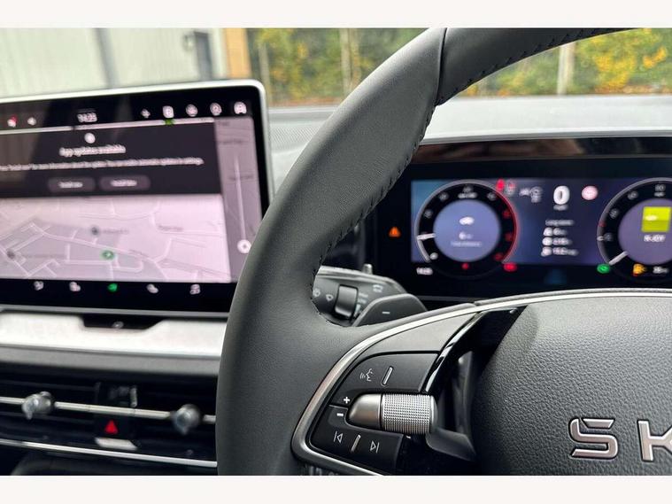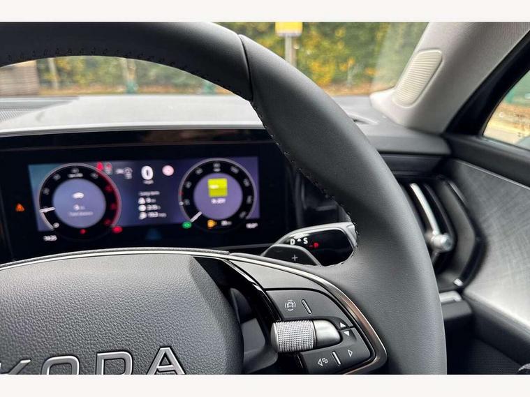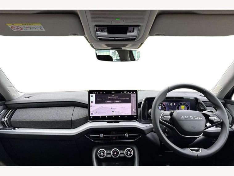 13" satellite navigation touchscreen display, Blind spot detection with door exit warning, Bluetooth system, ChatGPT functionality, Driver alert - Fatigue and drowsiness monitor, Dry display cleaner, Emergency call, Front and rear parking sensors, Front cross traffic assist, Lane assist, PAS, Rear traffic assist, Rear view camera, Tailgate unlocking from outside, Traffic sign recognition, USB C Port x 2 in front centre console, Virtual Cockpit - 10.25" digital display, Voice control system, Wireless charging for two smartphones (15W) with cooling function, Wireless SmartLink for Apple CarPlay and Android Auto, Stop/start function, 2x USB-C in the rear, 8 Speakers, DAB Digital radio, Aero front windscreen wipers with intermittent function, All weather light, Auto dimming rear view mirror, Black wheel arch surrounds, Body colour bumpers, Body colour door mirrors and handles, Cornering light and poor weather light, Electric folding /adjustable/separted heated/folding door mirrors, auto dimming with boarding sports and memory function, Electric front and rear windows, Exterior black decorative trims, Heat insulating glass in windshield, Heated rear window, Ice scraper in fuel tank cap, Invisible tailpipe, LED daytime running lights, LED front fog lamps, LED Headlights, LED rear fog light, LED rear lights, LED third brake light in rear spoiler, Light assistant with automatic headlight control and coming home feature, Logo projection in door mirrors, Rear roof spoiler, Rear side wing doors, Rear window wiper, Safety reflectors on front and rear doors, Unique dark chrome design logo on alloy wheels, Window control switches with black trim, Windscreen wipers with rain sensor, Without engine designation, 1.5l bottle holder points in all door, 1x centre rear reading light, 2 seat bench in 3rd row, 3 configurable smart dials with 32mm coloured display, 3 seat bench in 2nd row, 4 foldable roof handles with rear coat hooks, Ambient interior lighting - Dashboard, front-door stowage compartments, front and rear door panels and footwell lighting, Automatic gear selector on steering column, Chrome interior door handles, Driver/front passenger reading lights, Fabric headlining, Fixed bench 40:60:40 split folding backrests, Front and rear floor mats, Front centre armrest with jumbo box storage compartment, cup holder and 12V socket, Height adjustable front headrests, Isofix child seat fittings in outer middle row rear seats and front passenger with top tether, Manual height adjustment for front passenger seats and thigh support extender, Manual lumbar support for front passenger seat, Manually adjustable steering column, Pollen filter, Rear centre armrest with cupholders, Rear seat boot backrest release, Single front passenger seat, Skoda lettering on steering wheel, Storage pocket including mobile phone pockets on the backs of the front seats, Sunvisors with illuminated vanity mirrors, Three rear height adjustable headrests, Ticket holder on A Pillar, Tri zone climate control, Umbrella in door panel x1 made from sustainable materials, Upper and lower glovebox with card holder and coin compartment, USB C port by rear view mirror for charging only (15W), Variable boot floor, Auto door release and activation of warning lights in the event of an accident, Driver and front passenger airbag with knee airbag and front passenger airbag deactivation, Electric child locks, Electronic parking brake, ESC (incl. ABS+EMD+MSR+ASR+EDL+HBA+DSR+RBS+ESBS+MCB+TSA+XDS), Front assist with braking reaction to vehicles, pedestrians and cyclists, Front disc brakes, Fuel cut off safety device, Height adjustable front 3 point seatbelts + pretensioners, Hill hold assist, Junction assist with automatic emergency braking, Rear disc brakes, Safety vest holder in door, Seat belt reminder for all seats, Three point rear seat belts, Two tone horn, Tyre pressure monitor, Alarm with interior monitoring and tilt sensor with safe function, Anti-theft wheel bolts, Immobiliser, Remote central locking with 2 keys, Breakdown kit, Tool kit,