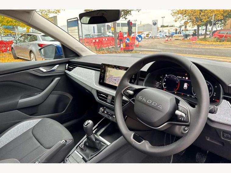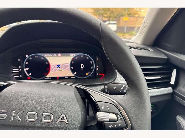 Advanced driver attention and drowsiness monitor, Bluetooth, e-Call (emergency call), Front assist system, PAS, Rear parking sensors, Rear view camera, Speed limiter, Tailgate, Traffic sign recognition, Virtual Cockpit - 10.25" digital display, Wireless smartlink, 4 USB C ports, 8 Speakers, 9.2" Skoda navigation display, DAB radio, Auto dimming rear view mirror, Automatic headlight control with manual coming and leaving home feature, Black window frames, Body colour bumpers, Body colour door mirrors and handles, Chrome moulding around grille, Front and rear electric windows, Full LED headlights, Heated rear window, LED 3rd brake light, LED daytime running lights, LED front turning lights, LED high beam, LED low beam, Rear LED fog light, Rear side wing doors, Rear wiper, Tinted windows, Unique dark chrome design logo on alloy wheels, 12V socket in luggage compartment, 3 seat bench in 2nd row, Black / Grey armrest stitching, Black hotstamping, Cargo elements, Chrome inner door handles, Door inserts in satin black, Driver and passenger sun visors with vanity mirror, Dual zone climate control, Front and rear roof lights, Front centre armrest, Front head restraints, Glasses storage in roof liner, Height adjustable driver seat, Height adjustable passenger seat, Ice scraper, Illuminated glove compartment, Inner circulation control with pollen filter, ISOFIX for front passenger seat, Isofix preparation for back seats, Leather gearknob and handbrake lever, Loft cloth upholstery, Luggage net under rear parcel shelf, Manual lumbar support for front seats, Net package and top tether hooks in boot space, Pocket on the back of both front seats, incl. mobile phone pockets, Single front passenger seat, Skoda lettering on steering wheel, Textile floor mats, Third rear headrest, Ticket holder, Top tether for front passenger seat, Umbrella in driver's door, 3x3 point rear seatbelts, ABS, Child locks, Curtain airbags and front side airbags, Disc brakes, Driver and front passenger airbags, ESP, Hill hold control, Manual leather parking brake, One tone horn, Passenger airbag switch off function, Seatbelt reminder for driver and front passenger, Tyre pressure monitoring system, Anti theft alarm system with interior monitoring, backup horn and towing protection, Anti-theft wheel bolts, Remote central locking with 2 remote folding keys, SAFE function for remote central locking, Decord pad, door inserts Kota uni,