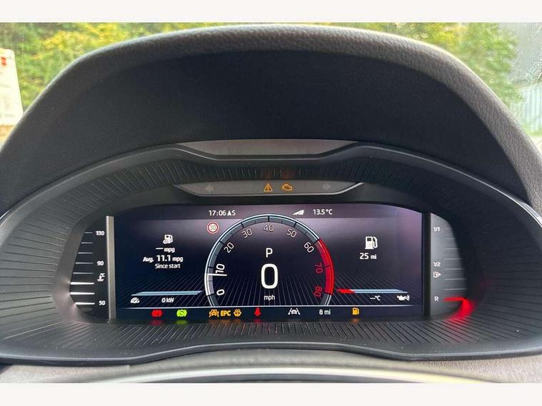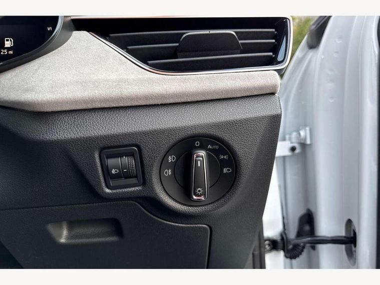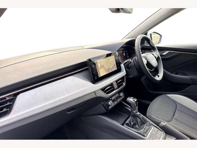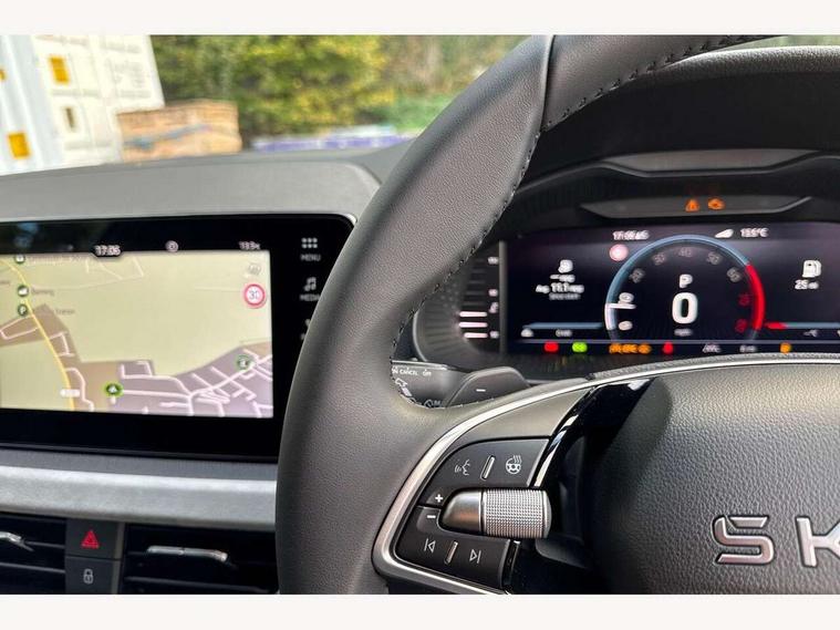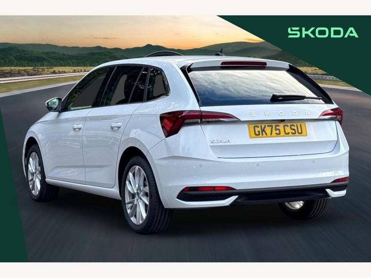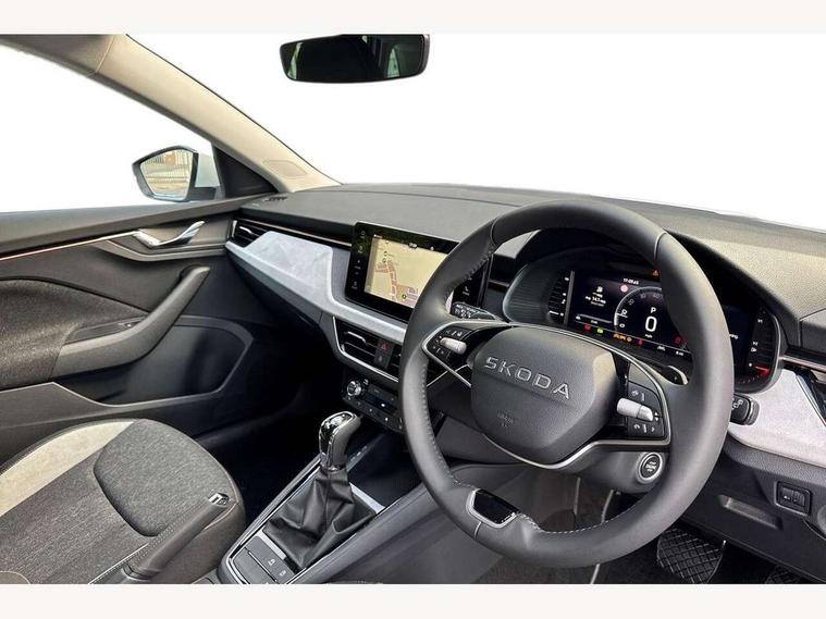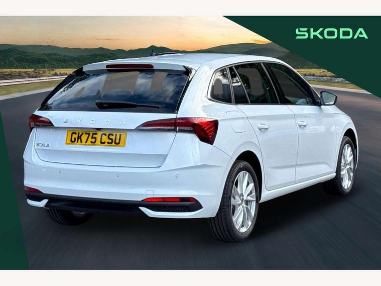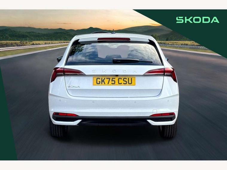 Advanced driver attention and drowsiness monitor, Bluetooth, e-Call (emergency call), Front assist system, PAS, Rear parking sensors, Rear view camera, Speed limiter, Tailgate, Traffic sign recognition, Virtual Cockpit - 10.25" digital display, Voice control system, Wireless smartlink, 4 USB C ports, 8 Speakers, 9.2" Skoda navigation display, DAB radio, Auto dimming rear view mirror, Automatic headlight control with manual coming and leaving home feature, Automatic intermittent wipers, Body colour bumpers, Body colour door mirrors and handles, Chrome moulding around grille, Chrome window frames, Front and rear electric windows, Heated rear window, LED 3rd brake light, LED daytime running lights, LED high beam, LED low beam, Light sensors, Privacy glass, Rear LED fog light, Rear side wing doors, Rear wiper, Tinted windows, Unique dark chrome design logo on alloy wheels, 12V socket in luggage compartment, 3 seat bench in 2nd row, Ambient lighting in white/red, Black / Copper armrest stitching, Cargo elements, Chrome inner door handles, Copper hotstamping, Door inserts in accent black, Driver and passenger sun visors with vanity mirror, Dual zone climate control, Front and rear roof lights, Front centre armrest, Front head restraints, Glasses storage in roof liner, Height adjustable driver seat, Height adjustable passenger seat, Ice scraper, Illuminated glove compartment, Inner circulation control with pollen filter, ISOFIX for front passenger seat, Isofix preparation for back seats, Leather gearknob and handbrake lever, Lodge cloth upholstery, Luggage net under rear parcel shelf, Manual lumbar support for front seats, Net package and top tether hooks in boot space, Pocket on the back of both front seats, incl. mobile phone pockets, Rear centre armrest, Single front passenger seat, Skoda lettering on steering wheel, Textile floor mats, Third rear headrest, Ticket holder, Top tether for front passenger seat, Umbrella in driver's door, Convenience pack without rear camera - Scala, 3x3 point rear seatbelts, ABS, Child locks, Curtain airbags and front side airbags, Disc brakes, Driver and front passenger airbags, ESP, Hill hold control, Manual leather parking brake, One tone horn, Passenger airbag switch off function, Seatbelt reminder for driver and front passenger, Tyre pressure monitoring system, Anti theft alarm system with interior monitoring, backup horn and towing protection, Anti-theft wheel bolts, Remote central locking with 2 remote folding keys, SAFE function for remote central locking, Decorative inserts,