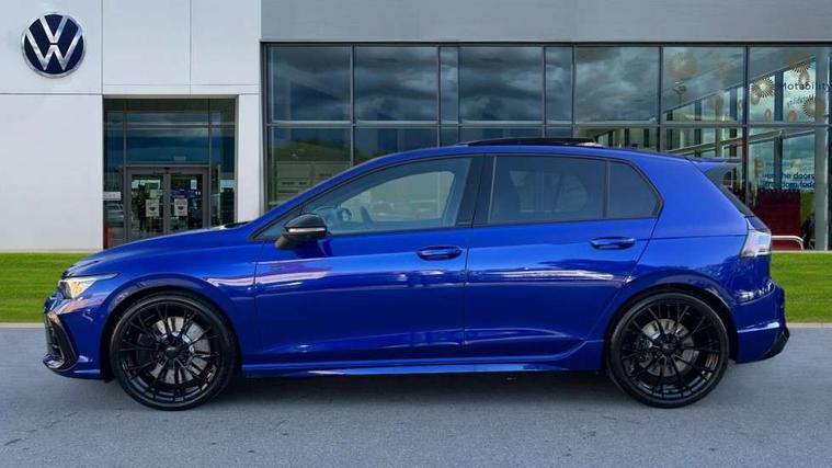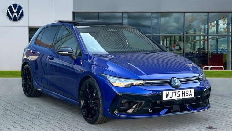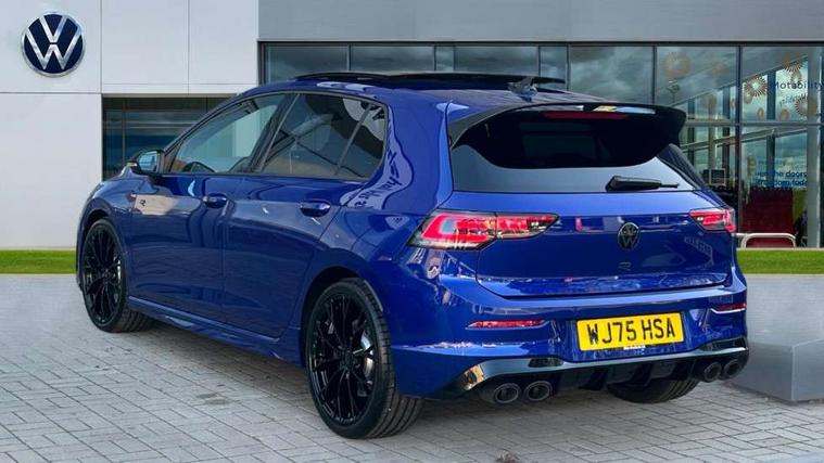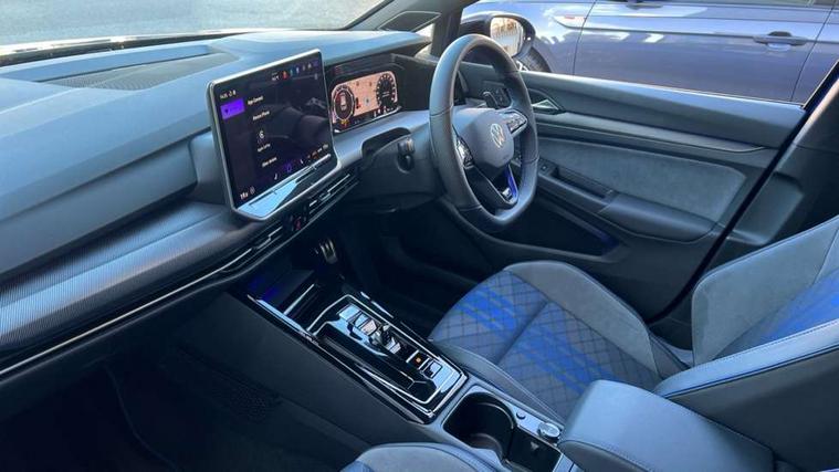 Activated carbon canister, Adaptive cruise control (ACC), Advanced driver attention and drowsiness monitor, Dynamic road sign display, E-Sim card for online connectivity, eCall emergency call system, Electronic maximum speed limit increased to 270 km/h, includes driving Modes 'drift' and 'special', larger roof spolier and GPS laptimer + G-Meter, Multi-color Digital cockpit pro, selection of different info profile possible, Multifunction front facing camera for distance control, Navigation system, Oncoming vehicle braking when turning including swerve support, Side assist blind spot lane change system, rear traffic alert and exit warning system, Speed limiter, Speedo, rev counter, electronic odometer, trip, service interval display, exterior temperature and fuel gauge, Traffic jam assist, Voice enhancer and voice control, Warning signal and warning light for front and rear seatbelts not fastened, We connect plus preparation, We connect preparation, Wireless app connect, All wheel drive - 4Motion, Petrol Particulate Filter, Start-stop system with battery regeneration (recuperation - energy recovery during braking), XDS electronic differential lock for improved traction and handling, 2 USB C ports in front, 2 USB charging sockets on the centre console in the rear charging capacity upto 45W, Digital radio reception (DAB), Diversity antenna for FM reception, Gaming platform via car app, Infotainment system with 12.9" display, Mobile phone interface with inductive charging feature, 3rd brake light, Auto dimming rear view mirror, Automatic headlamp activation with Coming home and Leaving home feature, Black badge on B-pillar, Black mirror caps, Black strips on radiator grille and headlights, Body colour door handles, Darkened headlights, Darkened R Logos and VW logos in front, rear and on fender, Exterior mirrors convex on the left and aspherical on the right, Front and rear electric windows, Front fog lamps and cornering light, Heat insulating windshield made of laminated glass, LED matrix headlights with ambient light V2, advanced high beam, dynamic range contol with cornering, LED rear lamp with indicator, poor weather, LED separate daytime running light, R name plate, Rain sensor, Rear fog light on one side and reversing lights on both sides, Rear side wing doors, Rear tinted glass 65% light absorbing from B pillar backwards, Rear windscreen washer and wiper with interval delay, Remote electrically foldable door mirrors, puddle lights and reverse activated passenger's door mirror, Welcome light with surround lighting, 12V socket in front centre console, 12V socket in luggage compartment, 3 rear head restraints, 3 seat bench in 2nd row, 30 colour ambient lighting, illuminated center console storage compartment in front, Air care climatronic 3 Zone automatic climate control with rear air conditioning control panel, Aluminium gearshift handle, Brushed stainless steel pedals, Chrome plated radiator grille inserts, air vent surrounds and light switch surrounds, Entry lights, Front + rear black carpet mats, Front centre armrest, Integrated front head restraints, ISOFIX anchors for child seats on outer rear bench seats and on front passanger seat compatible for i-Size, Luggage compartment lighting, Rear cupholder and loadthough, Single front passenger seat, Soul black instrument panel, Soul black roof lining, Split folding backrest with centre armrest and unsplit rear seat bench, Sun visors with illuminated vanity mirrors, Driver assistance pack - Golf Estate/Hatchback Auto, R styling pack - Golf, Technology park and comfort pro package - Golf Hatchback, 3 point height adj front seatbelts + pretensioners, 3 rear three point seatbelts, ABS, Autonomous emergency braking front assist with pedestrian and cyclist monitoring, Child locks on rear doors, Driver and front passenger airbag with front passenger airbag deactivation, Electronic parking brake with auto hold, ESC (Electronic Stability Control), Extended pedestrian protection measures, Front and rear black brake calipers with darkened R-logo, Hill start assist, Rear disc brakes, Two tone horn, Tyre pressure loss indicator, Volkswagen roadside assistance, Anti theft wheel bolts, Preparation for alcohol interlock, 19" Estoril alloy wheels in black with progressive steering, Sporty vehicle dynamics, Tool kit for tyre mobility set, Tyre mobility kit Includes 12V compressor and tyre sealant, Wheel hub cover with darkened R-logo,
