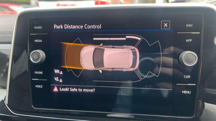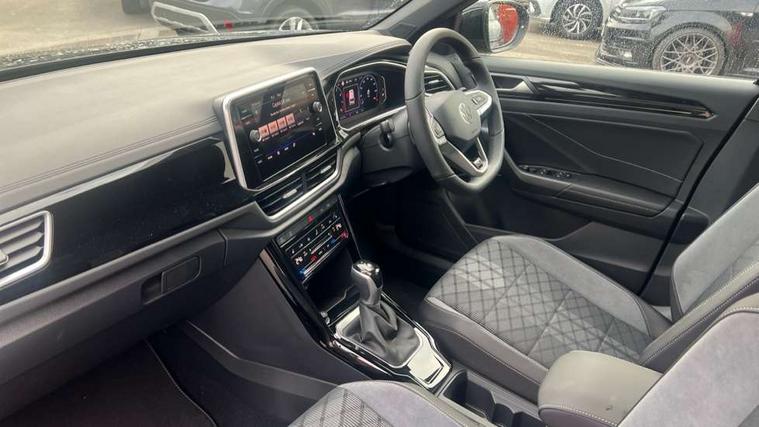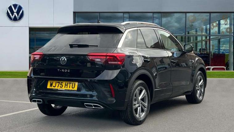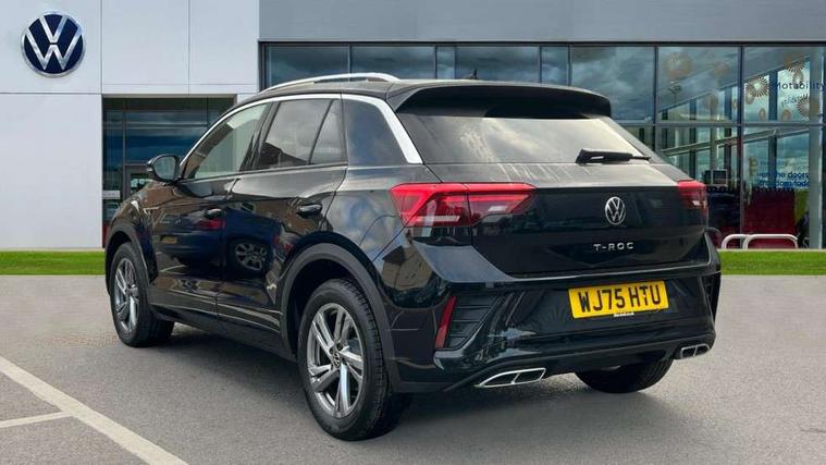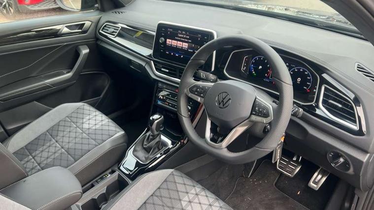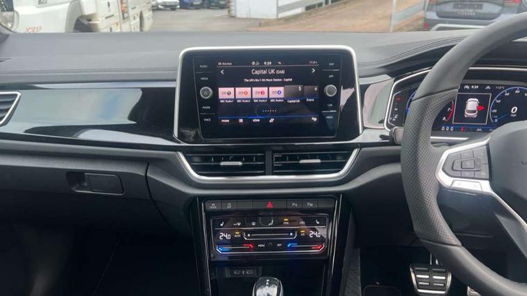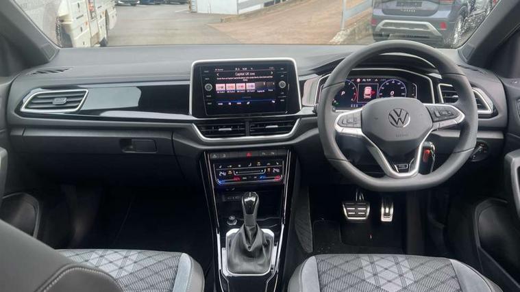 10.25" Digital cockpit pro, Advanced driver attention and drowsiness monitor, Emergency call service, Lane keeping system Lane Assist, Mobile phone interface, Modified key software - reduce switch off time for key status change to Long no motion, Online services, Park assist including front and rear parking sensors, Service interval indicator, Tailgate/trunk lid release from outside, Think blue trainer driver tips and journey analysis, Warning sound and light for front seatbelts unfastened, Wireless app connect, Battery regeneration during braking, Start/stop function with battery regeneration, DAB Digital radio, Diversity antenna for FM reception, Front and rear 6 speakers, Music playback - MP3, WMA and AAC files, Premium USB cable in choice of either Apple or Android smartphone compatibility, SD card slot, Simultaneous pairing of 2 compatible mobile devices, Title and cover art display, We Connect and We Connect Plus functionality, Auto dimming interior rear view mirror, Automatic hazard lights activation under emergency braking, Automatic headlight control with LED separate daytime running lights with coming/leaving home function, Body coloured exterior mirror housings and door handles, Electrically adjustable and heated door mirrors, Extended roof spoiler, Exterior mirrors aspherical on driver side, convex on front passenger side, External USB type C socket and charging sockets, Front windscreen wiper with intermittent wipe and 4 position delay, Heated rear window, LED 3rd brake light, LED rear combination lamps, LED rear number plate lights, Power windows with comfort operation and circuit breaker, Privacy glass for rear side windows and rear window, R-Line design body coloured bumpers, Rain sensor, Rear exhaust tailpipe, Rear fog light on one side and reversing lights on both sides, Rear side wing doors, Rear wash/wipe with intermittent wipe setting, Remote electrically foldable door mirrors, puddle lights and reverse activated passenger's door mirror, 12V power socket in centre console, 3 rear head restraints, 3 seat bench in 2nd row, 4 load lashing points in luggage compartment, Air care climatronic air conditoning system with active combination filter and 2-zone temperature control, Black roof lining, Chrome plated decorative trims, Chrome plated radiator grille inserts, air vent surrounds and light switch surrounds, Door and side trim panel with leatherette insert, Front + rear carpet mats, Front centre armrest, Front cupholders x 2, Front footwell illumination, Front reading light, Front scuff plates with R Line logo, Front seat back storage pockets, Glove compartment door with light, Instrument lighting, white adjustable panel illumination, Interior ambient lighting and surround lighting, Interior light delay, Isofix child seat preparation, Leather gearshift handle, Load-through provision with cup holder when folded down ('Unsplit rear seat bench, split folding backrest, with centre armrest), Luggage compartment lighting, Single front passenger seat, Stainless steel pedals, Storage compartment in left and right luggage area, Storage compartment in rear doors, Storage compartments in driver and front passenger doors, Sunvisors with illuminated vanity mirrors, Variable boot floor, height adjustable and removable, Driver assistance pack without proactive passenger protection - T-Roc, 3 point height adj front seatbelts + pretensioners, 3 point seatbelts in outer rear with ECE label, ABS, Child locks on rear doors, City emergency braking and pedestrian monitoring, Driver and front passenger airbag with front passenger airbag deactivation, Driver and front passenger safety-optimised head restraints, Drivers seatbelt reminder, Electronic parking brake, Electronic Stability Control (ESC) inc EDL (Electronic Differential Lock) and ASR (Traction Control), Front and rear passengers curtain airbag system including front side airbags, Hill start assist, Predictive pedestrian protection, Rear disc brakes, Two tone horn, Tyre pressure loss indicator, Volkswagen roadside assistance, Piano black decorative inserts in dashboard and front door trim panels, Trims for alloy wheels,