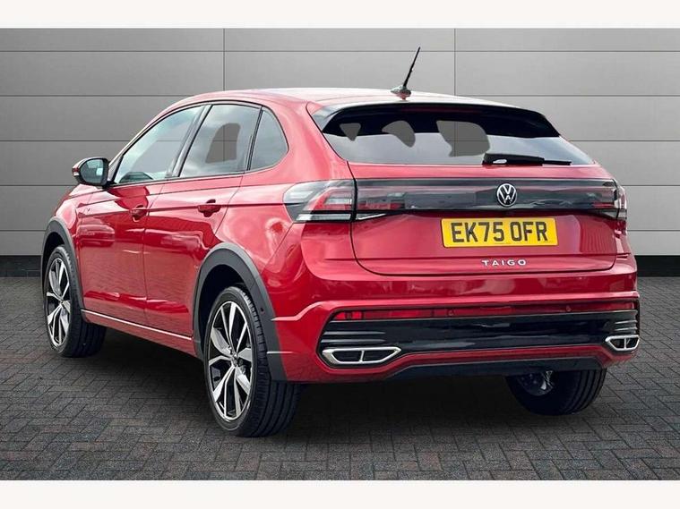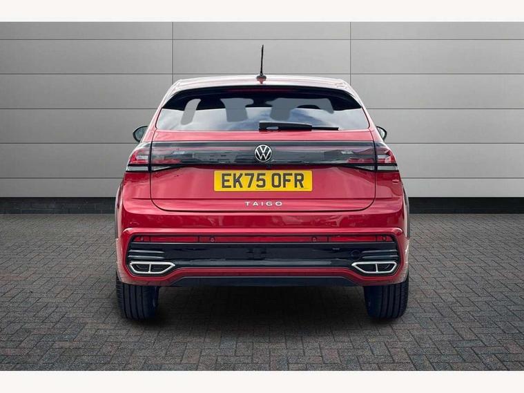 Adaptive cruise control, Advanced driver attention and drowsiness monitor, App-Connect including App-Connect Wireless, Digital cockpit pro - 10.25" high resolution TFT dash display screen with customizable menus and information, Driving profile selection, Dynamic road sign display, e-Call (emergency call), Power Steering, Travel assist including emergency assist, Washer fluid level indicator, Wireless Charging including Bluetooth, Start-stop system with battery regeneration (recuperation - energy recovery during braking), XDS electronic differential lock for improved traction and handling, Digital radio reception (DAB+), Diversity antenna for FM reception, WeConnect plus, Ambient lighting with logo projection, Aspherical driver's exterior mirror, Auto headlights, Body coloured bumpers, Bumpers in R-Line style, Electric windows, External USB type C socket and charging sockets, Front scuff plates with R-Line logo, LED rear combination lamp, LED third brake light, Left convex exterior mirror, Power folding adjustable/heated exterior mirrors and front passenger exterior mirror lowering function, Rear fog light on one side, reversing light on both sides, Rear side wing doors, Rear wash/wipe with intermittent wipe setting, 12V socket in centre console, 2 front reading lights, 3 rear head restraints, 3 seat bench in 2nd row, Air care climatronic air conditoning system with active combination filter and 2-zone temperature control, Black carpets, Black roof lining, Child seat anchor for child seat system i-Size, 2x top tether and child seat anchor in front on front passenger side, Chrome bezel for instrument cluster, vents, door handles + gear shift, Driver and front passenger seat height adjustment, Front + rear carpet mats, Front centre armrest, Front footwell illumination, Front sports comfort seats, Height and reach adjustable steering wheel, Interior ambient lighting and surround lighting, Karoso artvelours cloth upholstery, Leather trimmed gear knob, Leather wrapped multifunction steering wheel, Luggage compartment floor, Luggage compartment light, Lumbar support for driver's and front passengers seat, Seat covers in grey + titanium black, Single front passenger seat, Split folding backrest with centre armrest and unsplit rear seat bench, Stainless steel pedals, Storage compartment under front seats, Sun visors with illuminated vanity mirrors, Chrome Package - Taigo, Drivers assistance pack - Taigo, Light and Sight pack including High beam assist - Taigo, 2 x 3-point seatbelts/outer rear seats with ECE label, 3-point seat belts in front with pretensioner and height adjustment, 3-point seatbelt for centre rear seat, Adaptive driver and front passenger airbags with passenger airbag deactivation function, Driver and front passenger safety-optimised head restraints, Electronic stability control, Extended and predictive pedestrian/ cyclist protection, Front and rear disc brakes, Front curtain and side airbags with center airbag, Hill start assist, Manual rear child locks, Single tone horn, Tyre pressure loss indicator, Anti-theft alarm system with interior monitoring, backup horn, and towing protection, Grey anodised matte decorative inserts in dash and front door panels, Low rolling resistance tyres,