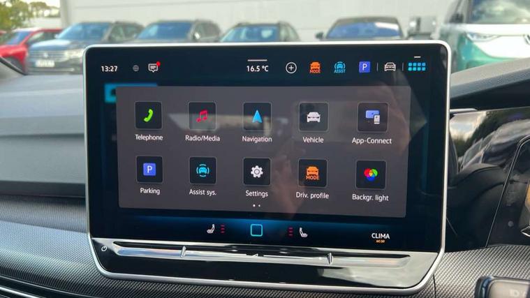 Activated carbon canister, Adaptive cruise control (ACC), Advanced driver attention and drowsiness monitor, Dynamic road sign display, Dynamic steering, E-Sim card for online connectivity, eCall emergency call system, Multi-color Digital cockpit pro, selection of different info profile possible, Multifunction front facing camera for distance control, Navigation system, Oncoming vehicle braking when turning including swerve support, Speed limiter, Speedo, rev counter, electronic odometer, trip, service interval display, exterior temperature and fuel gauge, Traffic jam assist, Voice enhancer and voice control, Warning signal and warning light for front and rear seatbelts not fastened, We connect plus preparation, We connect preparation, Wireless app connect, Hybrid propulsion system, Petrol Particulate Filter, Start-stop system with battery regeneration (recuperation - energy recovery during braking), XDS electronic differential lock for improved traction and handling, 2 USB C ports in front, 2 USB charging sockets on the centre console in the rear charging capacity upto 45W, Digital radio reception (DAB), Diversity antenna for FM reception, Gaming platform via car app, Infotainment system with 12.9" display, Mobile phone interface with inductive charging feature, 3rd brake light, Automatic headlamp activation with Coming home and Leaving home feature, Body colored bumpers in R-Line style, Body colour door handles, Exterior mirrors convex on the left and aspherical on the right, Front and rear electric windows, Heat insulating windshield made of laminated glass, LED separate daytime running light, Rear exhaust tailpipe, Rear fog light on one side and reversing lights on both sides, Rear side wing doors, Rear windscreen washer and wiper with interval delay, Remote electrically foldable door mirrors, puddle lights and reverse activated passenger's door mirror, Welcome light with surround lighting, 12V socket in front centre console, 12V socket in luggage compartment, 3 rear head restraints, 3 seat bench in 2nd row, Ambient lighting with 30 colour including LED light unit in front footwell with selectable light colour, Black roof lining, Brushed stainless steel pedals, Chrome plated radiator grille inserts, air vent surrounds and light switch surrounds, Door insert, side trim panel and arm support in leatherette, Front + rear black carpet mats, Front centre armrest, Front seat lumbar support adjuster, Integrated front head restraints, ISOFIX anchors for child seats on outer rear bench seats and on front passanger seat compatible for i-Size, Luggage compartment lighting, Manual height adjustable front passenger seat, Manually height adjustable driver seat, Plastic gear knob, Premium sports seats in front, Rear cupholder and loadthough, Sardegna cloth upholstery with front and outer rear seats Art Velour inner sides of bolsters, Single front passenger seat, Split folding backrest with centre armrest and unsplit rear seat bench, Sun visors with illuminated vanity mirrors, Titanium black instrument panel, 3 point height adj front seatbelts + pretensioners, 3 rear three point seatbelts, ABS, Autonomous emergency braking front assist with pedestrian and cyclist monitoring, Child locks on rear doors, Driver and front passenger airbag with front passenger airbag deactivation, Electronic parking brake with auto hold, ESC (Electronic Stability Control), Extended pedestrian protection measures, Hill start assist, Rear disc brakes, Two tone horn, Tyre pressure loss indicator, Volkswagen roadside assistance, Anti theft wheel bolts, Preparation for alcohol interlock, Decorative inserts carbon grey for dashboard and front door trim panels, Tool kit for tyre mobility set, Tyre mobility kit Includes 12V compressor and tyre sealant,