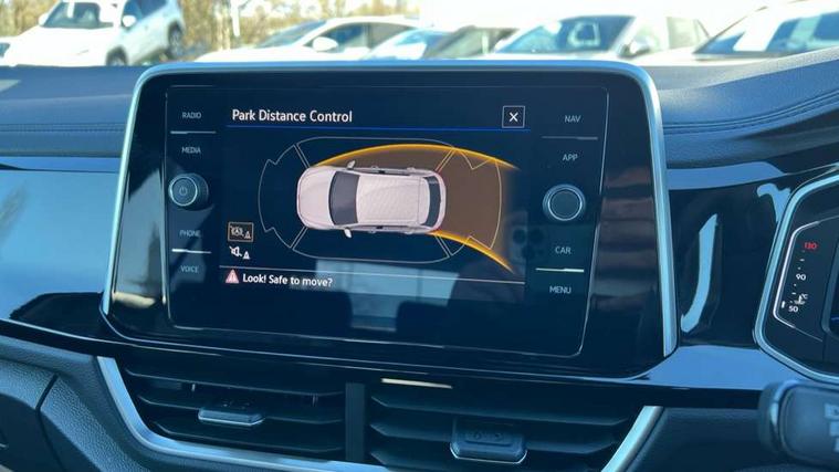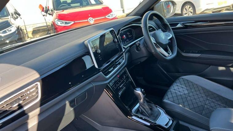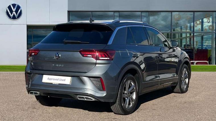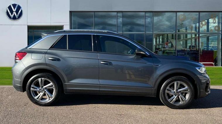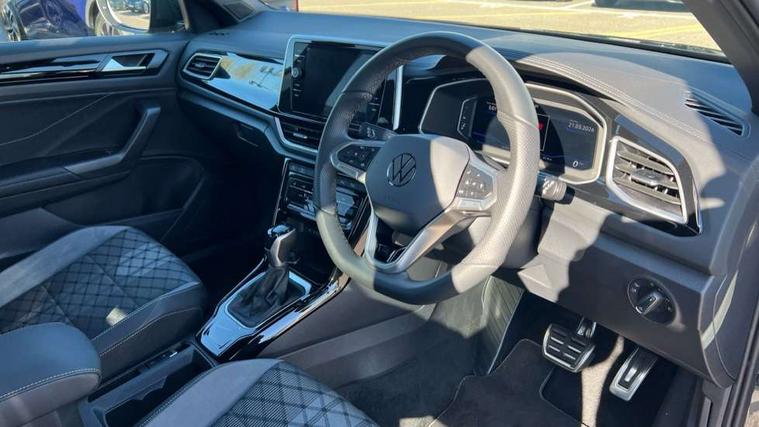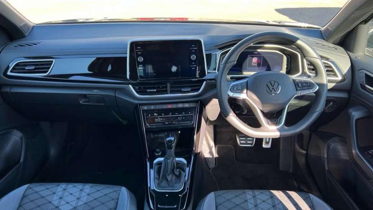 10.25" Digital cockpit pro, Advanced driver attention and drowsiness monitor, Emergency call service, Lane keeping system Lane Assist, Mobile phone interface, Modified key software - reduce switch off time for key status change to Long no motion, Online services, Park assist including front and rear parking sensors, Service interval indicator, Tailgate/trunk lid release from outside, Think blue trainer driver tips and journey analysis, Warning sound and light for front seatbelts unfastened, Wireless app connect, Battery regeneration during braking, Start/stop function with battery regeneration, DAB Digital radio, Diversity antenna for FM reception, Front and rear 6 speakers, Music playback - MP3, WMA and AAC files, Premium USB cable in choice of either Apple or Android smartphone compatibility, SD card slot, Simultaneous pairing of 2 compatible mobile devices, Title and cover art display, We Connect and We Connect Plus functionality, Auto dimming interior rear view mirror, Automatic hazard lights activation under emergency braking, Automatic headlight control with LED separate daytime running lights with coming/leaving home function, Body coloured exterior mirror housings and door handles, Electrically adjustable and heated door mirrors, Extended roof spoiler, Exterior mirrors aspherical on driver side, convex on front passenger side, External USB type C socket and charging sockets, Front windscreen wiper with intermittent wipe and 4 position delay, Heated rear window, LED 3rd brake light, LED rear combination lamps, LED rear number plate lights, Power windows with comfort operation and circuit breaker, Privacy glass for rear side windows and rear window, R-Line design body coloured bumpers, Rain sensor, Rear exhaust tailpipe, Rear fog light on one side and reversing lights on both sides, Rear side wing doors, Rear wash/wipe with intermittent wipe setting, Remote electrically foldable door mirrors, puddle lights and reverse activated passenger's door mirror, 12V power socket in centre console, 3 rear head restraints, 3 seat bench in 2nd row, 4 load lashing points in luggage compartment, Air care climatronic air conditoning system with active combination filter and 2-zone temperature control, Black roof lining, Chrome plated decorative trims, Chrome plated radiator grille inserts, air vent surrounds and light switch surrounds, Door and side trim panel with leatherette insert, Front + rear carpet mats, Front centre armrest, Front cupholders x 2, Front footwell illumination, Front reading light, Front scuff plates with R Line logo, Front seat back storage pockets, Glove compartment door with light, Instrument lighting, white adjustable panel illumination, Interior ambient lighting and surround lighting, Interior light delay, Isofix child seat preparation, Leather gearshift handle, Load-through provision with cup holder when folded down ('Unsplit rear seat bench, split folding backrest, with centre armrest), Luggage compartment lighting, Single front passenger seat, Stainless steel pedals, Storage compartment in left and right luggage area, Storage compartment in rear doors, Storage compartments in driver and front passenger doors, Sunvisors with illuminated vanity mirrors, Variable boot floor, height adjustable and removable, Driver assistance pack without proactive passenger protection - T-Roc, 3 point height adj front seatbelts + pretensioners, 3 point seatbelts in outer rear with ECE label, ABS, Child locks on rear doors, City emergency braking and pedestrian monitoring, Driver and front passenger airbag with front passenger airbag deactivation, Driver and front passenger safety-optimised head restraints, Drivers seatbelt reminder, Electronic parking brake, Electronic Stability Control (ESC) inc EDL (Electronic Differential Lock) and ASR (Traction Control), Front and rear passengers curtain airbag system including front side airbags, Hill start assist, Predictive pedestrian protection, Rear disc brakes, Two tone horn, Tyre pressure loss indicator, Volkswagen roadside assistance, Piano black decorative inserts in dashboard and front door trim panels, Trims for alloy wheels,