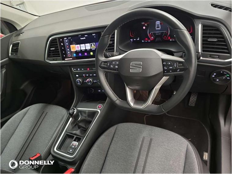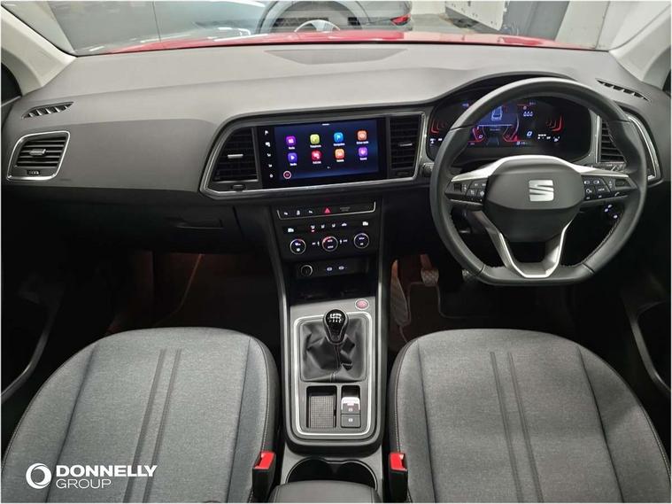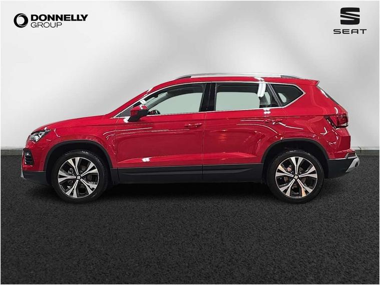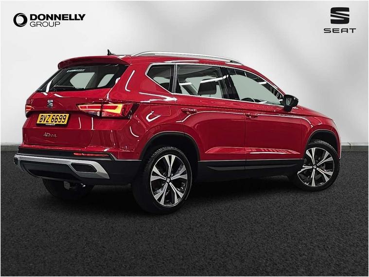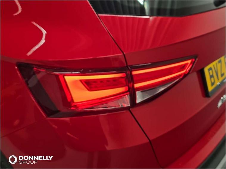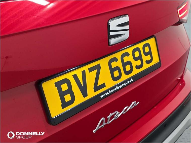 8" Digital cockpit, Colour multi-function on board computer display, Cruise control system with speed limiter, E-call, Outside temperature gauge, PAS, Self parking functionality (includes front and rear parking sensors), Start/stop system, Tailgate, Trip computer, wired and wireless full link smartphone integration, Wireless phone charger, Steering wheel mounted audio/phone controls, Black wheel arch surrounds, Body colour bumpers, Chrome front grille frame, Chrome roof rails, Chrome side window trim, Daytime running lights, Door mirrors with welcome light silhouette, Dynamic headlight range control with self adjusting whilst driving, Electric adjustable/heated/folding door mirrors, Front and rear electric windows, Full LED headlamps with lens and LED front fog lamps with cornering function, LED 3rd brake light, LED rear tail lights, Rear exhaust tailpipe, Rear fog lights, Rear side wing doors, Rear wash/wipe, Variable front intermittent wipers, 12v socket in front, 3 seat bench in 2nd row, 60/40 split folding rear seat, Cloth upholstery with front comfort seats, Drawer under right front seat, Dual zone climate control, Front and rear head restraints, Front centre armrest, Front seat back storage pockets, Height adjustable driver and passenger seat with lumbar adjustment, ISOFIX points in outer rear seats with top tether anchorage points, Leather sports steering wheel and gear knob, Rear armrest and easy back seat release mechanism from boot, Single front passenger seat, Convenience pack - Ateca, Interior lighting pack - Ateca, Navigation system pack with DAB - Ateca, Safety and driving pack with attention and drowsiness assist - Ateca, 3x3 point rear seatbelts, ABS, Traction control system (TCS), Electronic stability control (ESC) and Electronic differential lock system (XDS), Airbags - Driver and front passenger airbag with deactivation, front side, two curtain and driver's knee airbags, Electric parking brake with auto hold function, Front and rear seatbelt reminder, Front assist with autonomous emergency braking, Hill hold control, Manual rear child locks, Single tone horn, Tiredness recognition system, Tyre pressure monitoring system, Alarm, Keyless entry, Locking wheel bolts, Remote central locking, Chrome interior detailing, 18" Performance machined alloy wheels 36/2 in nuclear grey,