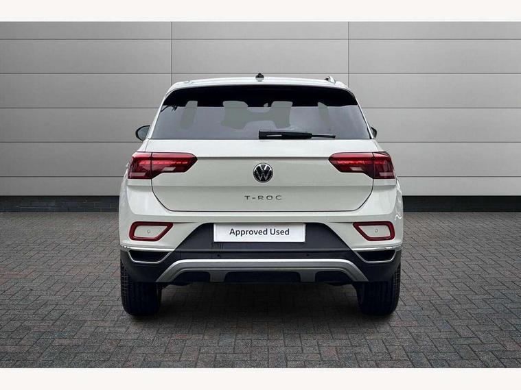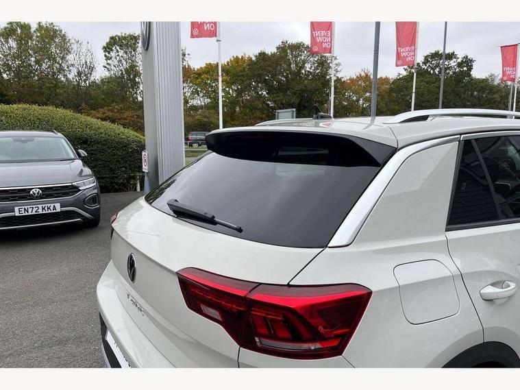10.25" Digital cockpit pro, Advanced driver attention and drowsiness monitor, Emergency call service, Lane keeping system Lane Assist, Mobile phone interface, Modified key software - reduce switch off time for key status change to Long no motion, Online services, Park assist including front and rear parking sensors, Power assisted speed sensitive steering, Service interval indicator, Tailgate/trunk lid release from outside, Think blue trainer driver tips and journey analysis, Warning sound and light for front seatbelts unfastened, Wireless app connect, Battery regeneration during braking, Start/stop function with battery regeneration, DAB Digital radio, Diversity antenna for FM reception, Front and rear 6 speakers, Music playback - MP3, WMA and AAC files, Premium USB cable in choice of either Apple or Android smartphone compatibility, SD card slot, Simultaneous pairing of 2 compatible mobile devices, Title and cover art display, We Connect and We Connect Plus functionality, Auto dimming interior rear view mirror, Automatic hazard lights activation under emergency braking, Automatic headlight control with LED separate daytime running lights with coming/leaving home function, Body colour sports bumpers with silver metallic underbody fascia, Body coloured exterior mirror housings and door handles, Dynamic headlight range control with self adjusting whilst driving, Electrically adjustable and heated door mirrors, Extended roof spoiler, Exterior mirrors aspherical on driver side, convex on front passenger side, External USB type C socket and charging sockets, Front windscreen wiper with intermittent wipe and 4 position delay, Heated rear window, LED 3rd brake light, LED rear combination lamps, LED rear number plate lights, Light mode for poor weather, rain, fog or snow, Power windows with comfort operation and circuit breaker, Privacy glass for rear side windows and rear window, Rain sensor, Rear exhaust tailpipe, Rear fog light on one side and reversing lights on both sides, Rear side wing doors, Rear wash/wipe with intermittent wipe setting, Remote electrically foldable door mirrors, puddle lights and reverse activated passenger's door mirror, 12V power socket in centre console, 3 rear head restraints, 3 seat bench in 2nd row, 4 load lashing points in luggage compartment, Air care climatronic air conditoning system with active combination filter and 2-zone temperature control, Chrome plated radiator grille inserts, air vent surrounds and light switch surrounds, Door and side trim panel with leatherette insert, Drawer under drivers seat, Front + rear carpet mats, Front centre armrest, Front comfort sports seats, Front cupholders x 2, Front footwell illumination, Front seat back storage pockets, Glove compartment door with light, Instrument lighting, white adjustable panel illumination, Interior ambient lighting and surround lighting, Interior light delay, Isofix child seat preparation, Leather gearshift handle, LED interior light with switch off delay/dimmer and 2 front/rear LED reading lights, Load-through provision with cup holder when folded down ('Unsplit rear seat bench, split folding backrest, with centre armrest), Luggage compartment lighting, Non-folding front passenger seat backrest, Single front passenger seat, Storage compartment in left and right luggage area, Storage compartment in rear doors, Storage compartments in driver and front passenger doors, Sunvisors with illuminated vanity mirrors, Variable boot floor, height adjustable and removable, Driver assistance pack without proactive passenger protection - T-Roc, 3 point height adj front seatbelts + pretensioners, 3 point seatbelts in outer rear with ECE label, ABS, Child locks on rear doors, City emergency braking and pedestrian monitoring, Driver and front passenger airbag with front passenger airbag deactivation, Driver and front passenger safety-optimised head restraints, Drivers seatbelt reminder, Electronic parking brake, Electronic Stability Control (ESC) inc EDL (Electronic Differential Lock) and ASR (Traction Control), Front and rear passengers curtain airbag system including front side airbags, Predictive pedestrian protection, Rear disc brakes, Two tone horn, Tyre pressure loss indicator, Volkswagen roadside assistance, Deep iron grey decorative inserts in dashboard, centre console and front door trim panels, Trims for alloy wheels,