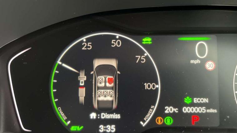 7" Multi information display screen, Adaptive cruise control, Adaptive motion for electric power steering, Adjustable speed limiter, Agile handling assist, BLIS (Blind Spot Information System) with Cross Traffic Monitor, Bluetooth hands free telephone connection, Driving modes, Economy mode, Electric power steering wheel with variable gear ratio steering, Emergency call service, Emergency stop signalling system, Forward collision warning, Front and rear parking sensors, Honda CONNECT with Navigation 9" touchscreen, AM/FM/DAB, Apple Carplay and Android Auto, live traffic info, Honda sensing, Idle stop, Intelligent speed limiter, Lane departure warning system, Lane keep assist, Low speed following, Power meter, Rear parking camera, Road departure mitigation, Tailgate, Traffic jam assist, Traffic sign recognition, Wireless apple carplay, Vehicle stability assist, 'Shark fin' mobile antenna, 2x USB Front socket (1 data & 1 charge), 8 Speakers, Digital Audio Broadcast (DAB) Tuner, Front tweeters, Steering wheel mounted audio controls, Aspherical driver door mirrors, Auto headlight adjuster, Auto headlights, Automatic coming/leaving home lighting function, Automatic rain sensing wipers, Body colour door handles, Chrome window garnish, Electric adjustable heated door mirrors, Electric front and rear windows, Electrically folding door mirrors, Headlight extension black, High beam assist, High level LED brake light, LED daytime running lights, LED front turn type, LED Headlights, LED rear lights, Material finish grille, Pop up hood, Privacy glass, Rear side wing doors, Rear wiper, Single hidden exhaust pipe, Variable front intermittent wipers, 3 seat bench in 2nd row, 60/40 split folding rear seat, Cargo accessory power socket, Cargo net hooks, Driver and front passenger seat armrests, Driver's electric lumbar adjustment, Driver's seat height adjustment, Dual climate control air conditioning system, Fabric upholstery, Front accessory power socket, Front map lights, Front/rear courtesy lights, Glovebox light, Heated front seats, Hybrid emblem, Isofix points/i size, Leather steering wheel, Meter Illumination white, Passenger seat back pocket, Platinum chrome interior door handles, Rear head restraints, Rear reading lights, Rear seat centre armrest, Single front passenger seat, Sunvisors with illuminated vanity mirrors, Tilt/telescopic adjustable steering wheel, Tonneau cover, Trunk light, USB Rear number 2 x charge, White ambient roof light, 3x3 point rear seatbelts, ABS+EBD+Brake assist, Airbags - driver and front passenger, Airbags - Knee (AS), Airbags - Knee (DR), Anti-whiplash front headrests, Brake hold function, Collision mitigation braking system, Collision mitigation throttle control, Deflation detection system, Driver SRS airbag (single stage inflation), Electronic parking brake with auto hold, Front and rear curtain airbags, Front and rear seat belts with emergency locking retractor (ELR), Front centre airbag, Front side airbags, Hill start assist, Low speed brake system, Manual child lock in rear doors, Passenger airbag deactivate switch, Rear airbags, Regenerative braking/deceleration paddle control, Immobiliser, Mirrors and windows key fob, Remote central locking with 2 jack knife keys, Security alarm, Selectable door unlock, Smart entry + Smart start, Superlocking, Tilt sensors, Ultrasonic security sensor, 17" 2 tone diamond cut alloy wheels, Tyre repair kit,