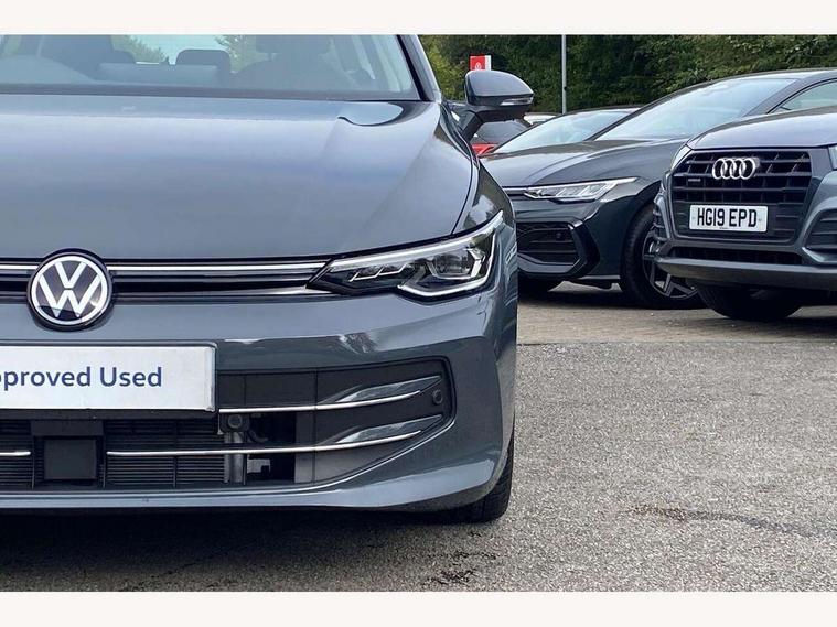 Activated carbon canister, Adaptive cruise control (ACC), Advanced driver attention and drowsiness monitor, Dynamic road sign display, E-Sim card for online connectivity, eCall emergency call system, Multi-color Digital cockpit pro, selection of different info profile possible, Multifunction front facing camera for distance control, Navigation system, Oncoming vehicle braking when turning including swerve support, Side assist blind spot lane change system, rear traffic alert and exit warning system, Speed limiter, Speedo, rev counter, electronic odometer, trip, service interval display, exterior temperature and fuel gauge, Traffic jam assist, Voice enhancer and voice control, Warning signal and warning light for front and rear seatbelts not fastened, We connect plus preparation, We connect preparation, Wireless app connect, Charging cable Mode 2 Type 2 (10A), Charging cable mode 3, type 2 32 A, Hybrid propulsion system, Start-stop system with battery regeneration (recuperation - energy recovery during braking), XDS electronic differential lock for improved traction and handling, 2 USB C ports in front, 2 USB charging sockets on the centre console in the rear charging capacity upto 45W, 6 Speakers - 4 in front and 2 in rear with central speaker, Digital radio reception (DAB), Diversity antenna for FM reception, Gaming platform via car app, Infotainment system with 12.9" display, Mobile phone interface with inductive charging feature, 3rd brake light, Automatic headlamp activation with Coming home and Leaving home feature, Body colour bumpers, Body colour door handles, Body colour door mirrors, Chrome trimmed front air intake surrounds, Chrome trims on the side window bottom, Exterior mirrors convex on the left and aspherical on the right, Front and rear electric windows, Heat insulating windshield made of laminated glass, LED separate daytime running light, Rear exhaust tailpipe, Rear fog light on one side and reversing lights on both sides, Rear side wing doors, Rear windscreen washer and wiper with interval delay, Remote electrically foldable door mirrors, puddle lights and reverse activated passenger's door mirror, Welcome light with surround lighting, 12V socket in front centre console, 12V socket in luggage compartment, 3 rear head restraints, 3 seat bench in 2nd row, Air care climatronic 3 Zone automatic climate control with rear air conditioning control panel, Ambient lighting with 30 colour including LED light unit in front footwell with selectable light colour, Chrome plated radiator grille inserts, air vent surrounds and light switch surrounds, Front + rear black carpet mats, Front centre armrest, ISOFIX anchors for child seats on outer rear bench seats and on front passanger seat compatible for i-Size, Luggage compartment lighting, Plastic gear knob, Rear cupholder and loadthough, Single front passenger seat, Soul black instrument panel, Split folding backrest with centre armrest and unsplit rear seat bench, Standard pedal cluster, Storm grey roof lining, Sun visors with illuminated vanity mirrors, Driver assistance pack - Golf Estate/Hatchback Auto, 3 point height adj front seatbelts + pretensioners, 3 rear three point seatbelts, ABS, Autonomous emergency braking front assist with pedestrian and cyclist monitoring, Child locks on rear doors, Driver and front passenger airbag with front passenger airbag deactivation, Electronic parking brake with auto hold, ESC (Electronic Stability Control), Extended pedestrian protection measures, Hill start assist, Rear disc brakes, Two tone horn, Tyre pressure loss indicator, Volkswagen roadside assistance, Anti theft wheel bolts, Preparation for alcohol interlock, New brushed dark metal decorative inserts for dashboard and front door panels, Tool kit for tyre mobility set, Tyre mobility kit Includes 12V compressor and tyre sealant,