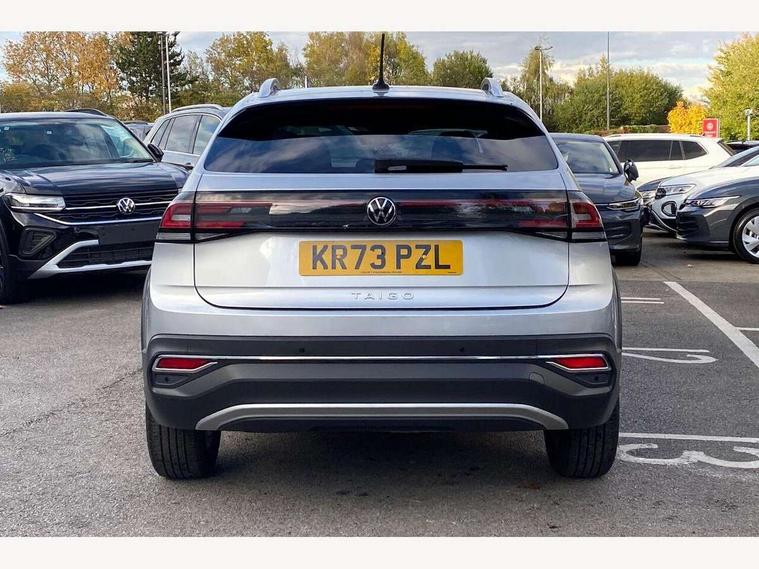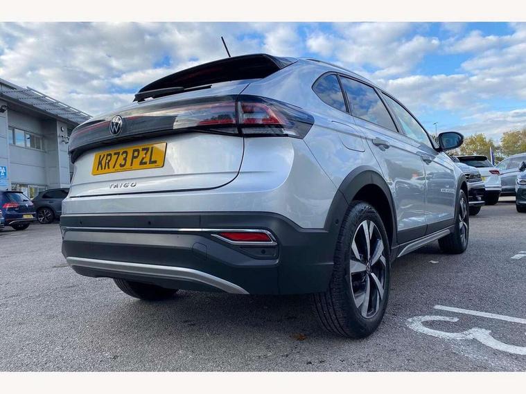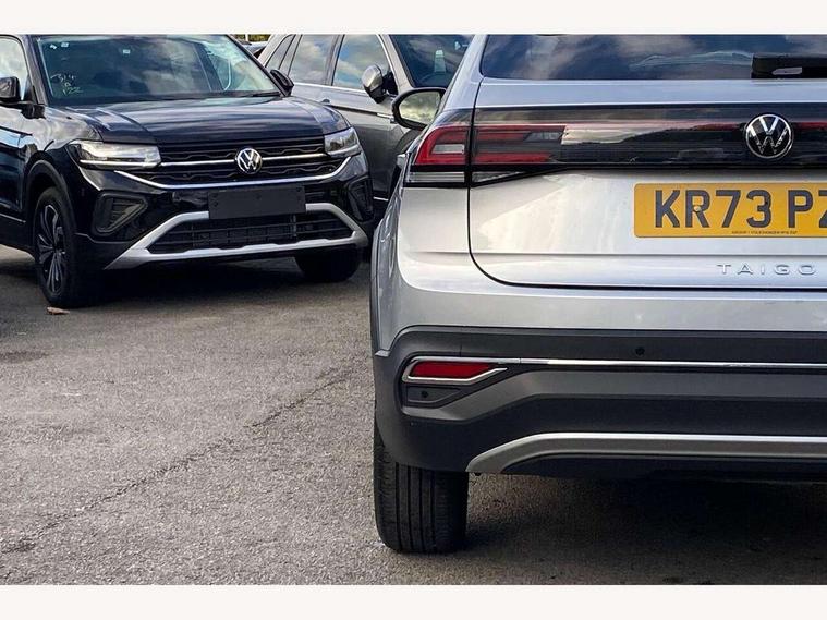 App-Connect including App-Connect Wireless, Digital cockpit pro - 10.25" high resolution TFT dash display screen with customizable menus and information, Driver alert system, e-Call (emergency call), Power Steering, Travel assist including emergency assist, Washer fluid level indicator, Wireless Charging including Bluetooth, Rear shock absorption, Start-stop system with battery regeneration (recuperation - energy recovery during braking), Digital radio reception (DAB+), Diversity antenna for FM reception, WeConnect plus, Ambient lighting with logo projection, Aspherical driver's exterior mirror, Auto headlights, Body coloured bumpers and radiator grille with chrome trim and front fog lamps with chrome bezel, Body coloured exterior mirror housings and door handles, Dual chrome twin tailpipes on left and right, Electric windows, External USB type C socket and charging sockets, LED rear combination lamp, LED third brake light, Left convex exterior mirror, Power folding adjustable/heated exterior mirrors and front passenger exterior mirror lowering function, Rear fog light on one side, reversing light on both sides, Rear side wing doors, Rear wash/wipe with intermittent wipe setting, 12V socket in centre console, 2 front reading lights, 3 rear head restraints, 3 seat bench in 2nd row, Air care climatronic air conditoning system with active combination filter and 2-zone temperature control, Black carpets, Child seat anchor for child seat system i-Size, 2x top tether and child seat anchor in front on front passenger side, Chrome bezel for instrument cluster, vents, door handles + gear shift, Driver and front passenger seat height adjustment, Front + rear carpet mats, Front centre armrest, Front footwell illumination, Front sports comfort seats, Height and reach adjustable steering wheel, Interior ambient lighting and surround lighting, Leather trimmed gear knob, Leather wrapped multifunction steering wheel, Luggage compartment floor, Luggage compartment light, Lumbar support for driver's and front passengers seat, Single front passenger seat, Split folding backrest with centre armrest and unsplit rear seat bench, Storage compartment under front seats, Sun visors with illuminated vanity mirrors, Chrome Package - Taigo, Drivers assistance pack - Taigo, IQ.LIGHT - LED matrix headlights pack - Taigo, Light and sight pack - Taigo, 2 x 3-point seatbelts/outer rear seats with ECE label, 3-point seat belts in front with pretensioner and height adjustment, 3-point seatbelt for centre rear seat, Driver and front passenger airbags with front passenger airbag de-activation, front side and curtain airbags, Driver and front passenger safety-optimised head restraints, Electronic stability control, Extended and predictive pedestrian/ cyclist protection, Front and rear disc brakes, Front curtain and side airbags with center airbag, Hill start assist, Manual rear child locks, Single tone horn, Tyre pressure loss indicator, Anti-theft alarm system with interior monitoring, backup horn, and towing protection, Anti-theft wheel bolts, Low rolling resistance tyres,