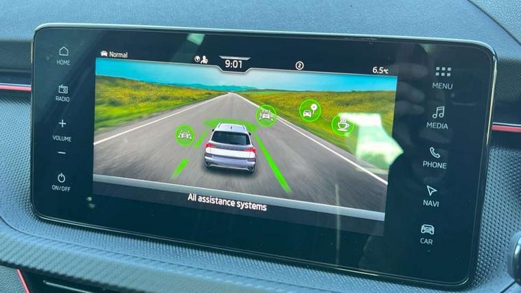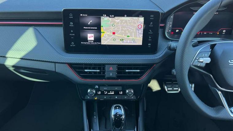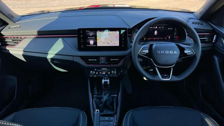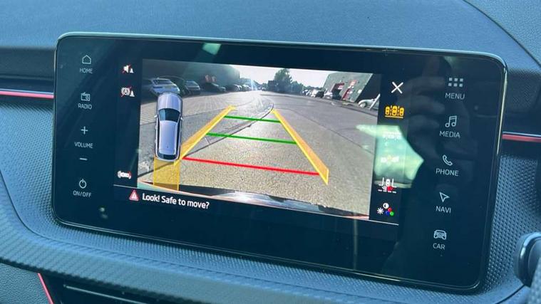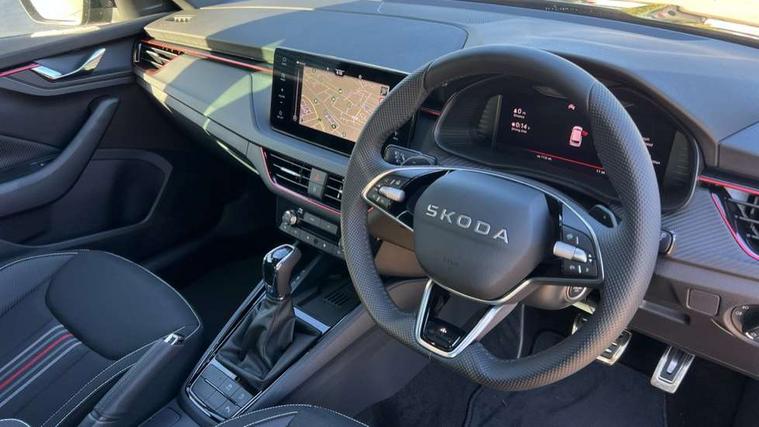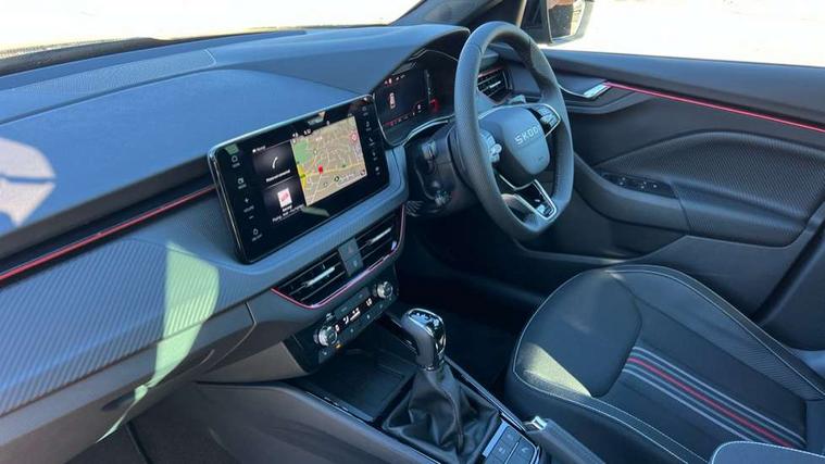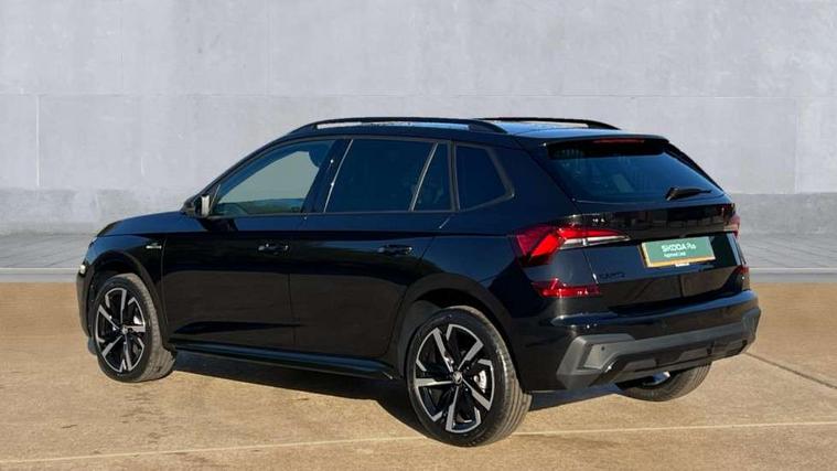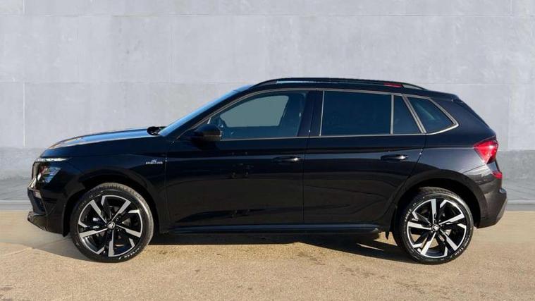 Advanced driver attention and drowsiness monitor, Bluetooth system, E-call, Front assist system, PAS, Rear parking sensors, Rear view camera, Service indicator, Speed limiter, Traffic sign recognition, Virtual cockpit with 10.25" display, Voice control system, Wireless smartlink, 4 USB C ports, 8 Speakers, 9.2" Skoda navigation display, DAB Digital radio, Auto dimming rear view mirror, Automatic headlight control with coming home and leaving home feature, Black door mirrors, Black radiator grille, Black rear diffuser, Black roof spoiler, Body colour bumpers, Body colour door handles, Boot lettering in black, Extended tailgate glass, Fixed panoramic sunroof with black roof rails, Front and rear electric windows, Heated rear window, LED daytime running lights, LED high beam, LED low beam, LED third brake light, Light sensors, Monte carlo plaque, Privacy glass, Rear side wing doors, Rear wiper, Ticket holder inside windscreen, 12V socket in luggage compartment, 3 seat bench in 2nd row, Aluminium pedals, Ambient lighting in white/red, Art leather carbon decor inserts, Art leather carbon door inserts, Black roof lining, Cargo elements, Chrome inner door handles, Driver and passenger sun visors with vanity mirror, Dual zone climate control, Front and rear roof lights, Front centre armrest, Front head restraints, Glove compartment with illumination, Height adjustable driver seat, Height adjustable front passenger seat, Ice scraper, Inner circulation control with pollen filter, ISOFIX on front passenger seat, Isofix preparation for back seats, Leather gearknob and handbrake lever, Manual lumbar support for front seats, Monte Carlo cloth upholstery, Net package and top tether hooks in boot space, Net under rear shelf, Pocket on the back of both front seats include mobile phone pockets, Rake/reach adjustable steering wheel, Reading lights, Rear centre armrests, Red hotstamping, Single front passenger seat, Sports seats, Textile floor mats, Third rear headrest, Top tether for front passenger seat, Umbrella in driver's door, Light and view plus package - Kamiq, 3x3 point rear seatbelts, Airbags - driver and front passenger, Disc brakes, ESP, Extended and predictive pedestrian/cyclist protection, Front passenger airbag deactivation switch, Front side airbags with curtain airbags, Hill hold control, Manual leather parking brake, Manual rear child locks, One tone horn, Seatbelt reminder for driver an co-driver, Traction control, Tyre pressure monitor, Anti-theft alarm system with interior monitoring, backup horn, towing protection and remote central locking with SAFE system, Anti-theft wheel bolts, Electronic engine immobilizer, 18" Ursa black diamond cut alloy wheels,