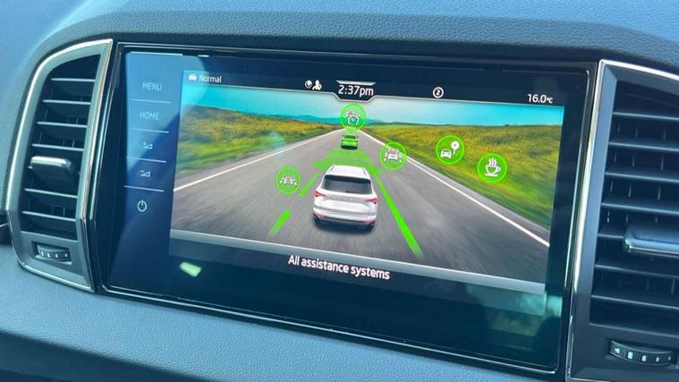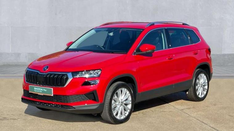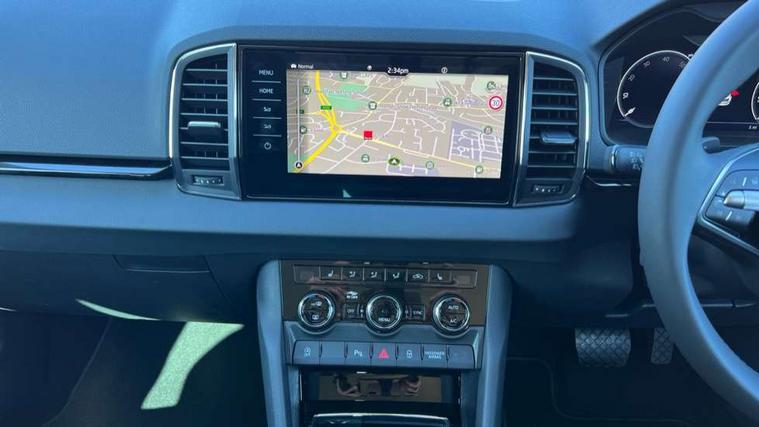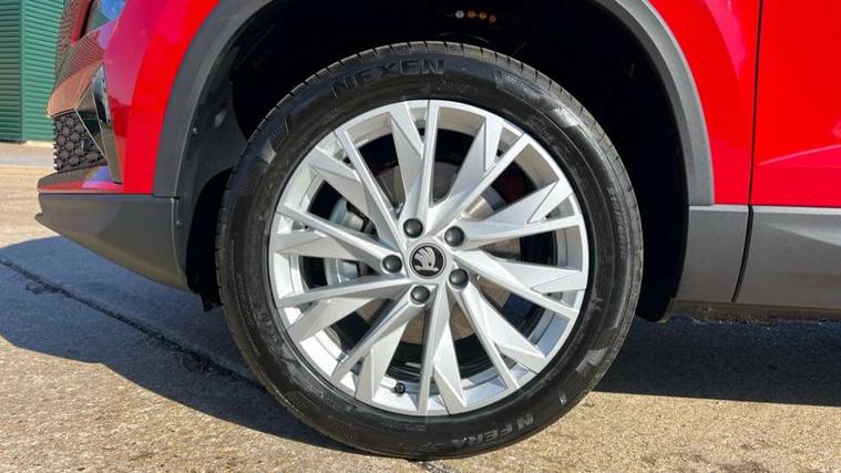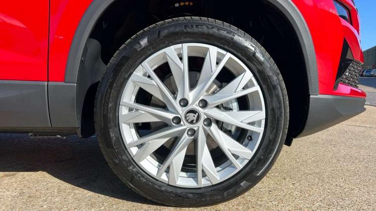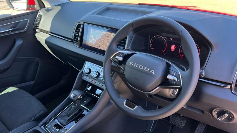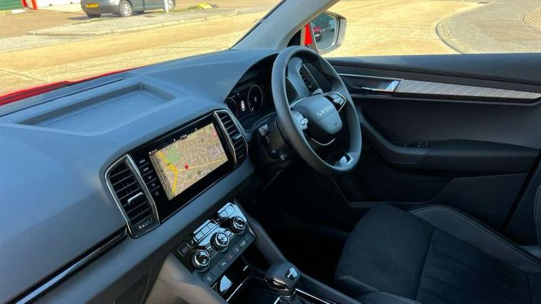 Advanced driver attention and drowsiness monitor, Drive Mode Selection including ECO function, Electro-mechanical PAS, Emergency services call system, Outside temperature gauge, Sensor for driver assistance systems, Service interval indicator, SmartLink wireless for Apple and wired for Android, Start/stop system with regenerative braking, Traffic sign recognition, USB C Port x 2 in front centre console, Virtual Cockpit - 10.25" digital display, Virtual pedal with electrically operated boot door, Wireless smartphone charging, DAB radio with Bluetooth, USB connection, Acoustic glass, Aero front windscreen wipers with intermittent function, Auto dimming rear view mirror with light and rain sensors, Black electric window control buttons, Body colour door mirrors and handles, Electric front and rear windows with child proof lock, Extended rear roof spoiler, Heated rear windscreen, LED daytime running lights, LED rear lights with high functionality welcome effect and dynamic indicators, Light assistant (coming/leaving home/tunnel light), Plastic scuff plates in door apertures, Privacy glass, Rear side wing doors, Rear window wiper with washer system and intermittent control, Safety reflectors on front doors, Third brake light, Unique dark chrome design logo on alloy wheels, 1.5 litre bottle holders in driver and front passenger door panels, 12V socket in boot, 12v socket in front centre armrest with storage compartment and rear air vents, 2 spoke leather heated multifunction steering wheel with DSG paddles, 2 x Tablet holder, 3 rear height adjustable headrests, 3 seat bench in 2nd row, 4 foldable roof handles with rear coat hooks, Black floor carpet, Cargo elements in boot, Chrome inner door handles, Decorative door sills with KAROQ badging, Foldable hooks in the boot, Front head restraints, Height adjustable front three point seats belts with tensioners, Height/reach adjust steering wheel, Ice scraper, Illuminated glovebox, Illuminated luggage compartment, Interior noise suppression, Isofix child seat preparation for front passenger seat, Isofix child seat preparation outer rear, Manual lumbar support for front seats, Pearl grey interior ceiling, Pen holder, Pollen filter, Rear boot cover, Rear package tray, Rear reading lights, Rubbish bin door, Safety vest holder, Single front passenger seat, Skoda lettering on steering wheel, Storage box in upper central dashboard closed, Sunvisors with illuminated vanity mirrors, Textile floor mats, Ticket holder, Columbus pack - Karoq, Design Pack - Karoq, Non Smokers pack, Parking pack - Karoq, Automatic door unlocking in case of crash, Automatic fuel cut off in case of crash, Driver airbag, Electronic parking brake with auto hold function, Emergency rear braking signal, ESC (incl. ABS+MSR+ASR+EDS+HBA+DSR+RBS+MKB), Front side airbags, Head airbags, Hill hold control, Knee airbags, Passenger airbag with switch-off function, Pedestrian monitor, Power operated child safety locks, Seatbelt reminder signalisation and pretensioner for all seats, Three point seatbelts rear, Two tone horn, Tyre pressure monitor, Alarm with interior monitoring, back up horn and tilt sensor with safe function, Electronic engine immobiliser, Keyless entry and start/stop, Remote central locking with 2 remote folding keys, Black centre console, Chrome framed air vents, Satin black dashboard, Anti-theft wheel bolts protection, Breakdown and tool kit,